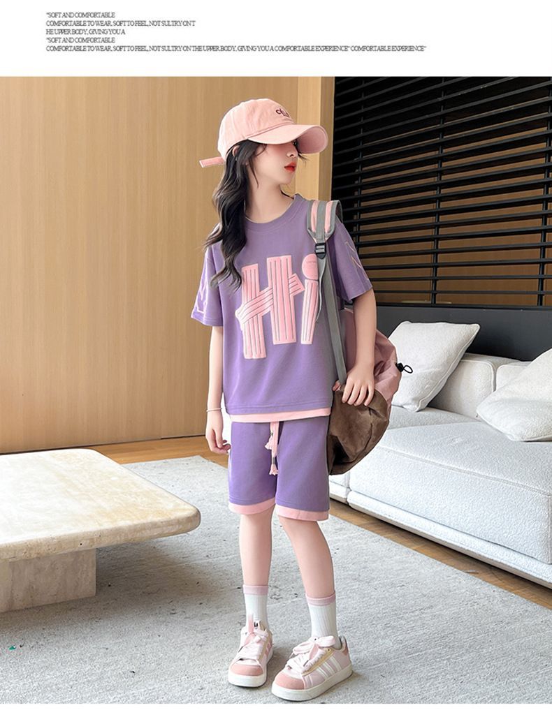 여아 여름 세트 2026년 신상 중대형 아동용 트렌디한 반팔 반바지 캐주얼 스포츠 투피스 여름옷스토어 가기