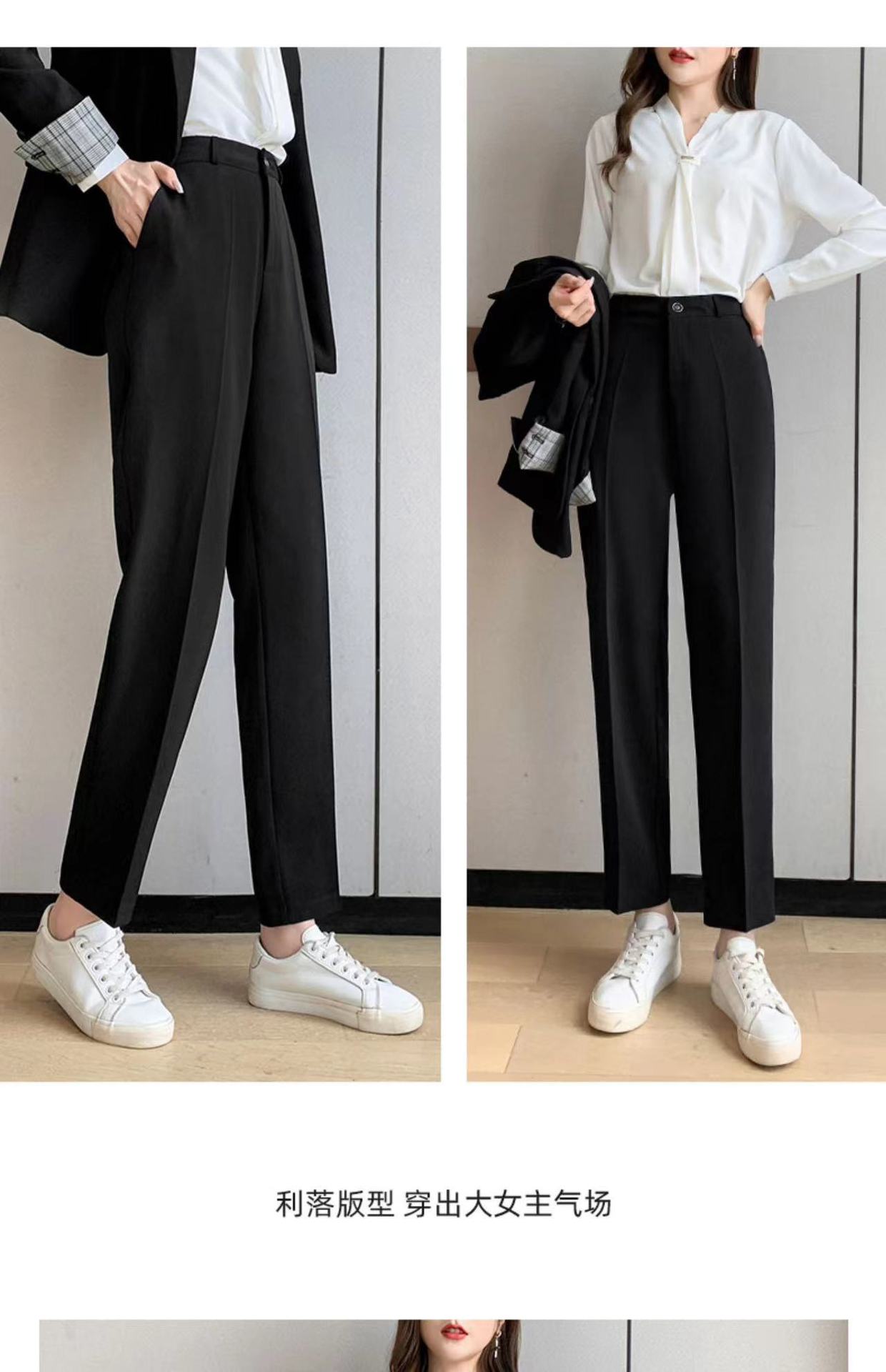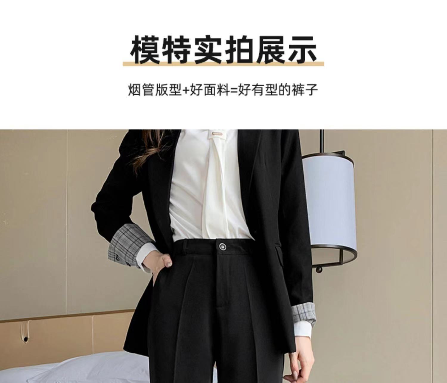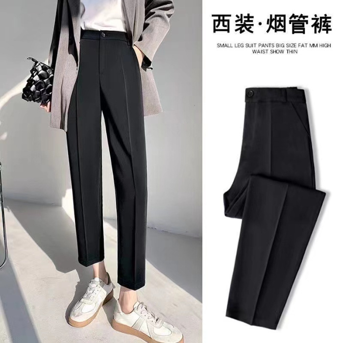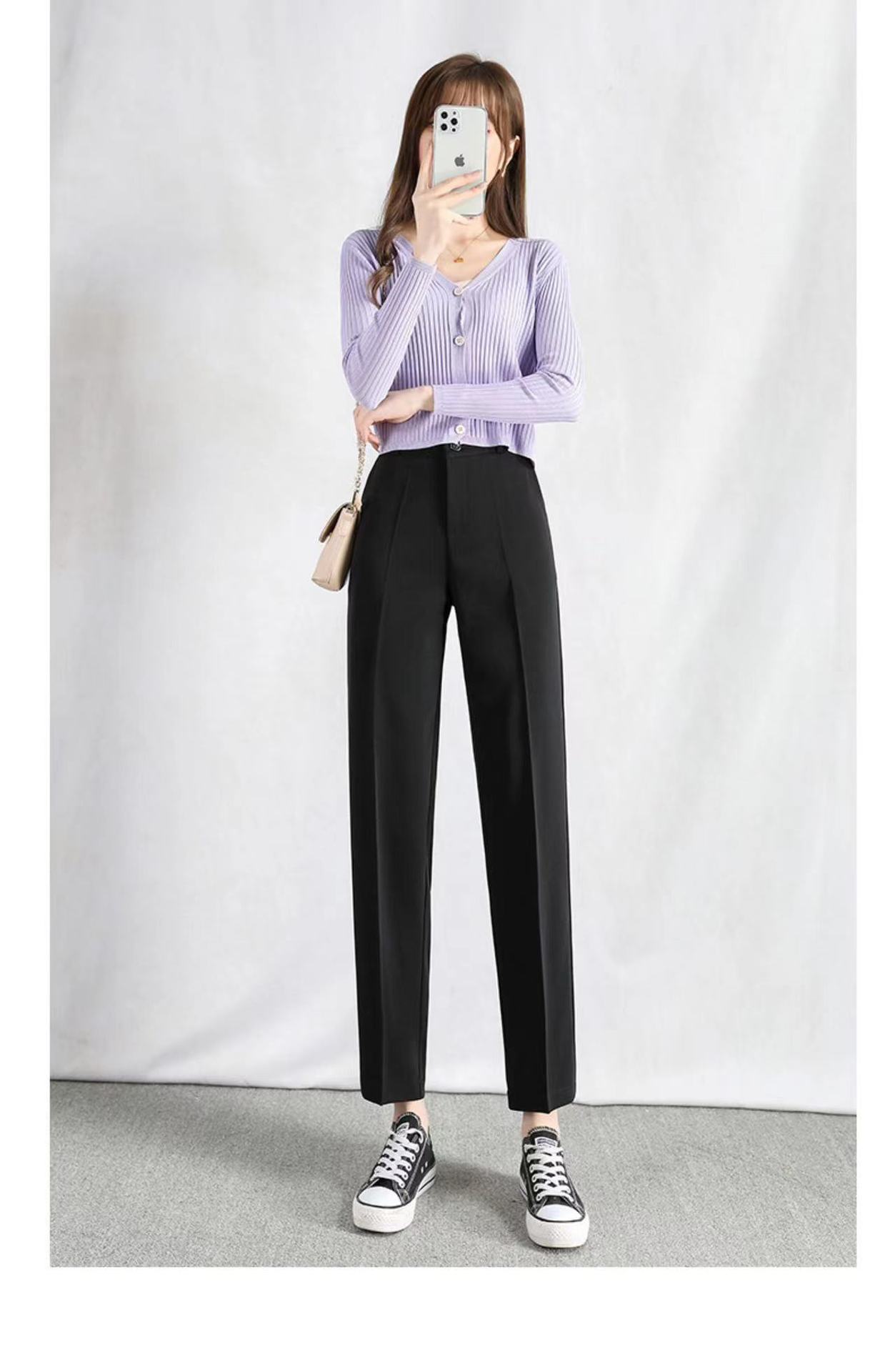 검은 바지 여성의 봄과 여름 새로운 높은 허리 느슨한 슬리밍 스트레이트 파이프 바지 우아한 투약 캐주얼 바지스토어 가기