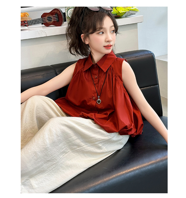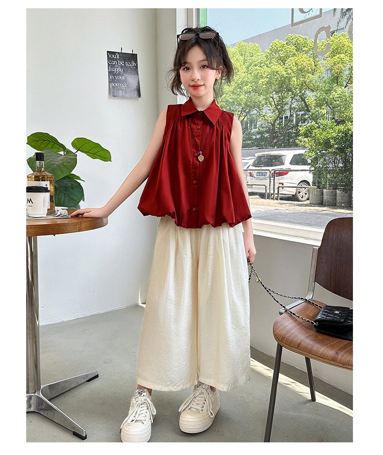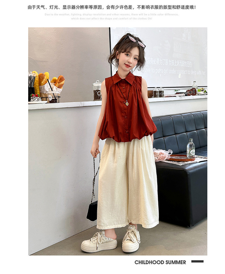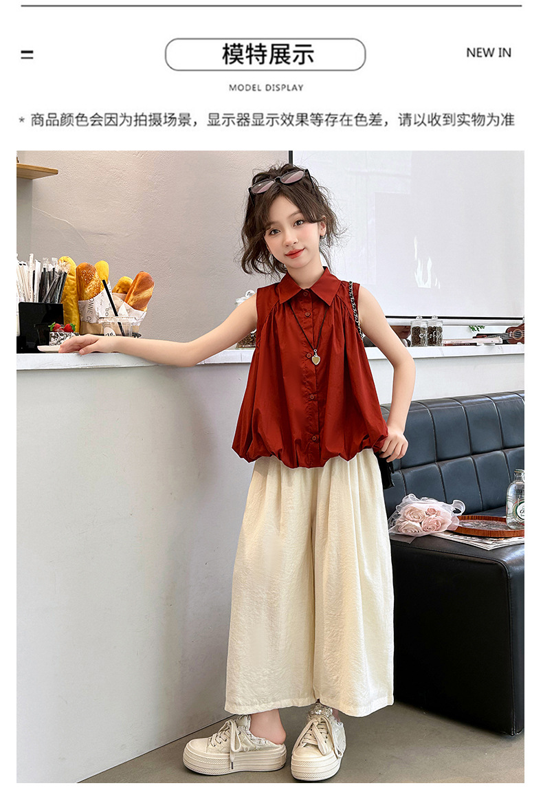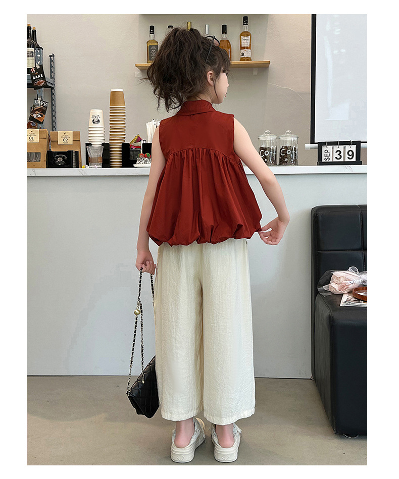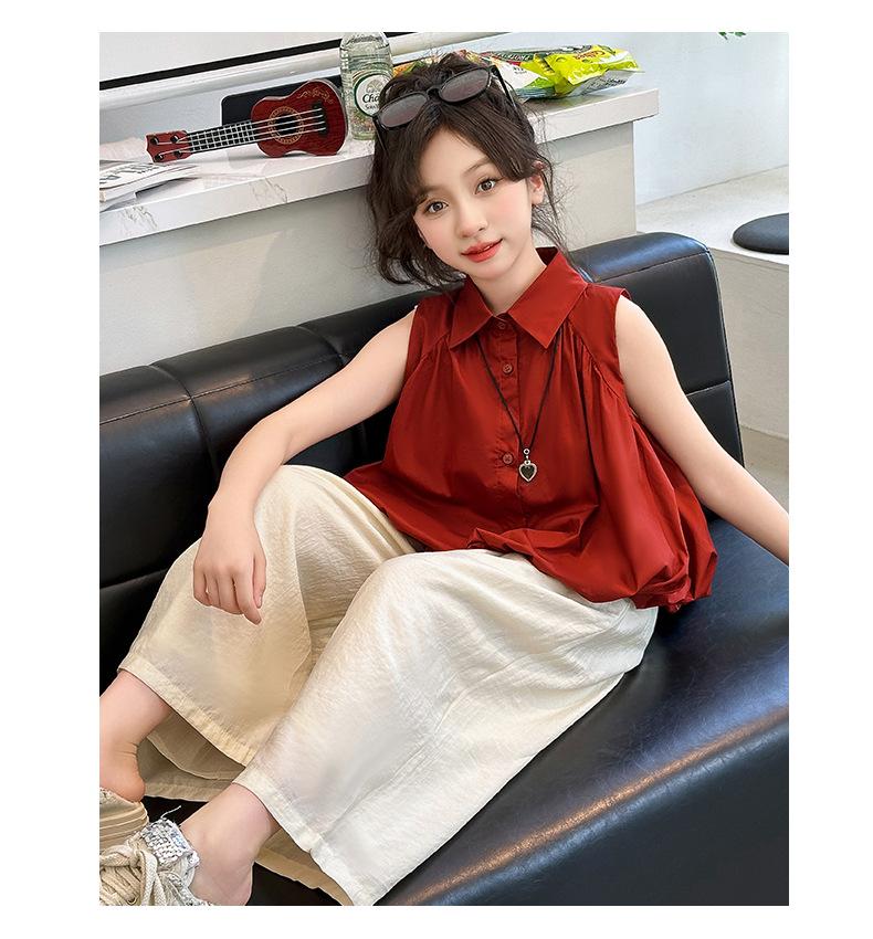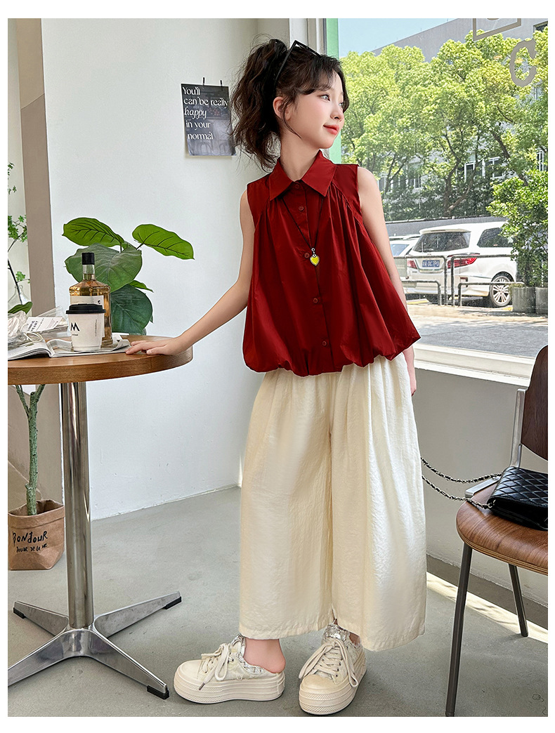 소녀 여름 작은 비행 소매 셔츠 세트 2024 여름 새로운 스타일 셔츠 어린이 짧은 소매 바지 투피스 세트