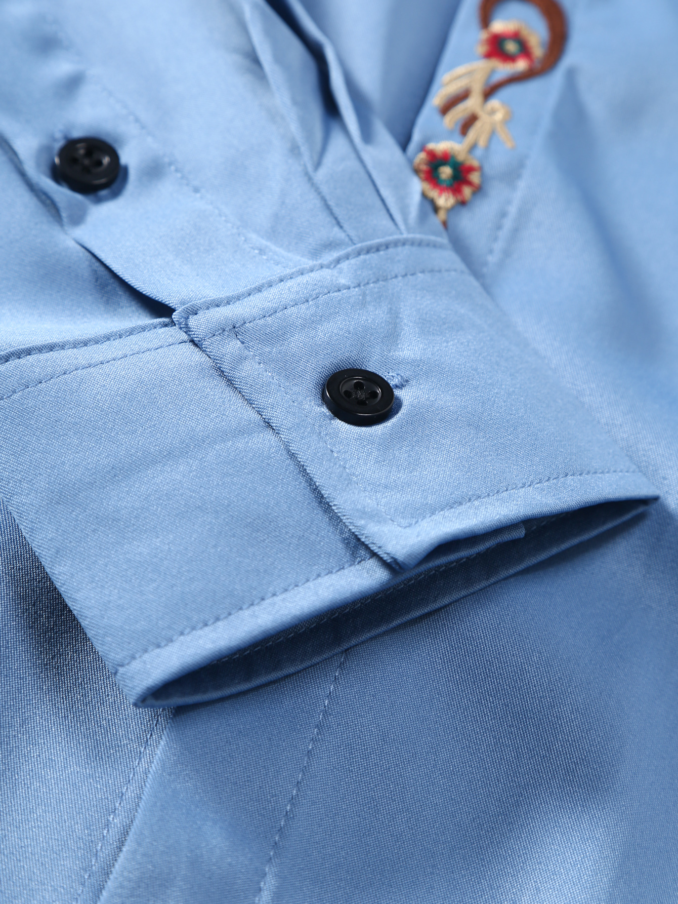 2024 남성 패션 자수 셔츠 캐주얼 긴 소매 셔츠 칼라 셔츠 캐주얼 셔츠