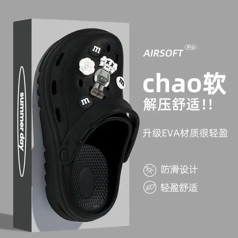 구멍 신발 Ins 학생 구멍 신발 여성 외부 착용 여름 2024 폐 느낌 부드러운 바닥 내마모성 커플의 통기성 슬리퍼