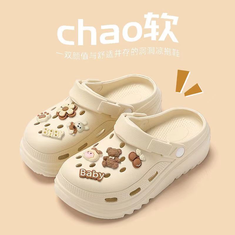 구멍 신발 Ins 학생 구멍 신발 여성 외부 착용 여름 2024 폐 느낌 부드러운 바닥 내마모성 커플의 통기성 슬리퍼스토어 가기