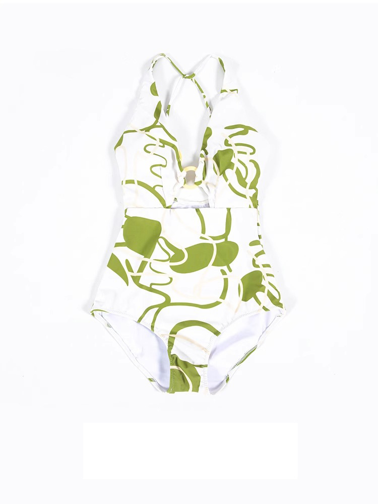 港风泳衣女复古修身性感露背小众挂脖遮肚显瘦吊带出口连体式泳装