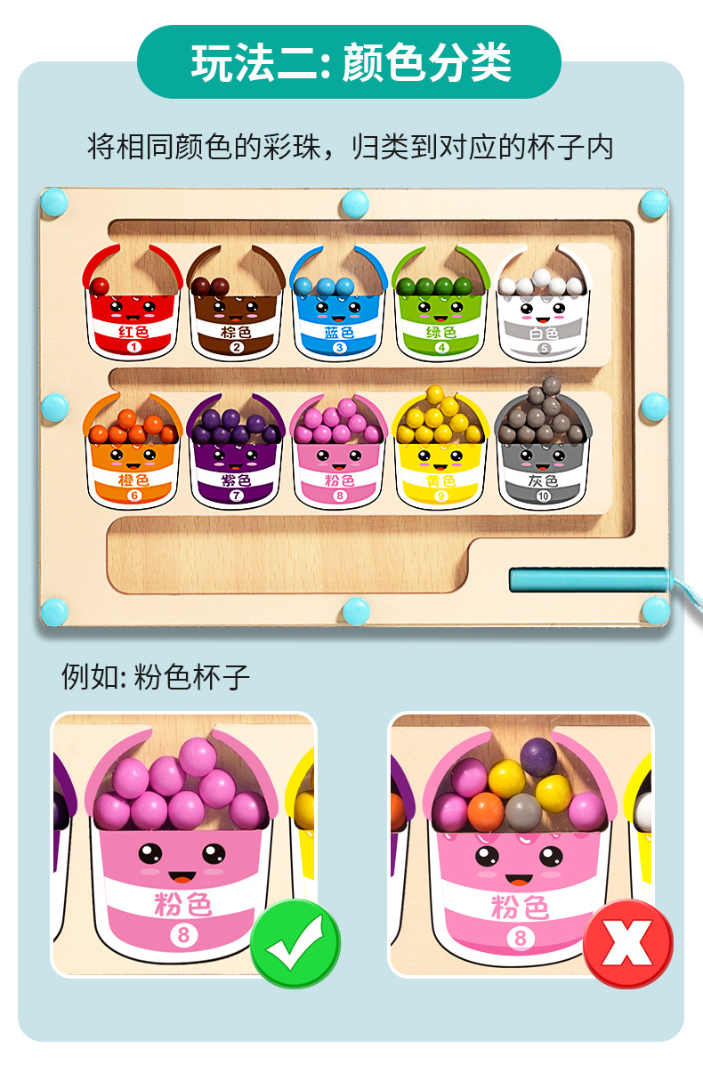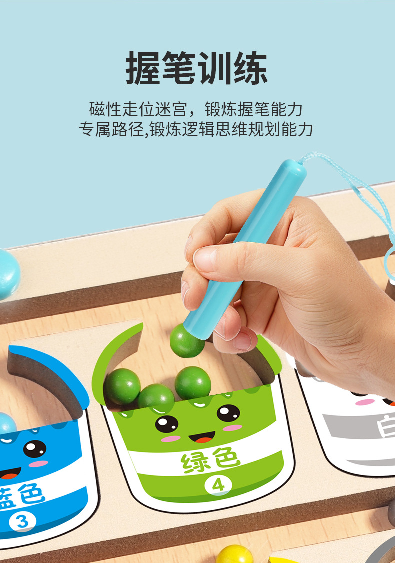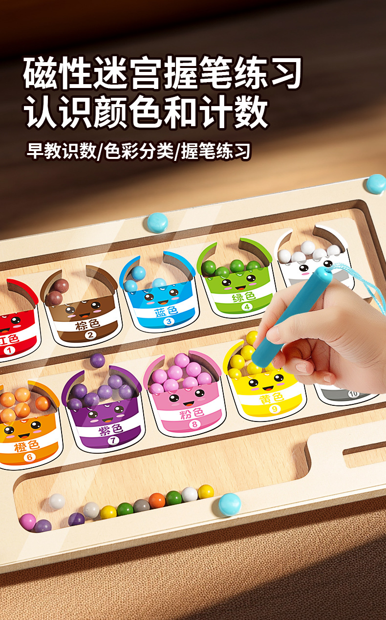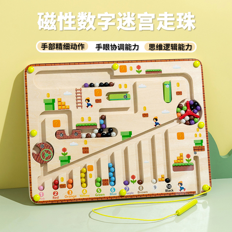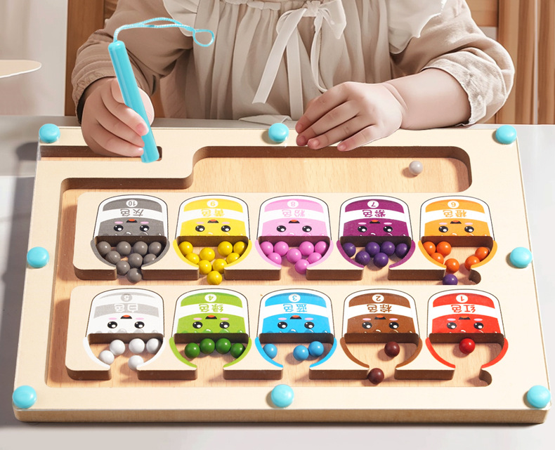 어린이 나무 자기 계산 작업 색상 분류 자기 펜 공 이동 게임 퍼즐 조기 교육 장난감 도매