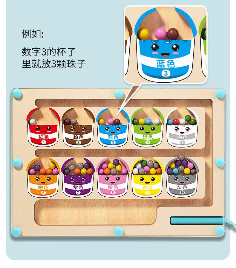 어린이 나무 자기 계산 작업 색상 분류 자기 펜 공 이동 게임 퍼즐 조기 교육 장난감 도매스토어 가기