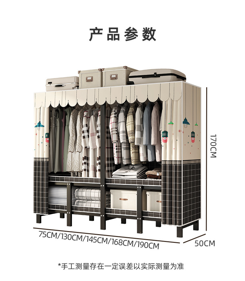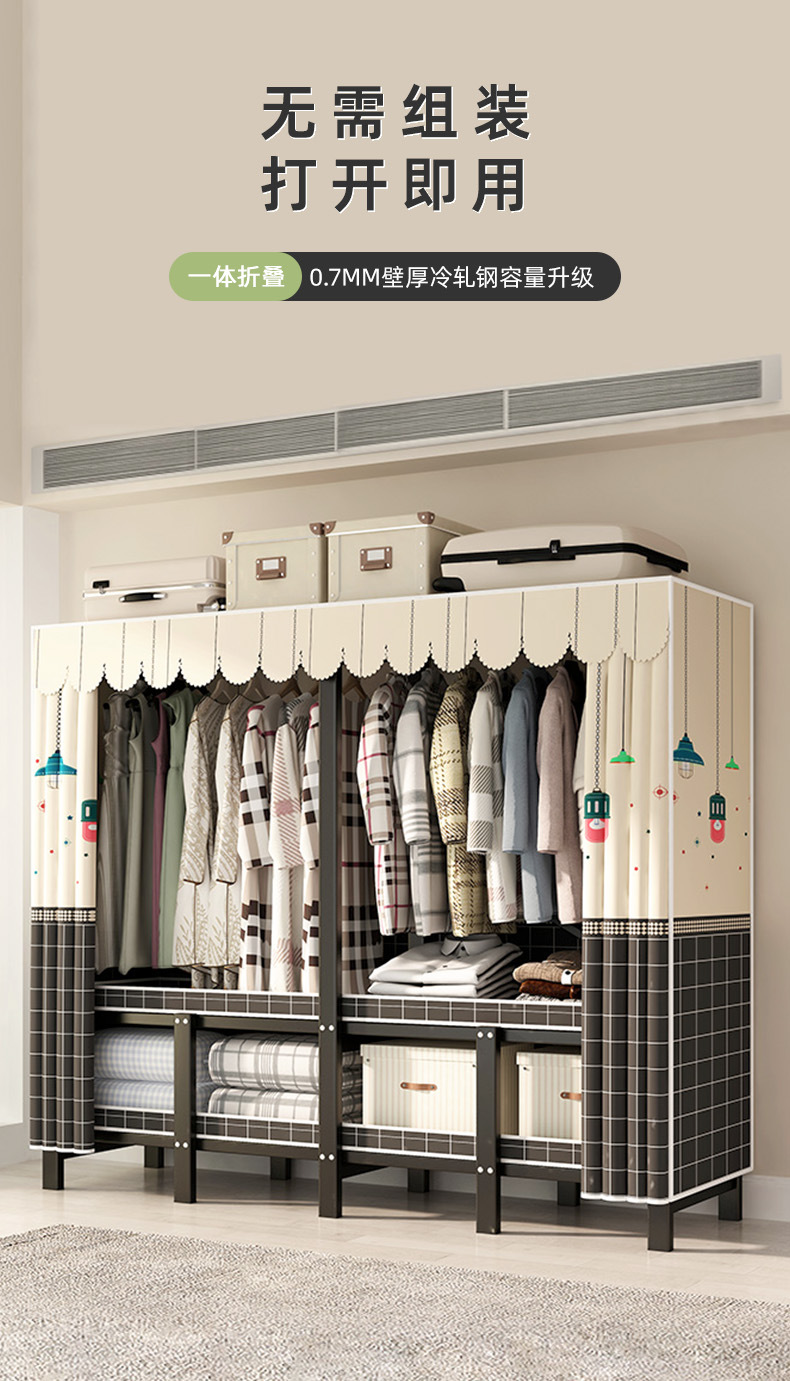 옷장 임대 방 가정용 침실 간단한 천 캐비닛 접히는 강력하고 튼튼한 강철 프레임 보관 옷장 신제품스토어 가기