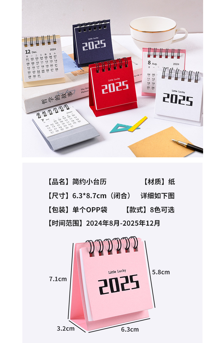 2025 미인쇄 스타일 레트로 미니 데스크 캘린더 간단한 작은 신선한 2024 미니 데스크탑 캘린더 캘린더 장식품스토어 가기