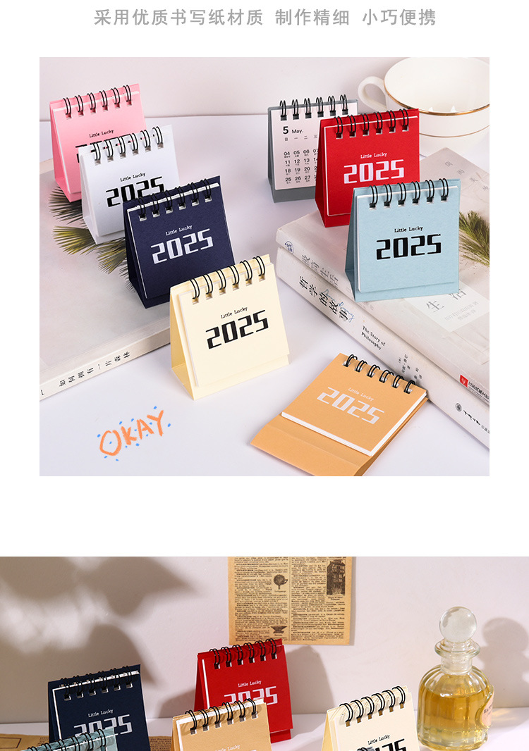 2025 미인쇄 스타일 레트로 미니 데스크 캘린더 간단한 작은 신선한 2024 미니 데스크탑 캘린더 캘린더 장식품