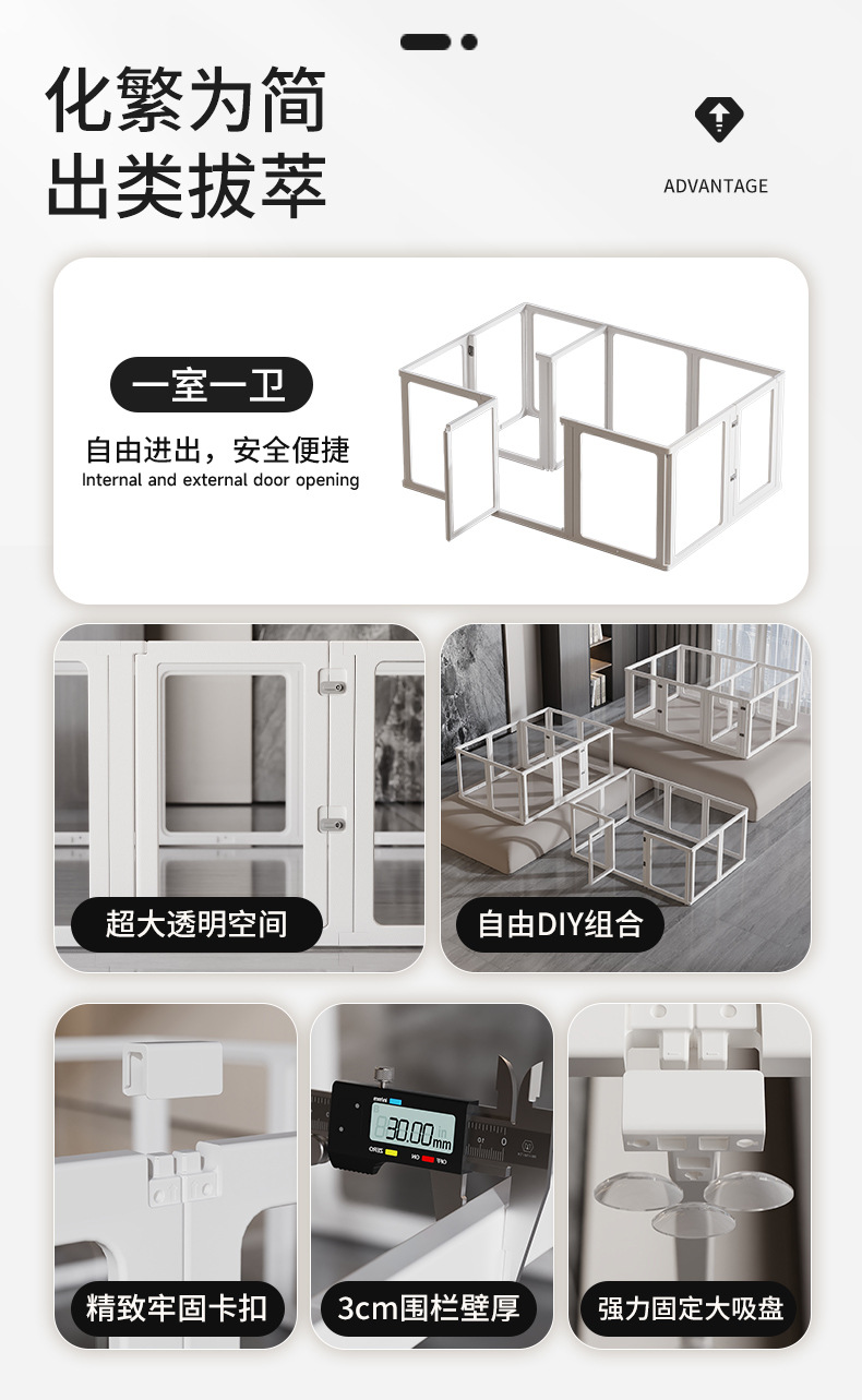 애완 동물 울타리 아크릴 투명 개 울타리 75cm 높이 추가 실내 가구 울타리 무료 조합 개 케이지