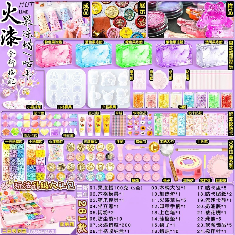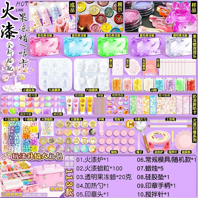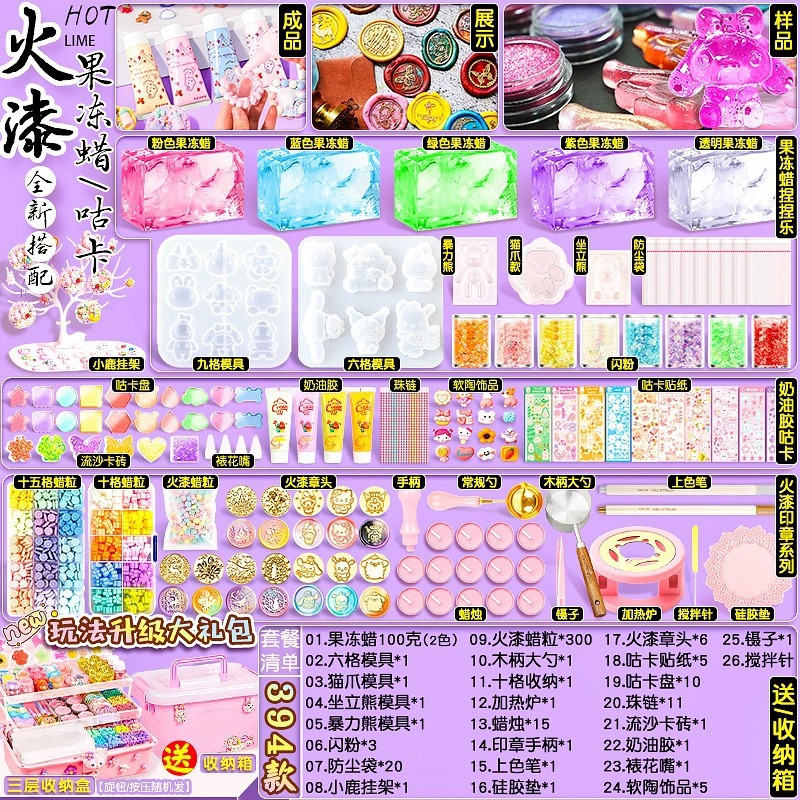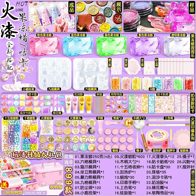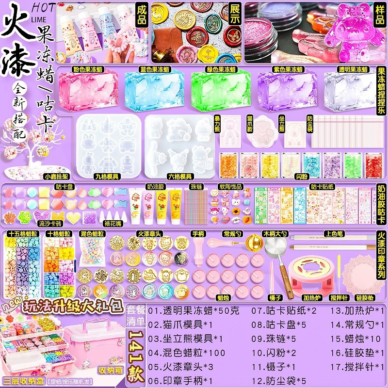 젤리 왁스 핀치 놀이 DIY 재료 세트, 파이어 라이트 씰, 소녀용 화성 스타일 씰, 헤드구카 장난감 세트, 보관함 포함스토어 가기