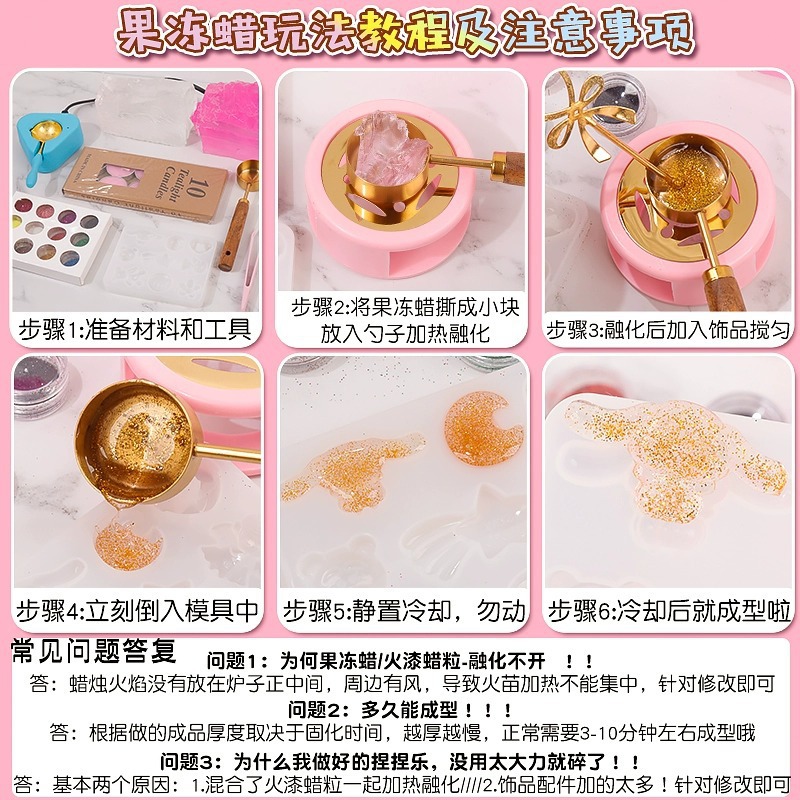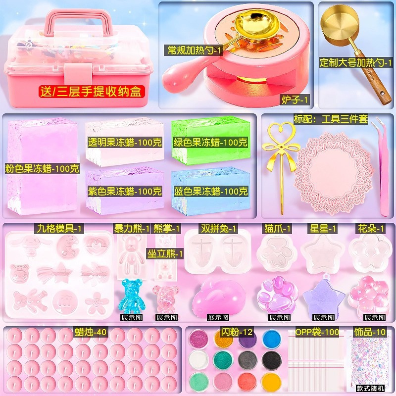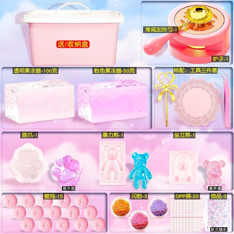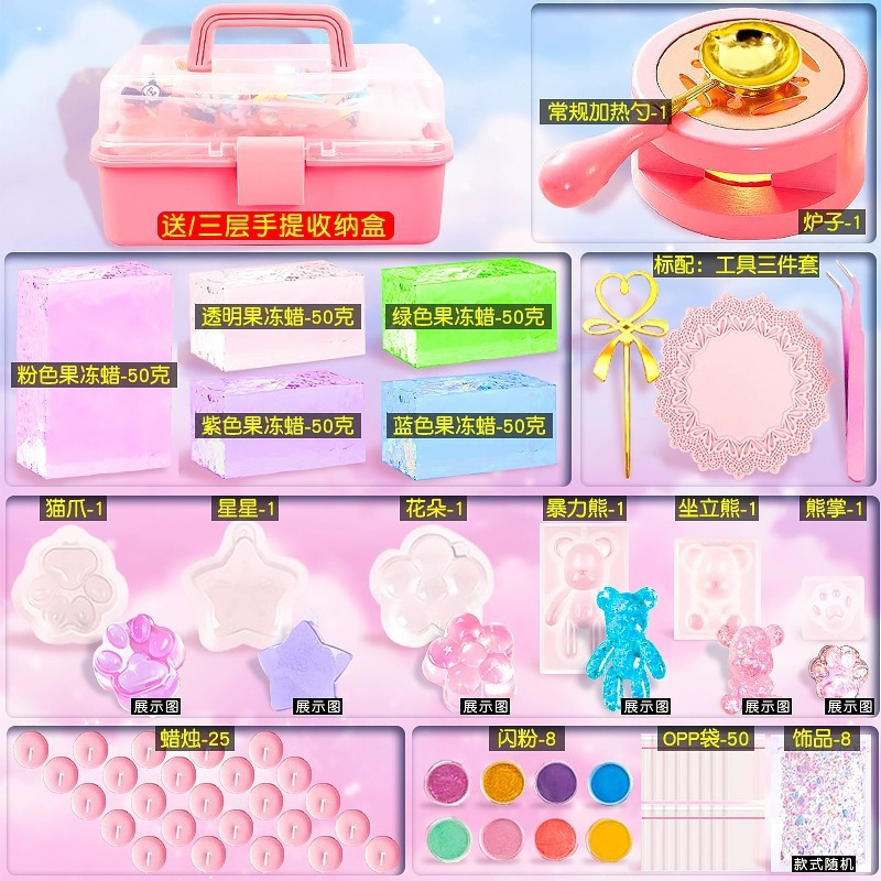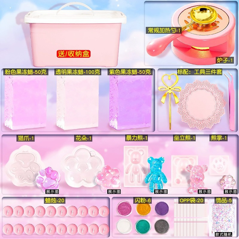 젤리 왁스 핀치 놀이 DIY 재료 세트, 파이어 라이트 씰, 소녀용 화성 스타일 씰, 헤드구카 장난감 세트, 보관함 포함스토어 가기