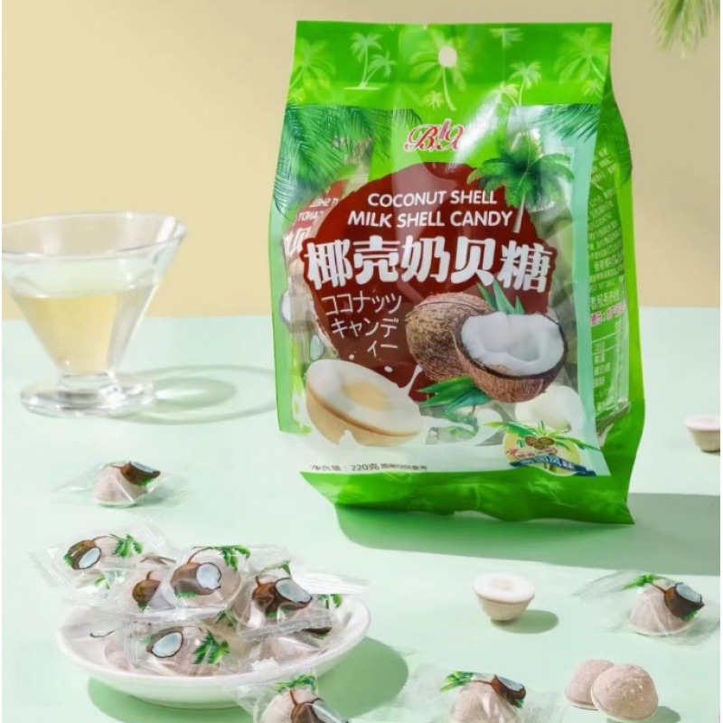 Bo Xiang 220g 코코넛 껍질 밀크 쉘 설탕 가방 캐주얼 코코넛 맛 우유 캔디 사무실 스낵 배치스토어 가기