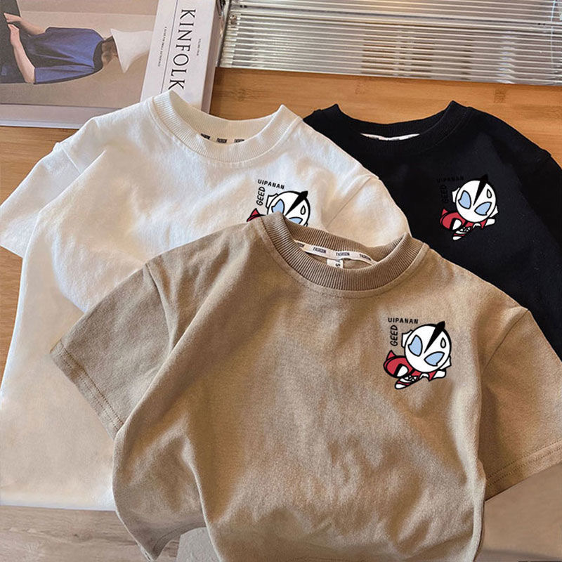 남학생 반팔 티셔츠 어린이 여름면 인쇄 탑 아기의 둥근 목 서양식 한국베이스 셔츠 T스토어 가기
