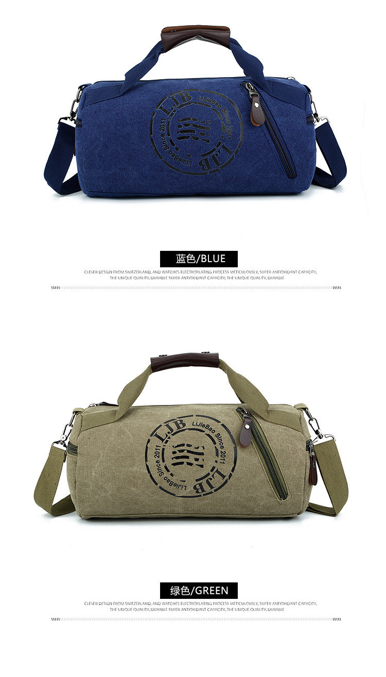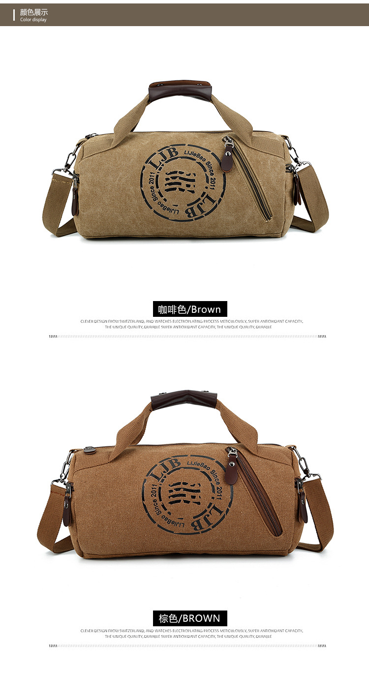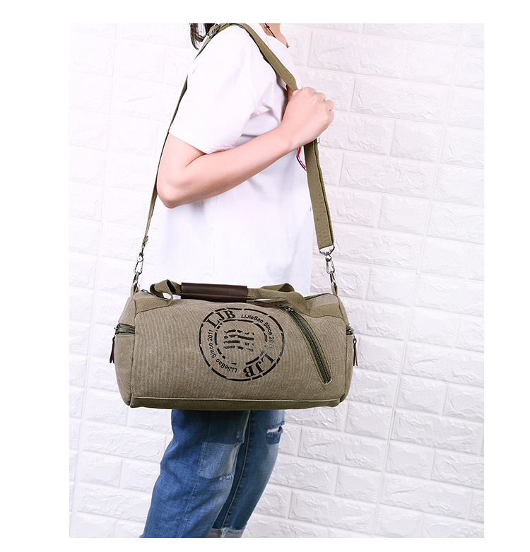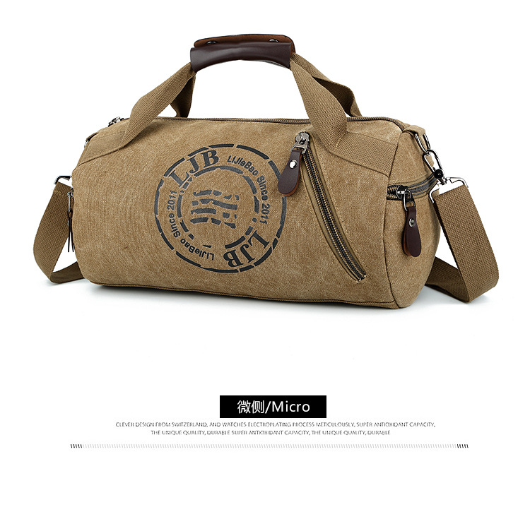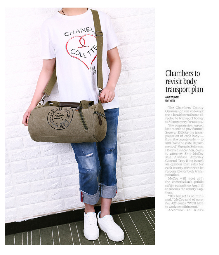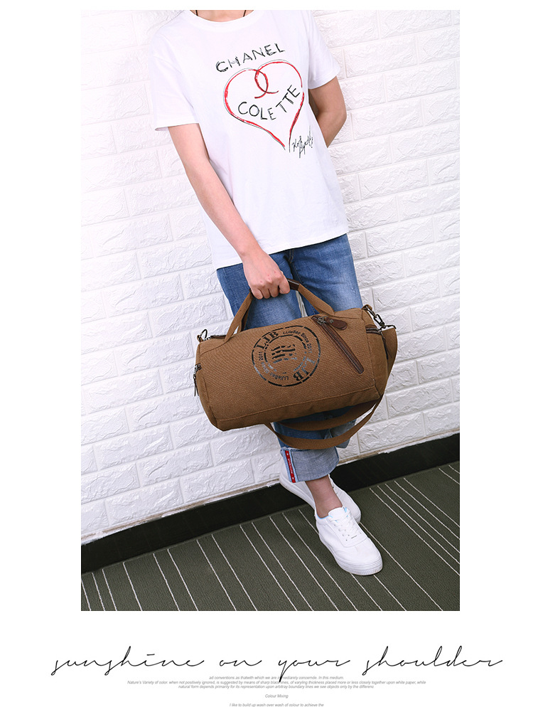 인쇄 된 로고 유니섹스 휴대용 어깨 캔버스 원통형 캐주얼 여행 피트니스 의류 크로스 바디 백