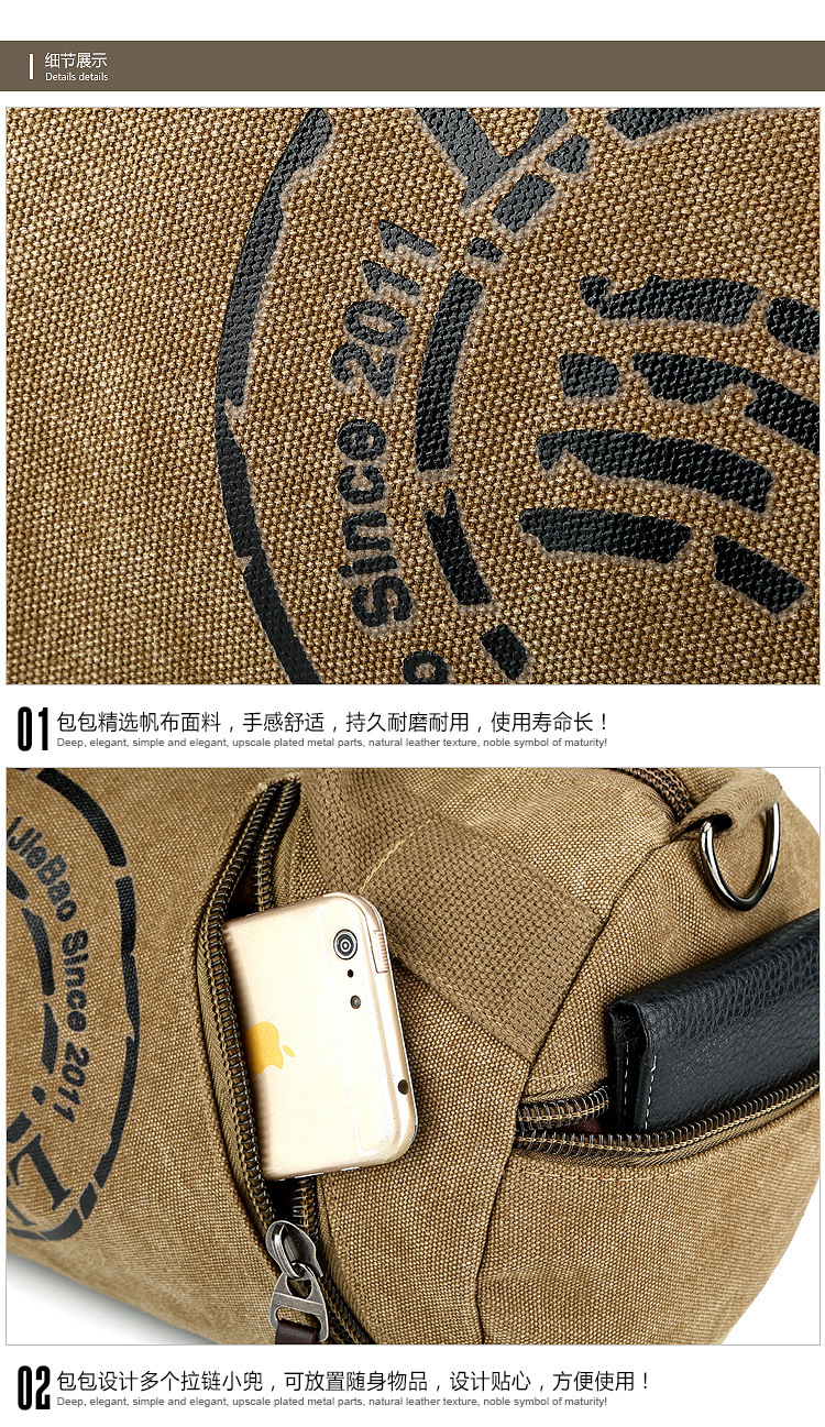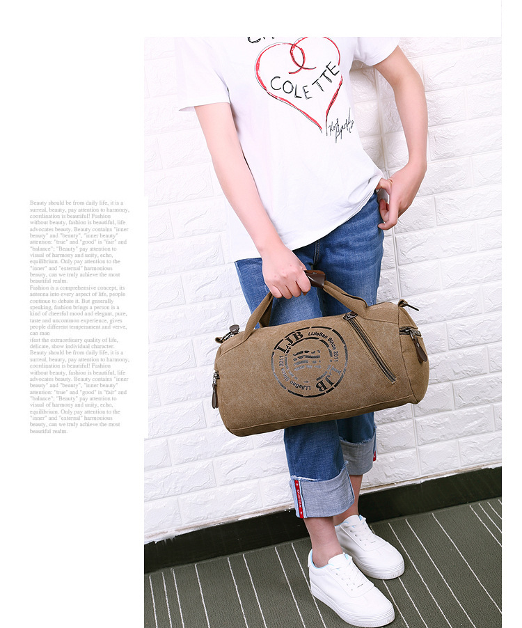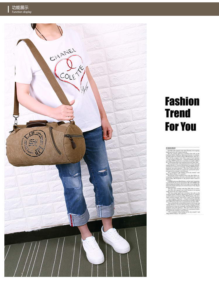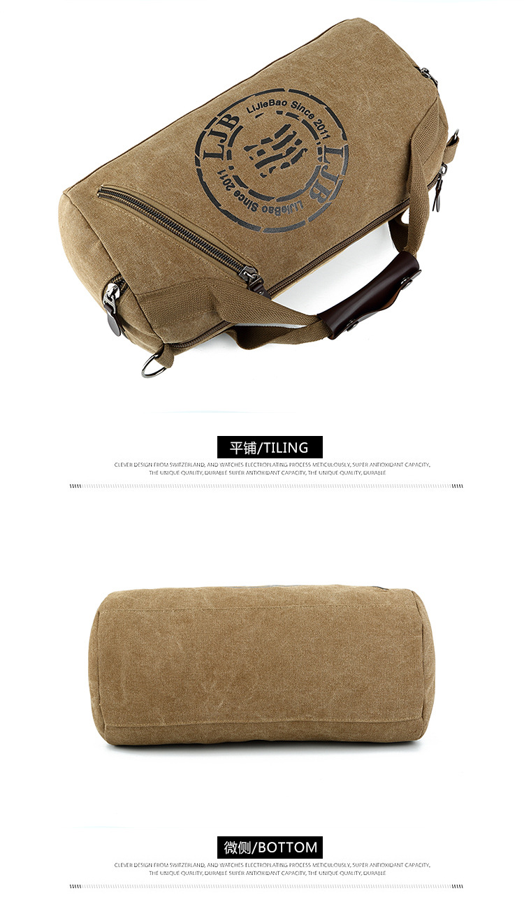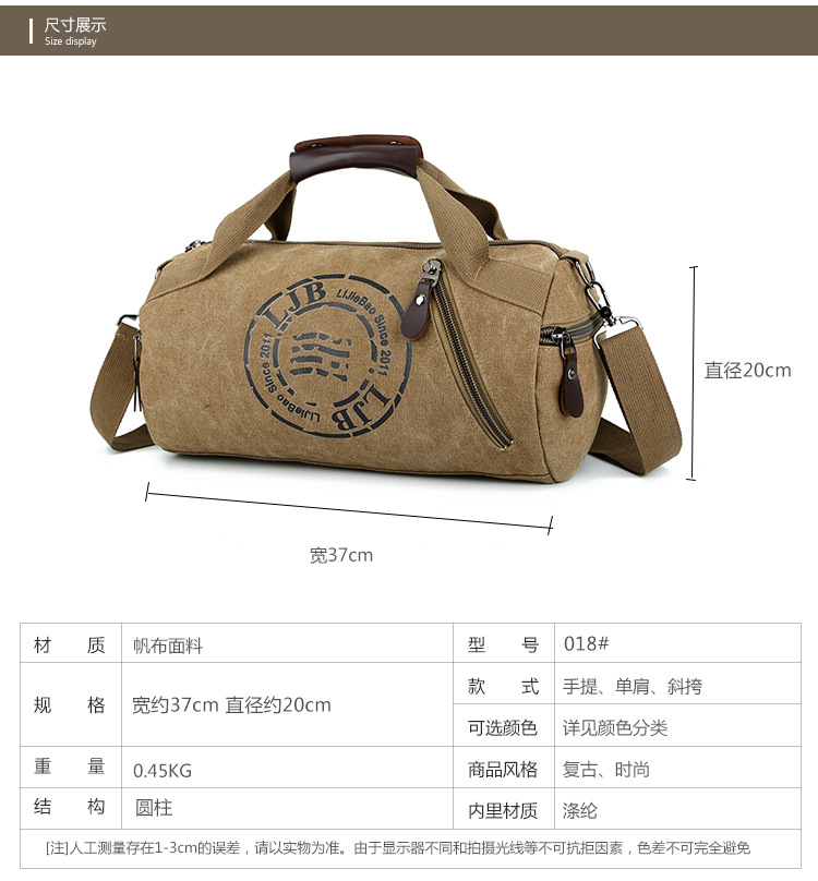 인쇄 된 로고 유니섹스 휴대용 어깨 캔버스 원통형 캐주얼 여행 피트니스 의류 크로스 바디 백