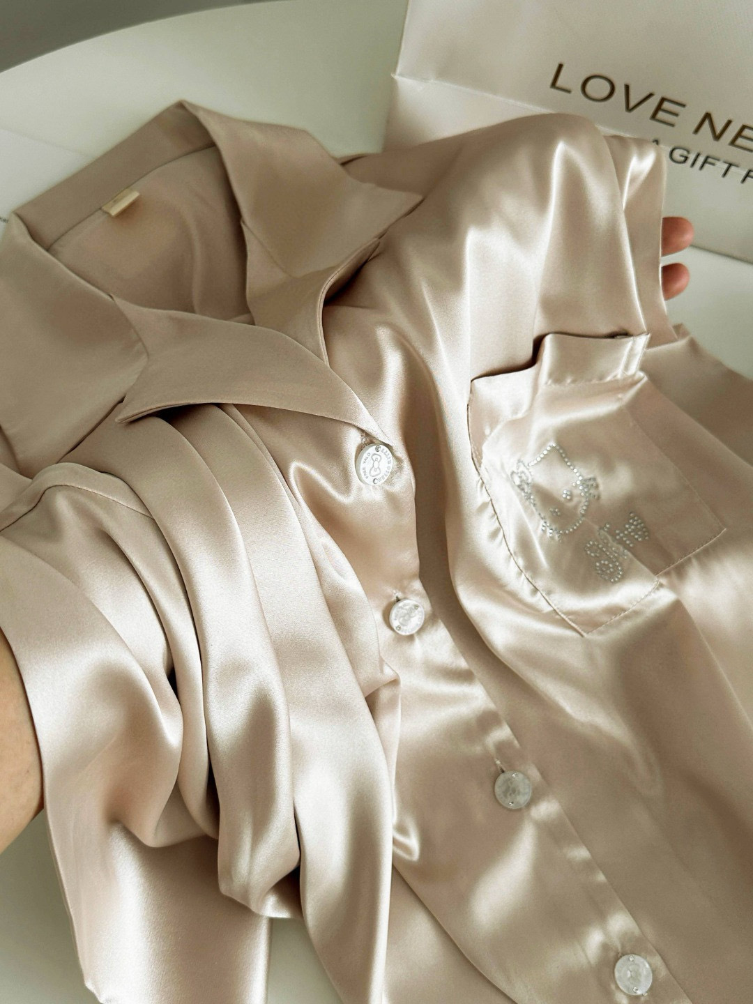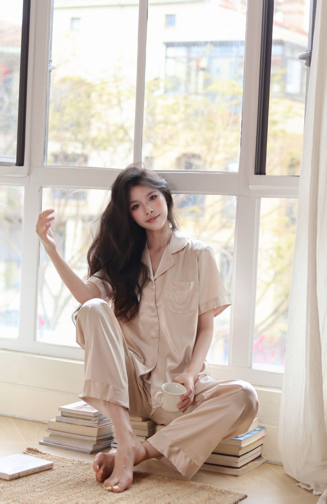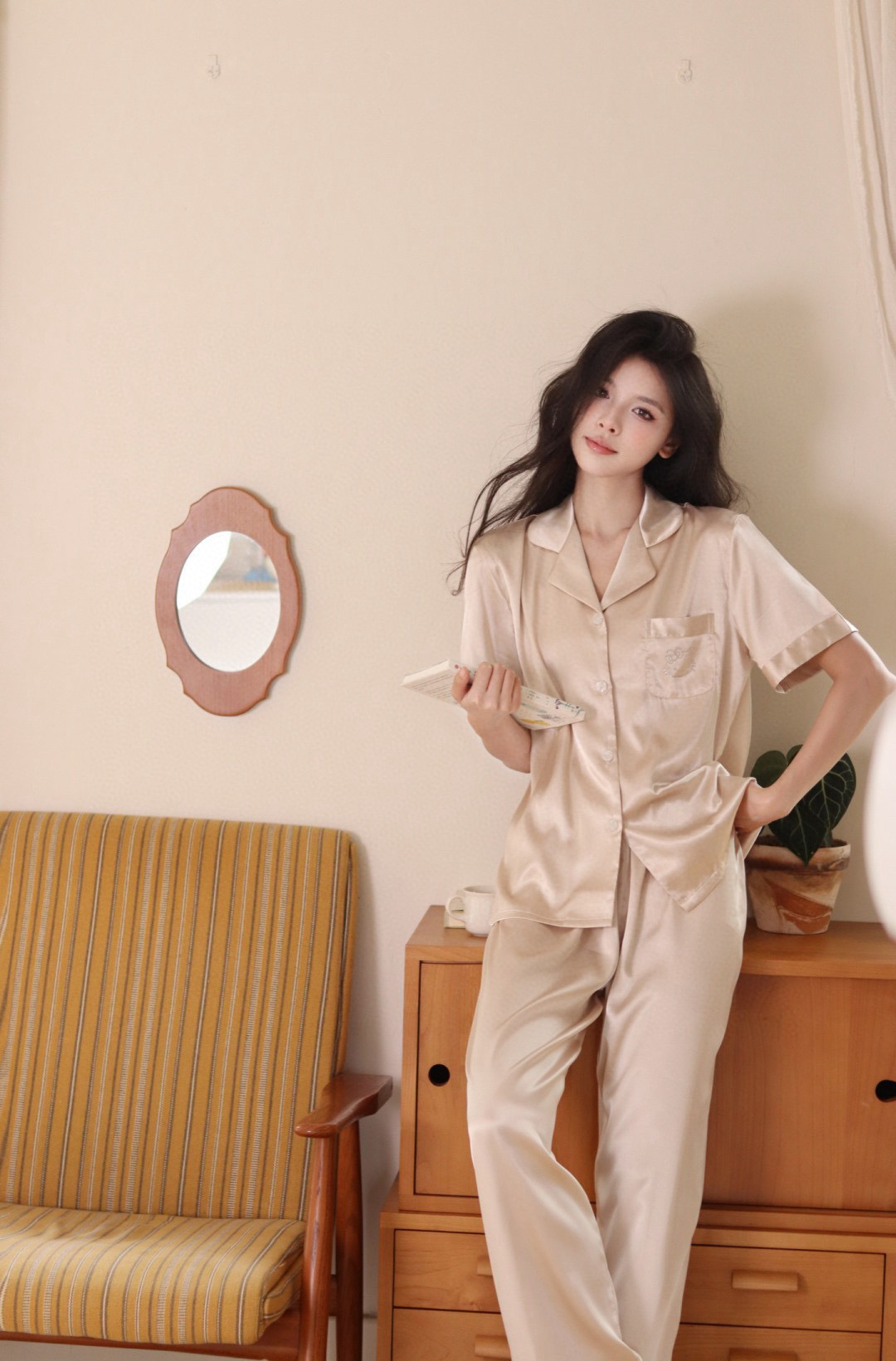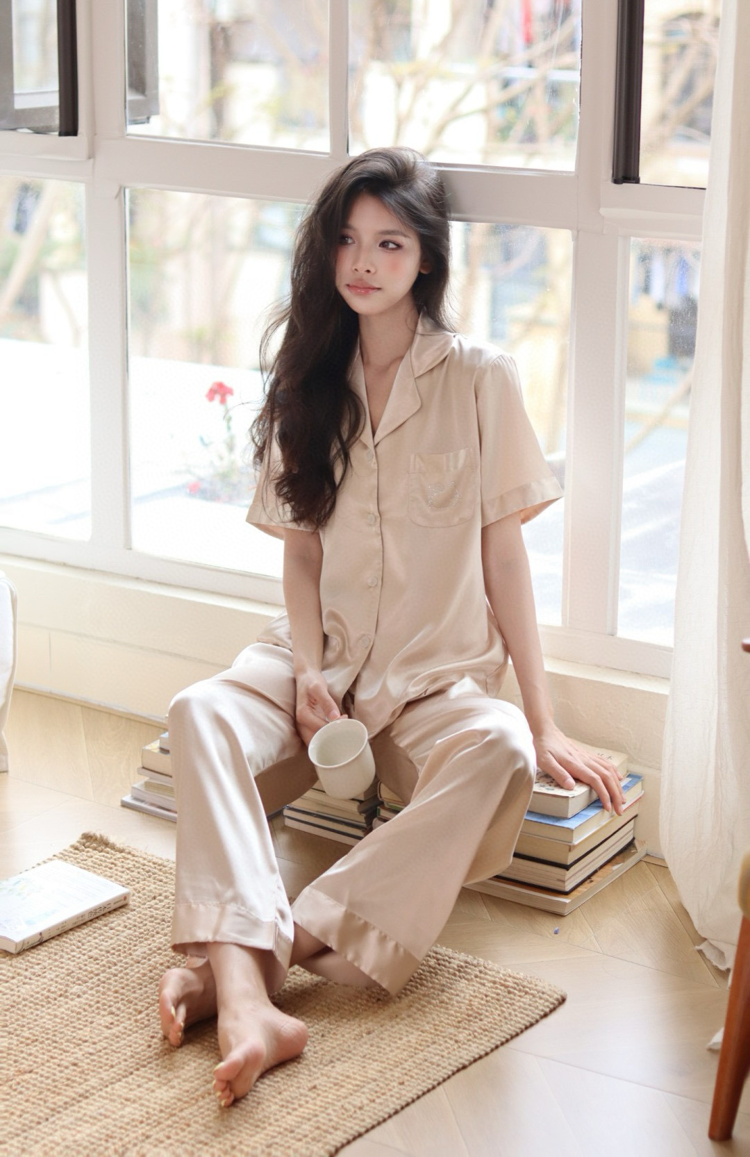 금도금 키티 한국 스타일 핫 드릴링 고급 아이스 실크 파자마 여성 세트 긴팔 봄 가을 인터넷 연예인 새틴 홈 의류 여성스토어 가기