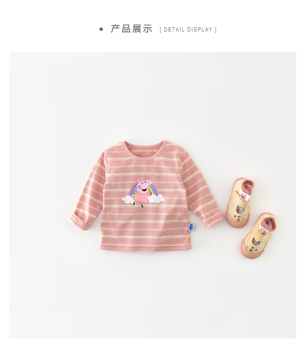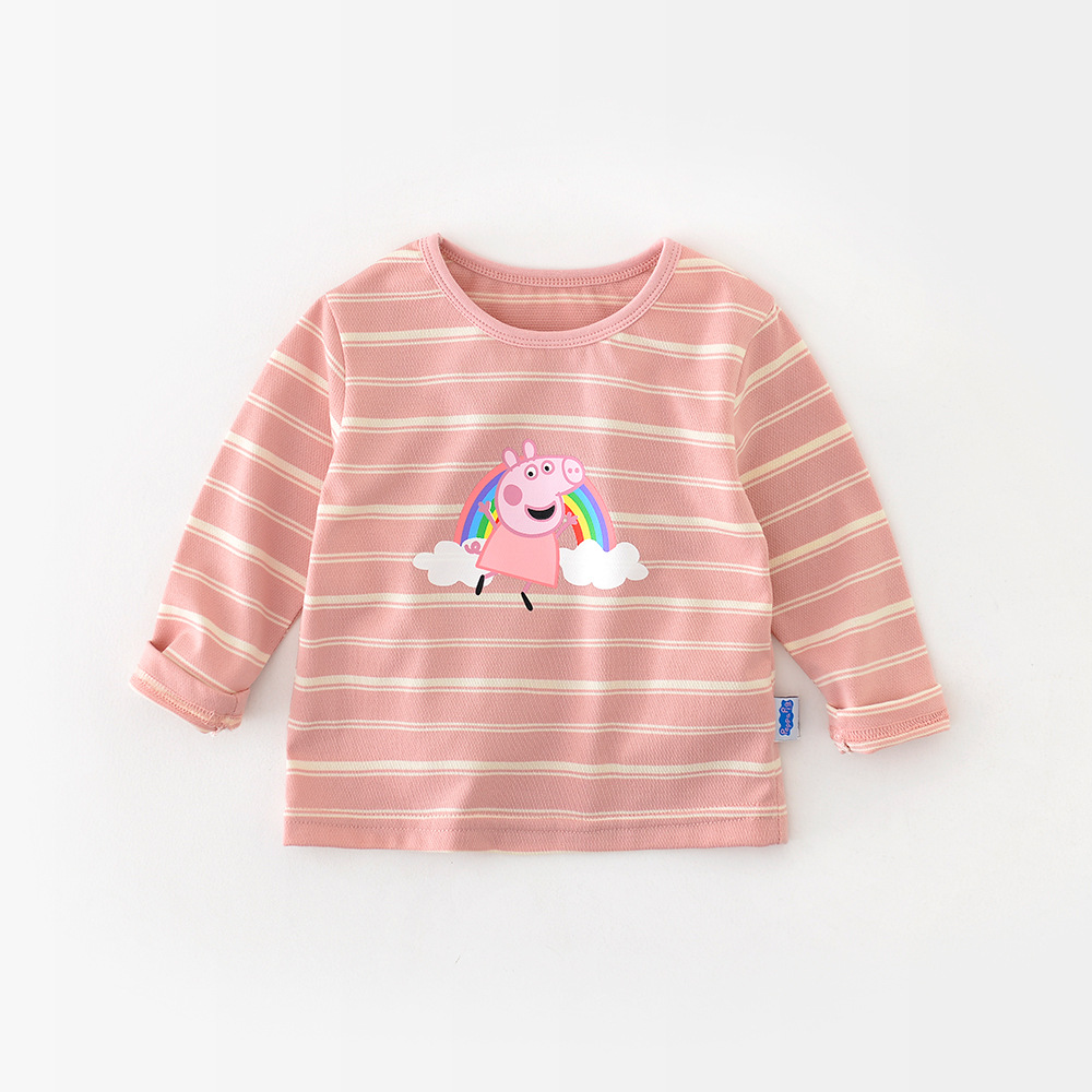 어린 이용 긴 소매 귀여운 만화베이스 셔츠 93510 돼지 페이지 합동 소녀 줄무늬 티셔츠스토어 가기