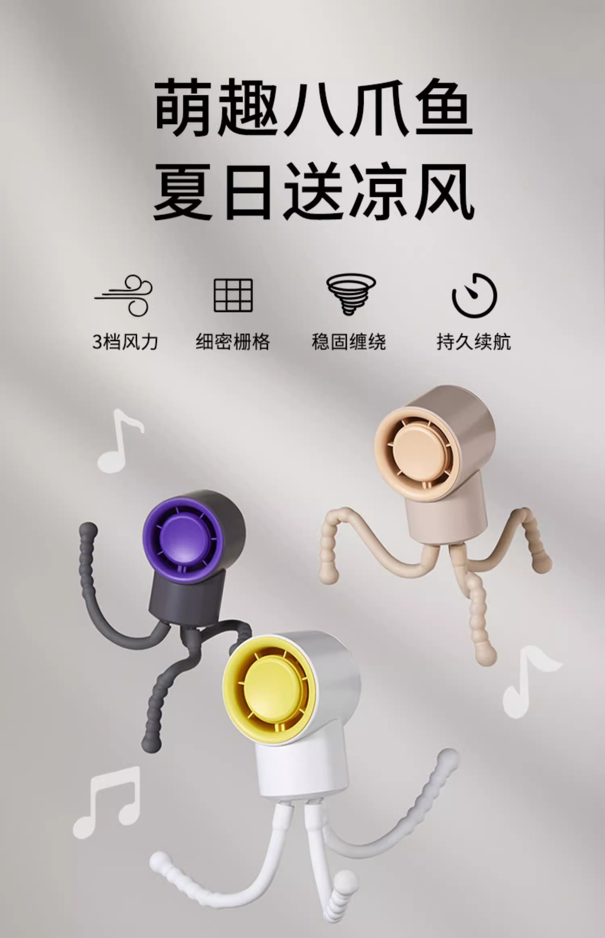 Keyao Octopus 팬 라이트 톤 휴대용 휴대용 아기 캐리지 작은 팬 usb 충전 모기 Repelling 라이트 톤 야외스토어 가기