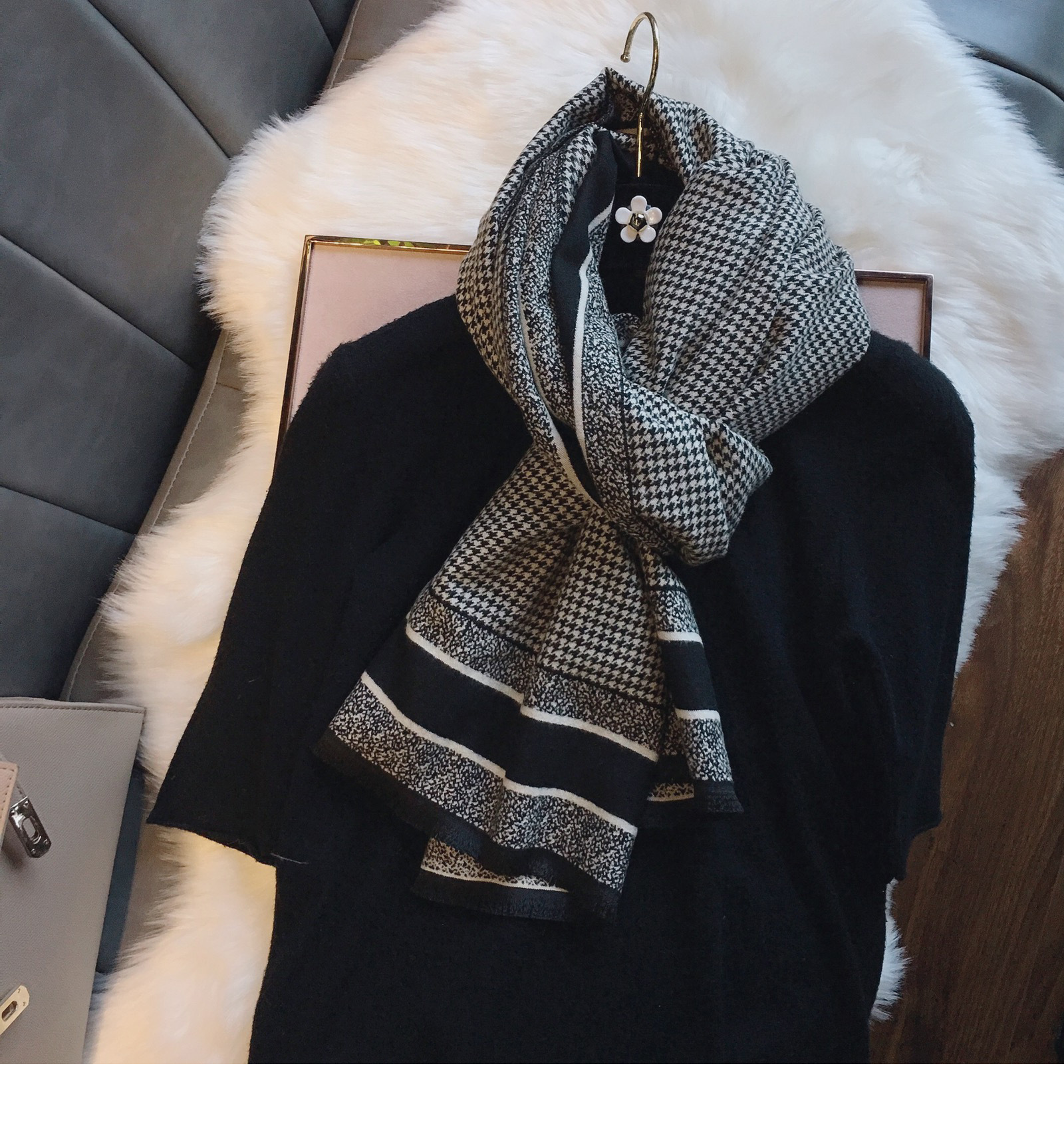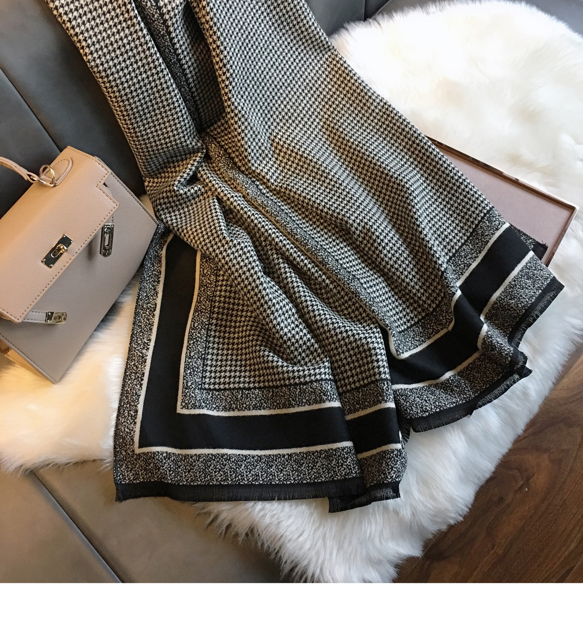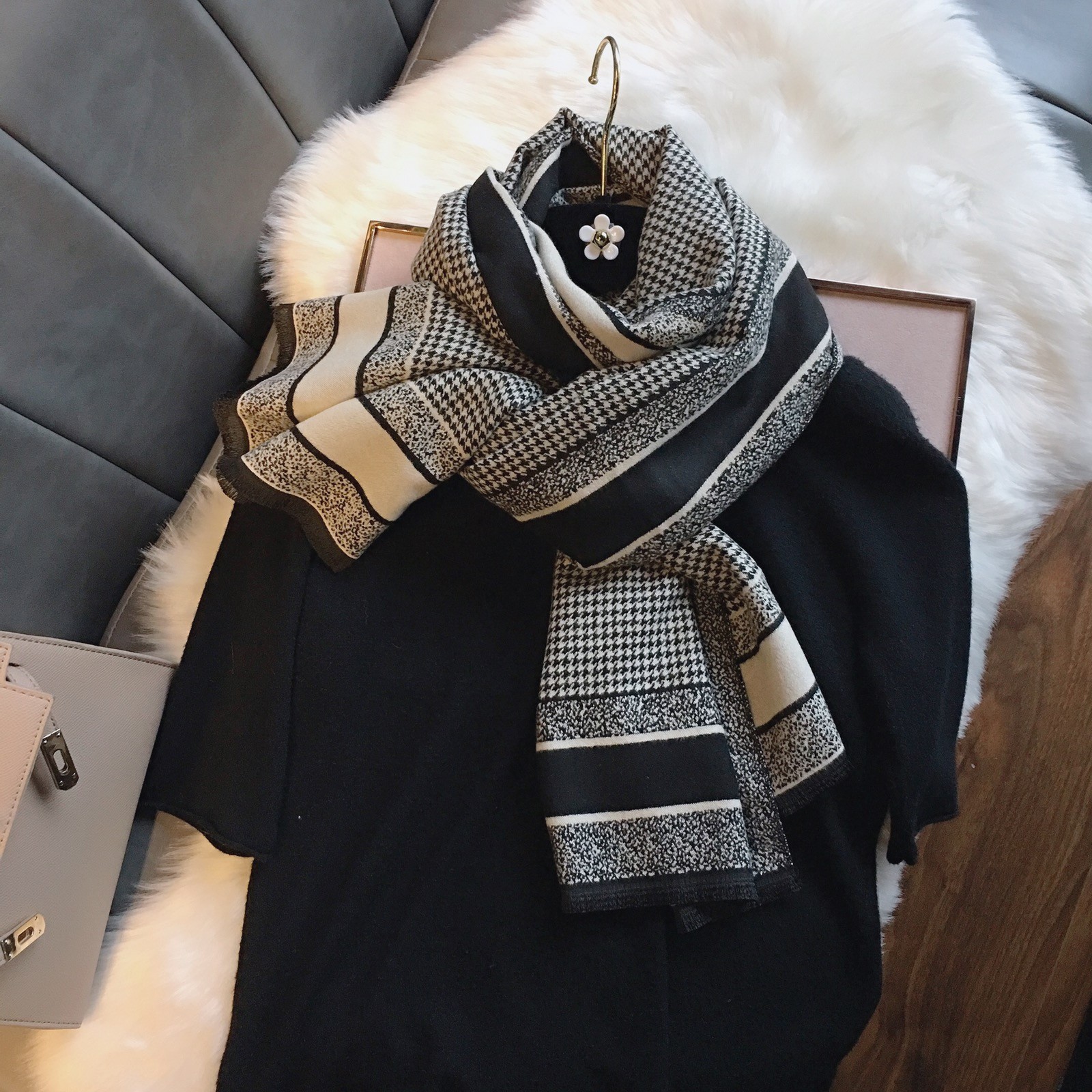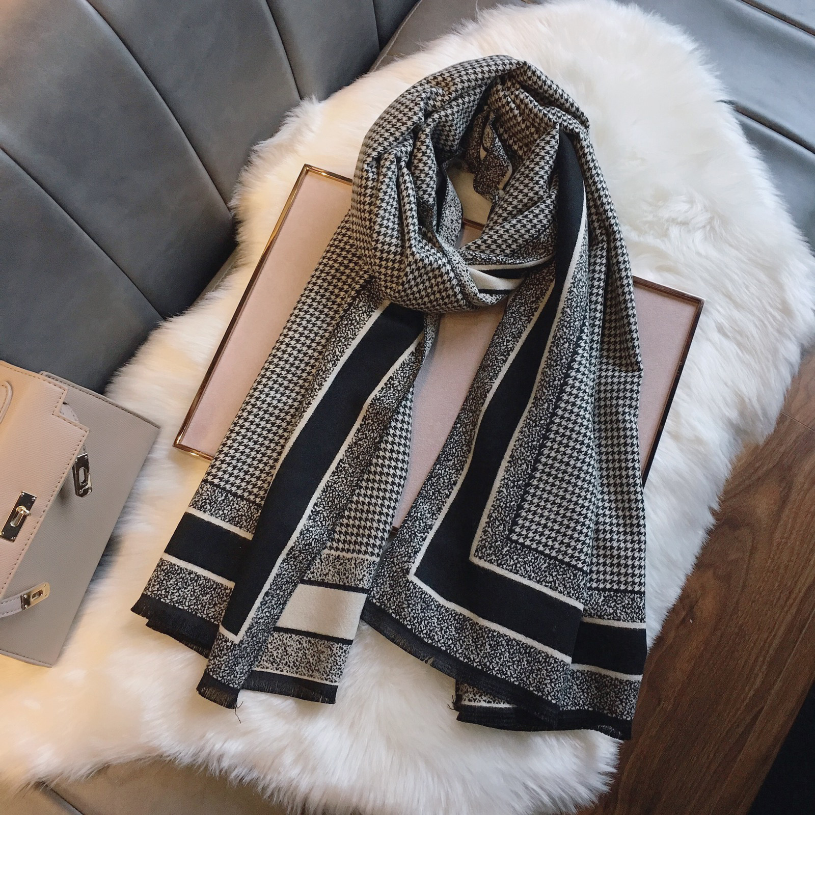 국경을 넘나 드는 가을과 겨울 새로운 Houndstooth 패턴 에어컨 목도리 자카드 캐시미어 여성용 양면 롱 스카프