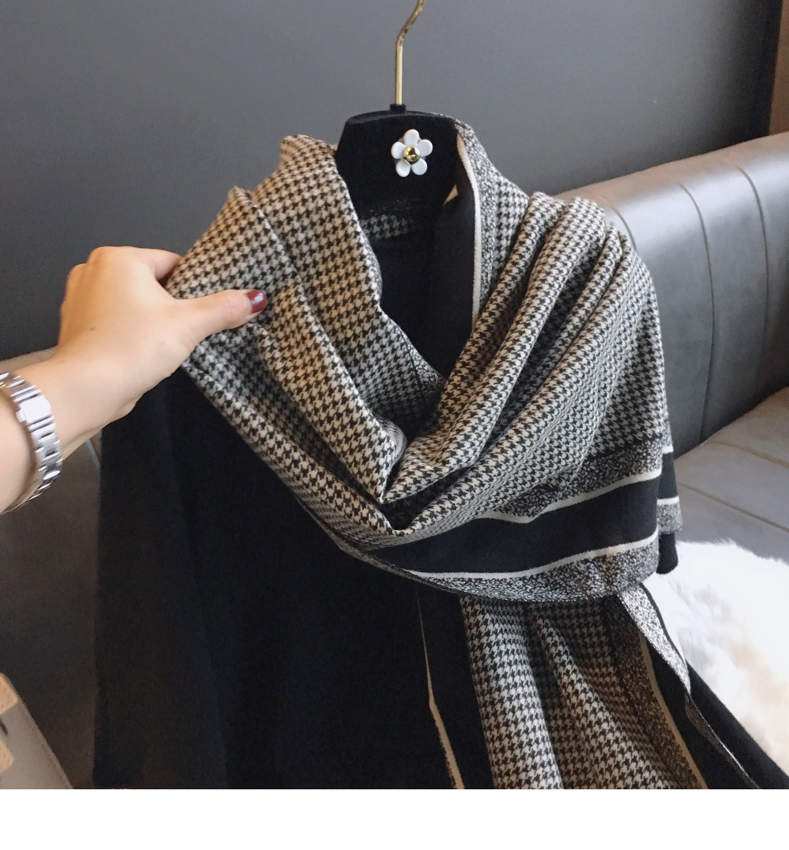 국경을 넘나 드는 가을과 겨울 새로운 Houndstooth 패턴 에어컨 목도리 자카드 캐시미어 여성용 양면 롱 스카프스토어 가기