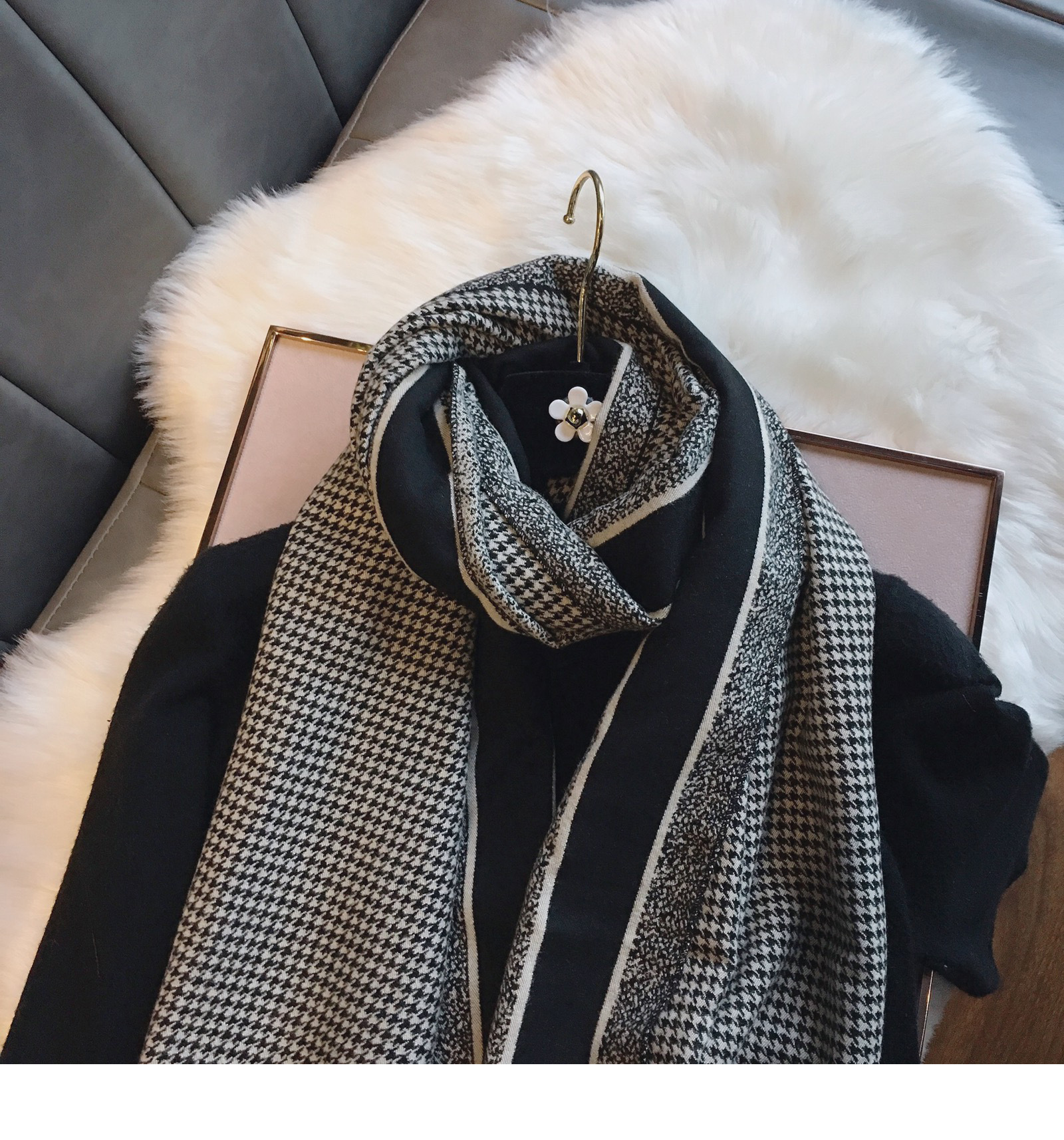 韩版秋冬季保暖围巾女仿羊绒双面千鸟格气质百搭围脖长款大披肩