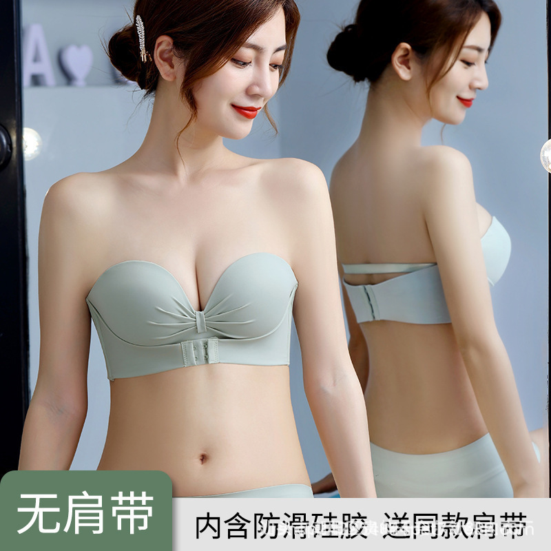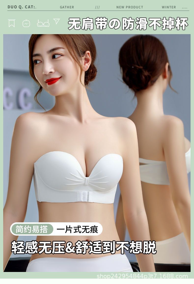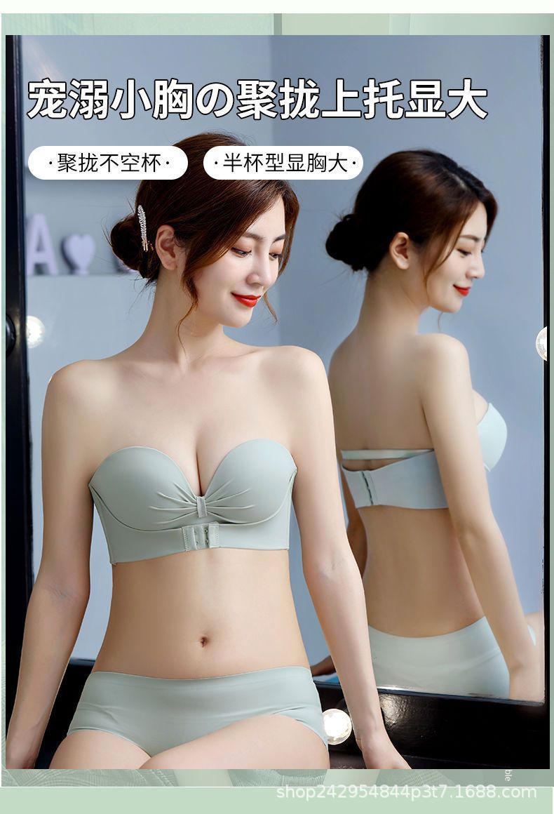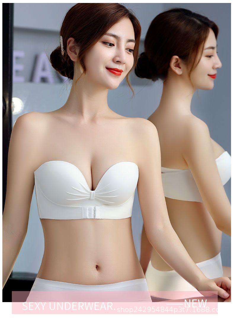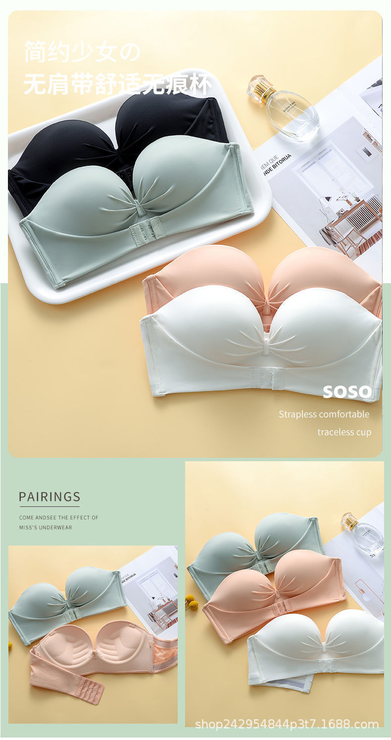 스트랩리스 속옷 여성의 작은 가슴 푸시 업 미끄럼 방지 안티-러닝 노마크 스트랩리스 튜브 탑 내부 보이지 않는 아름다운 백 브라