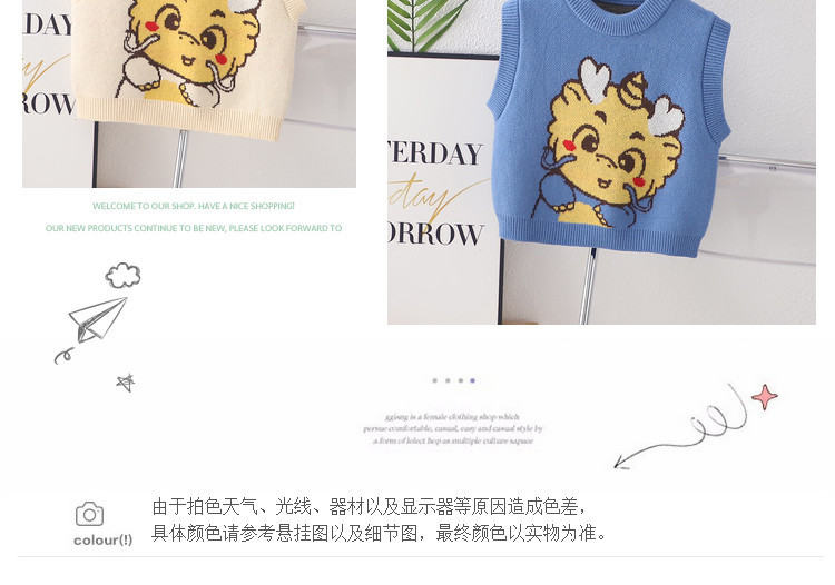 봄, 여름, 가을, 겨울을위한 새로운 어린이 조끼 조끼 니트웨어 외부 착용 아기 만화 어깨 허리 코트스토어 가기