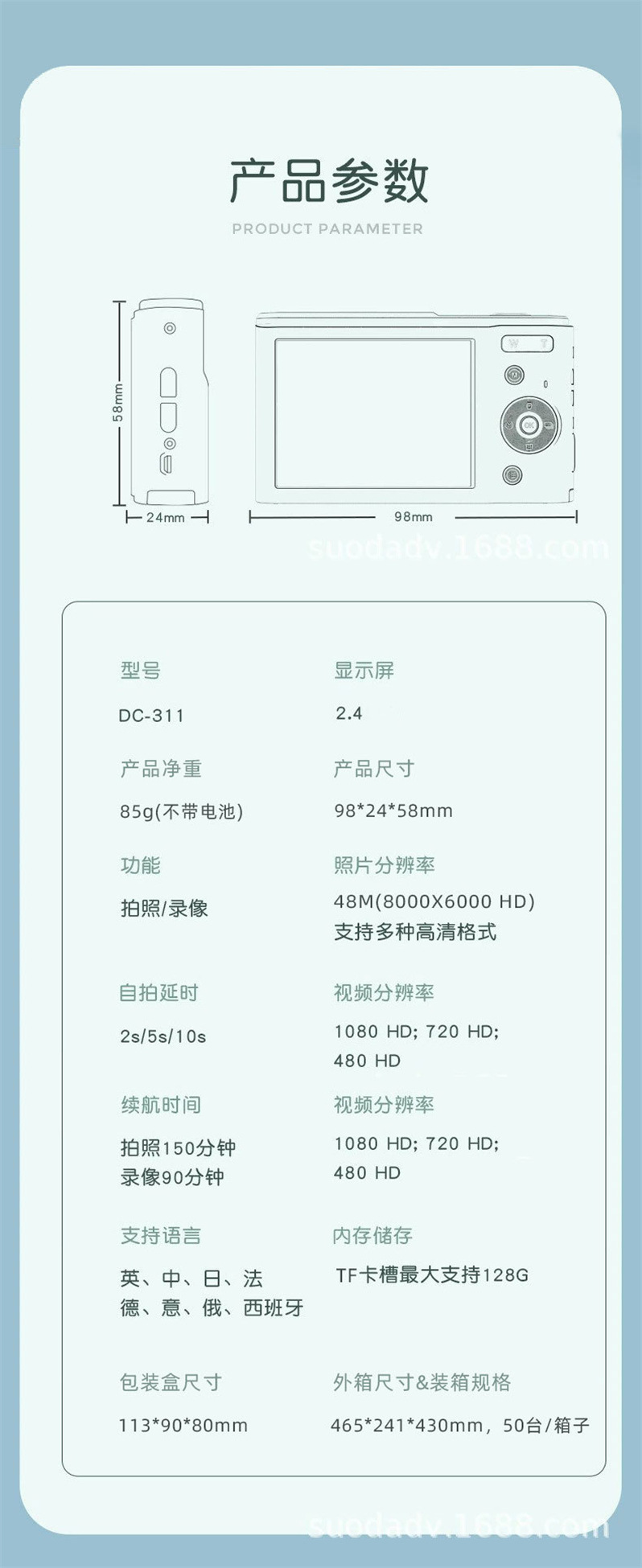 외국 무역용 DC311 고화질 미니 디지털 카메라 학생용 가정용 카메라 셀카 카드형 카메라 ccd 도매