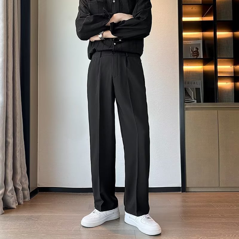 大码垂感冰丝直筒长裤男士夏季运动宽松拖地速干薄款休闲小西裤子