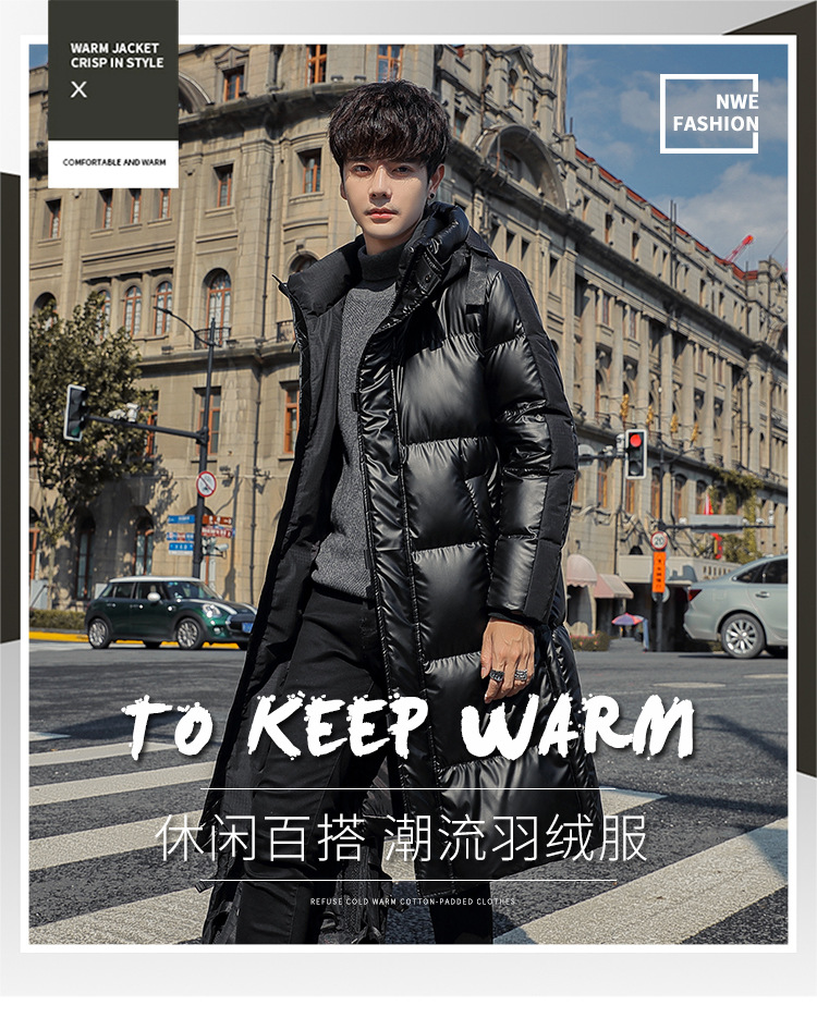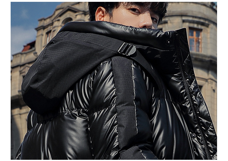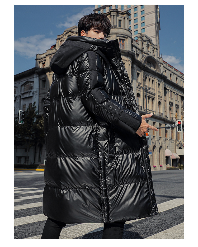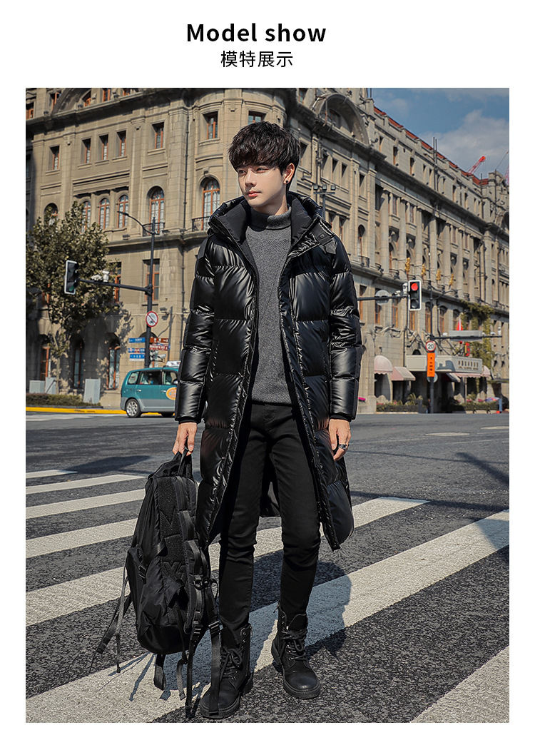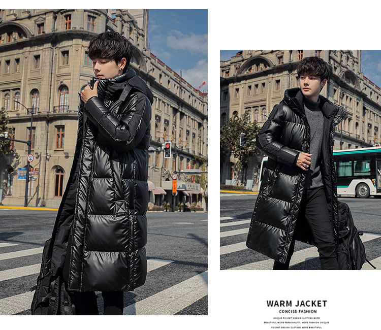 2024 겨울 청소년 광택 무릎 위 화이트 오리 다운 재킷 남성용 두꺼운 후드 방수 롱 코트 트렌디스토어 가기