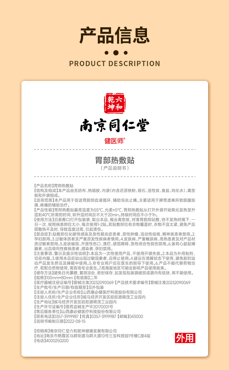 난징 Tongrentang 위 위 위 부피를위한 핫 응용 페이스트 위 통증 위 통증 위 부두 균열 및 위 결핍 감기 완화 통증 외부 뜨거운 응용 페이스트