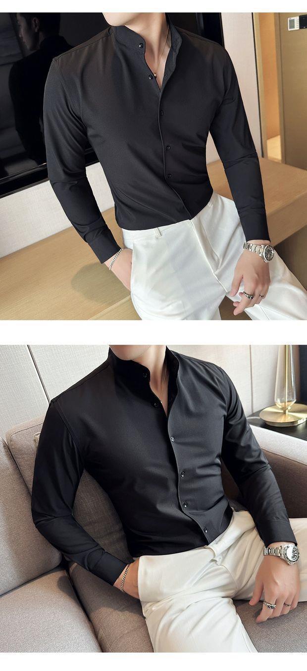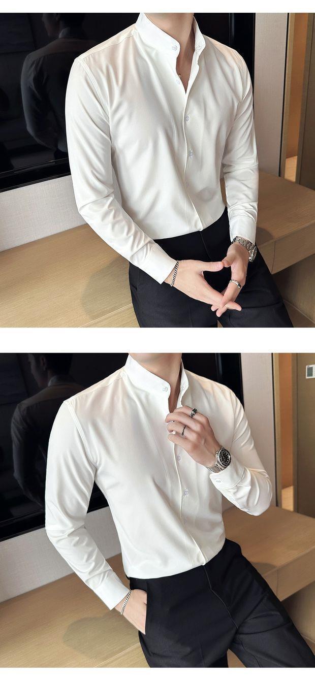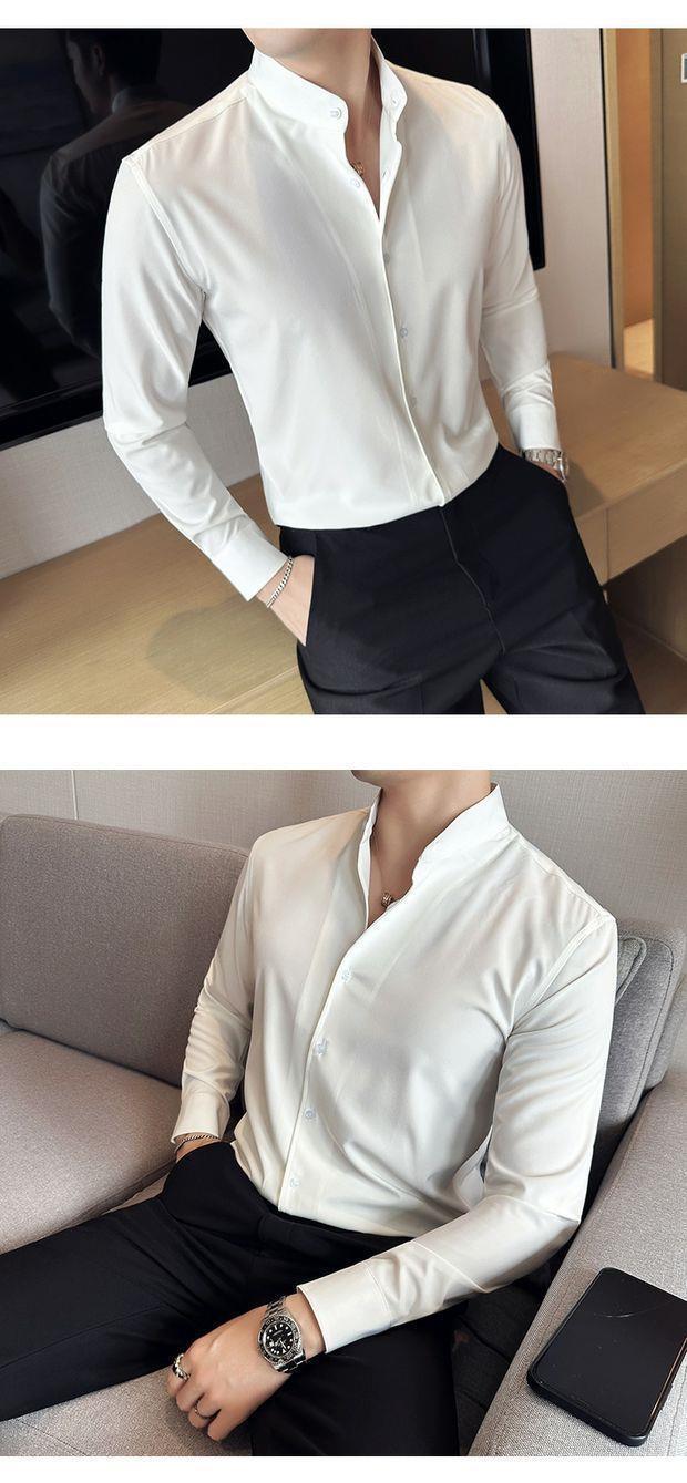 문학 스타일 칼라 셔츠 남성용 하이 엔드 센스 슬림 핏 긴팔 세트 베이스 셔츠 이탈리아 스타일 나폴리 트렌디 셔츠스토어 가기