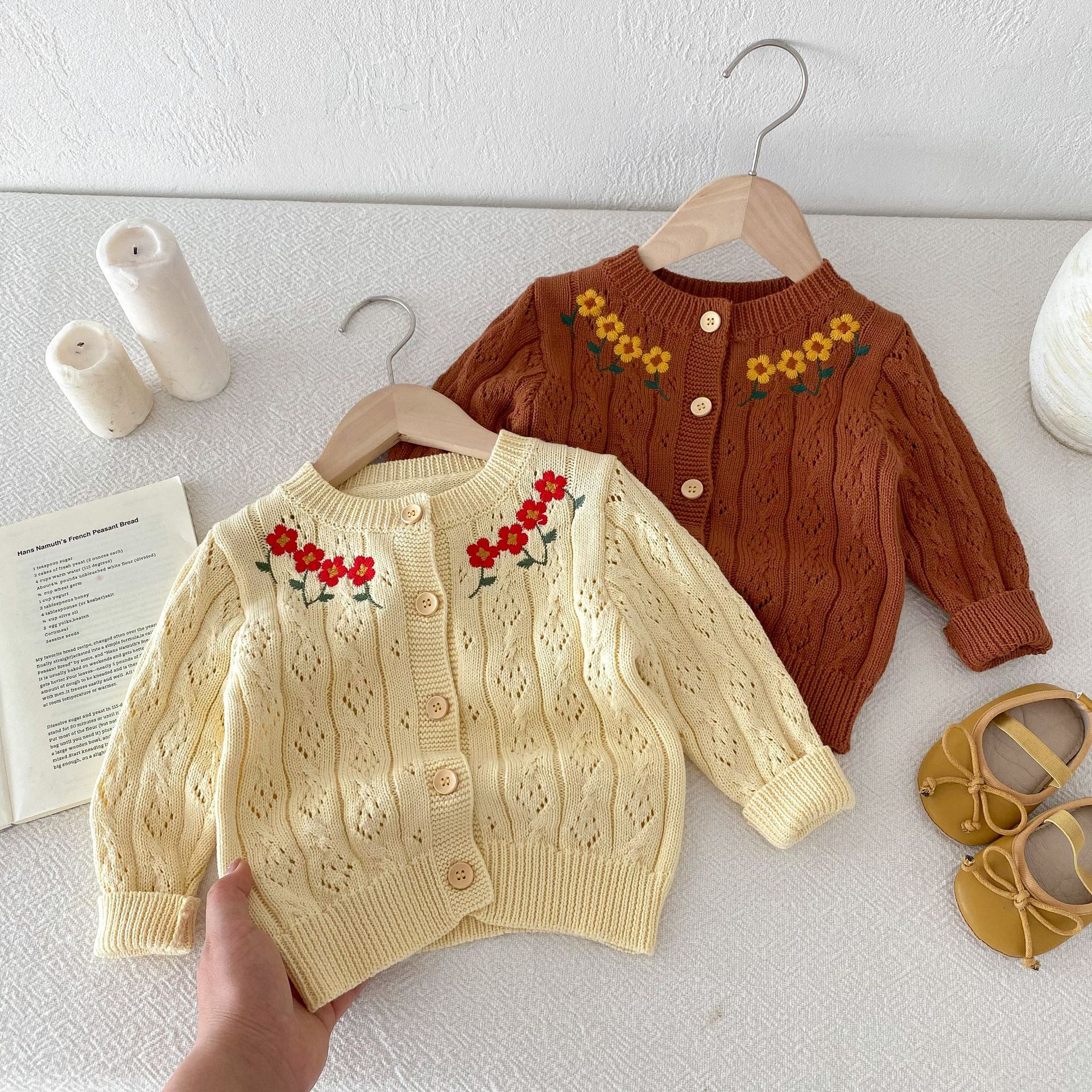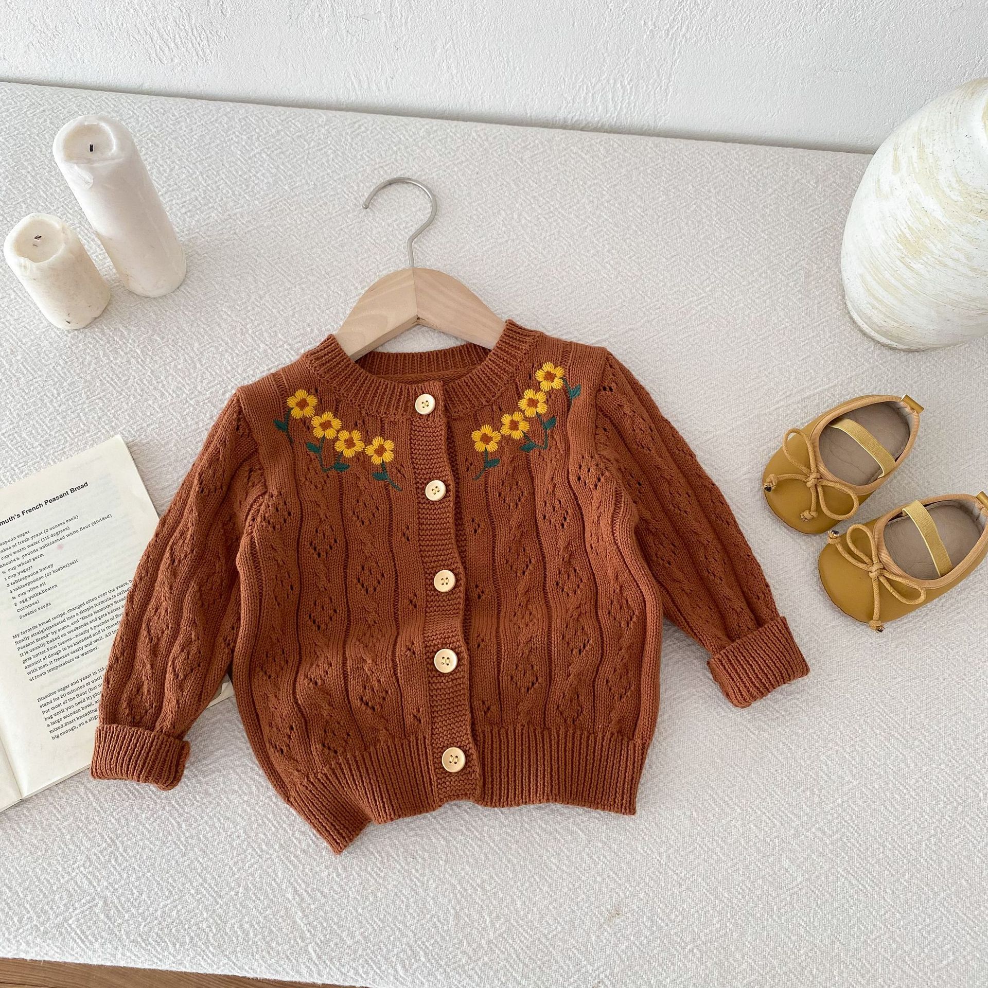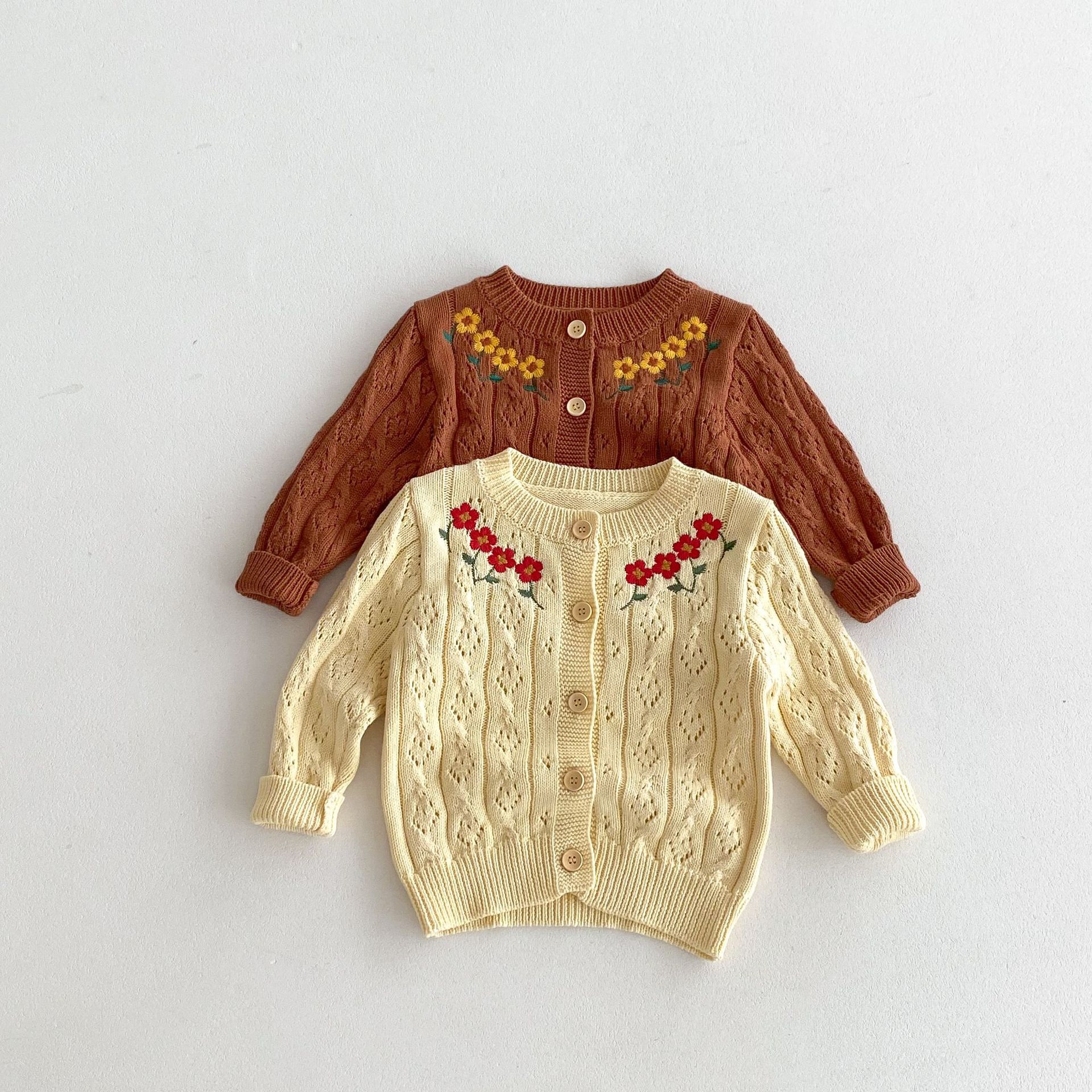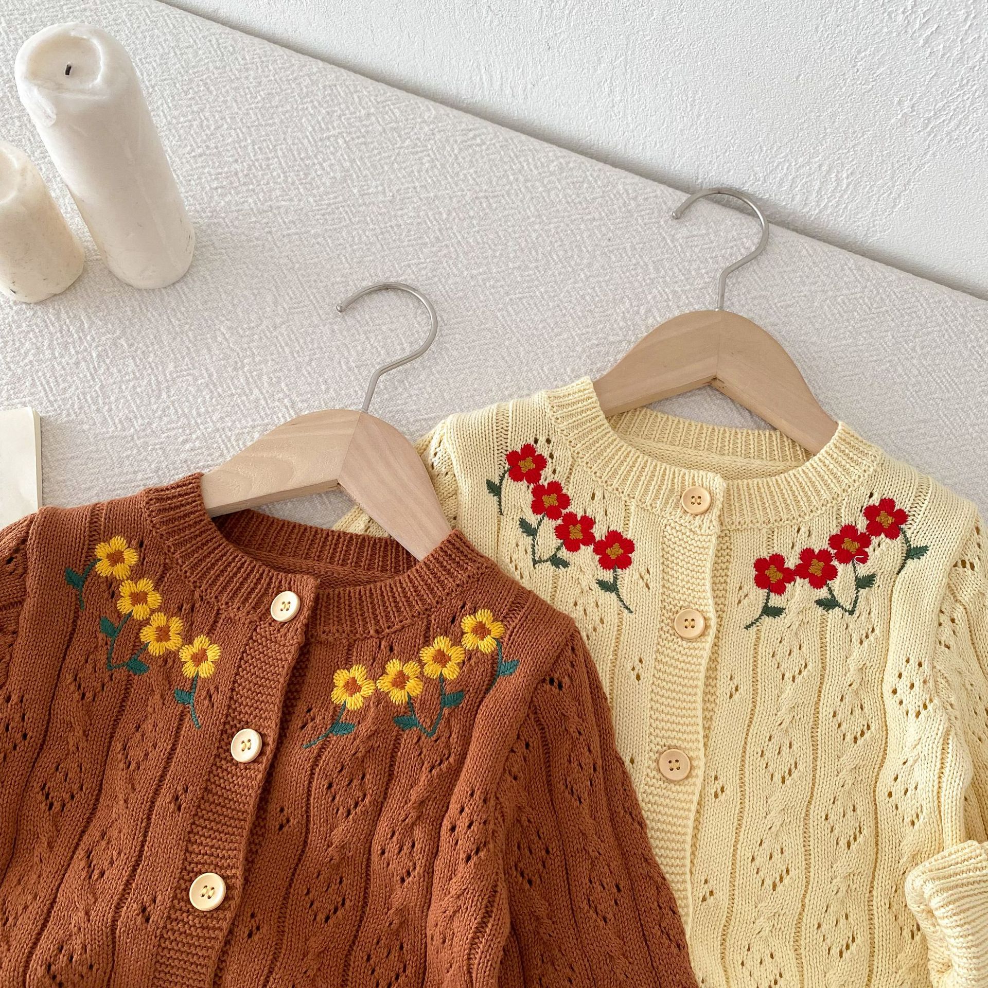 여자 가을 2024 새로운 한국 스웨터 손 자수 꽃 아기 유치원 니트 카디건 재킷스토어 가기