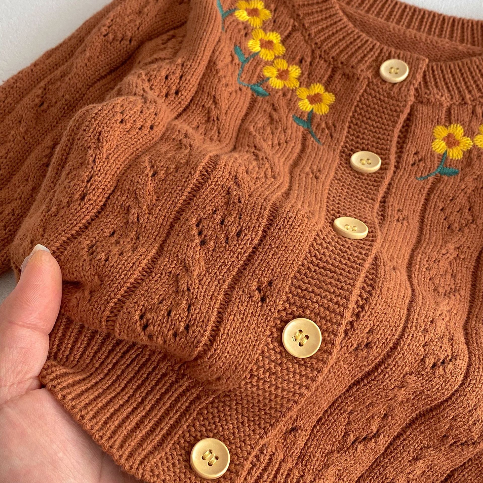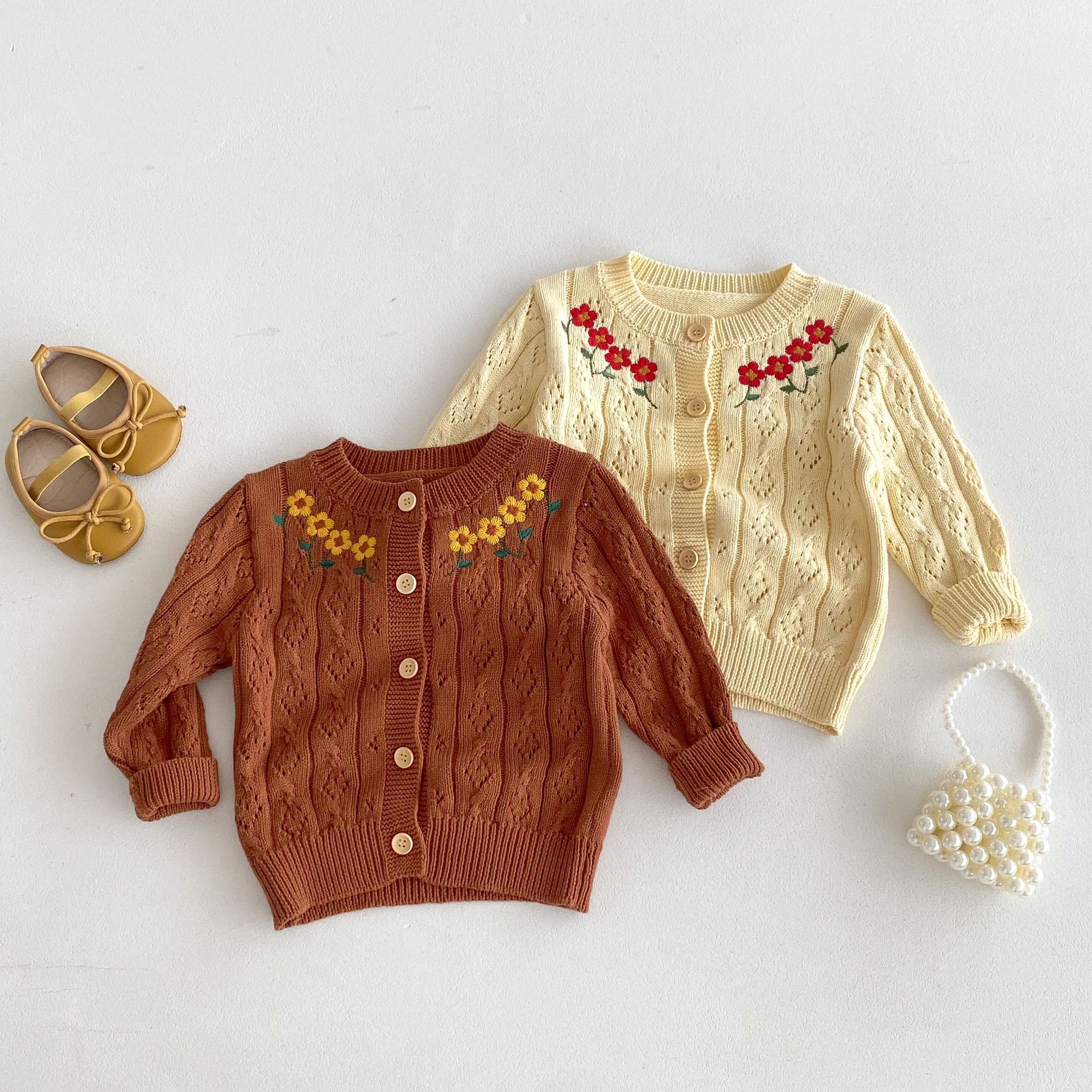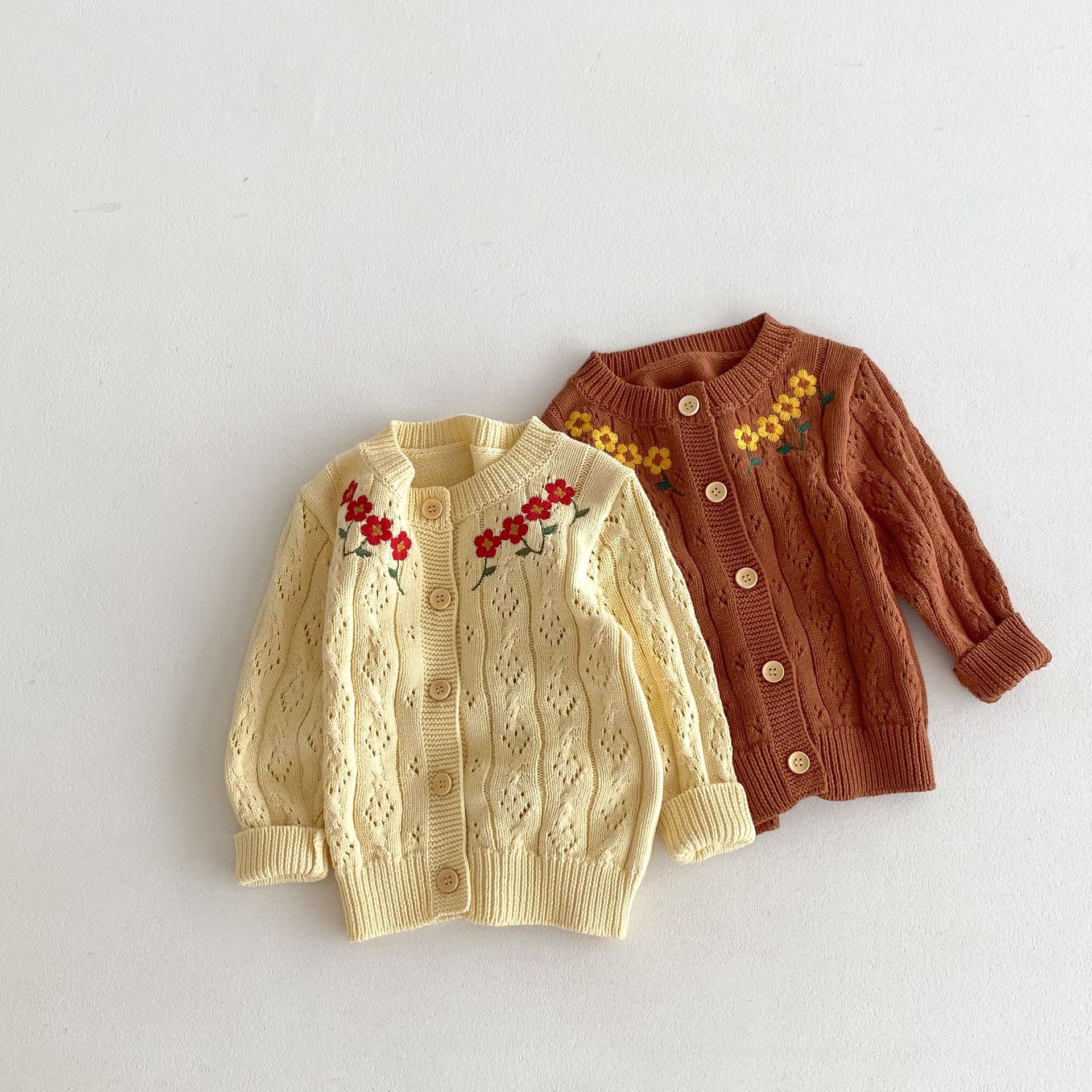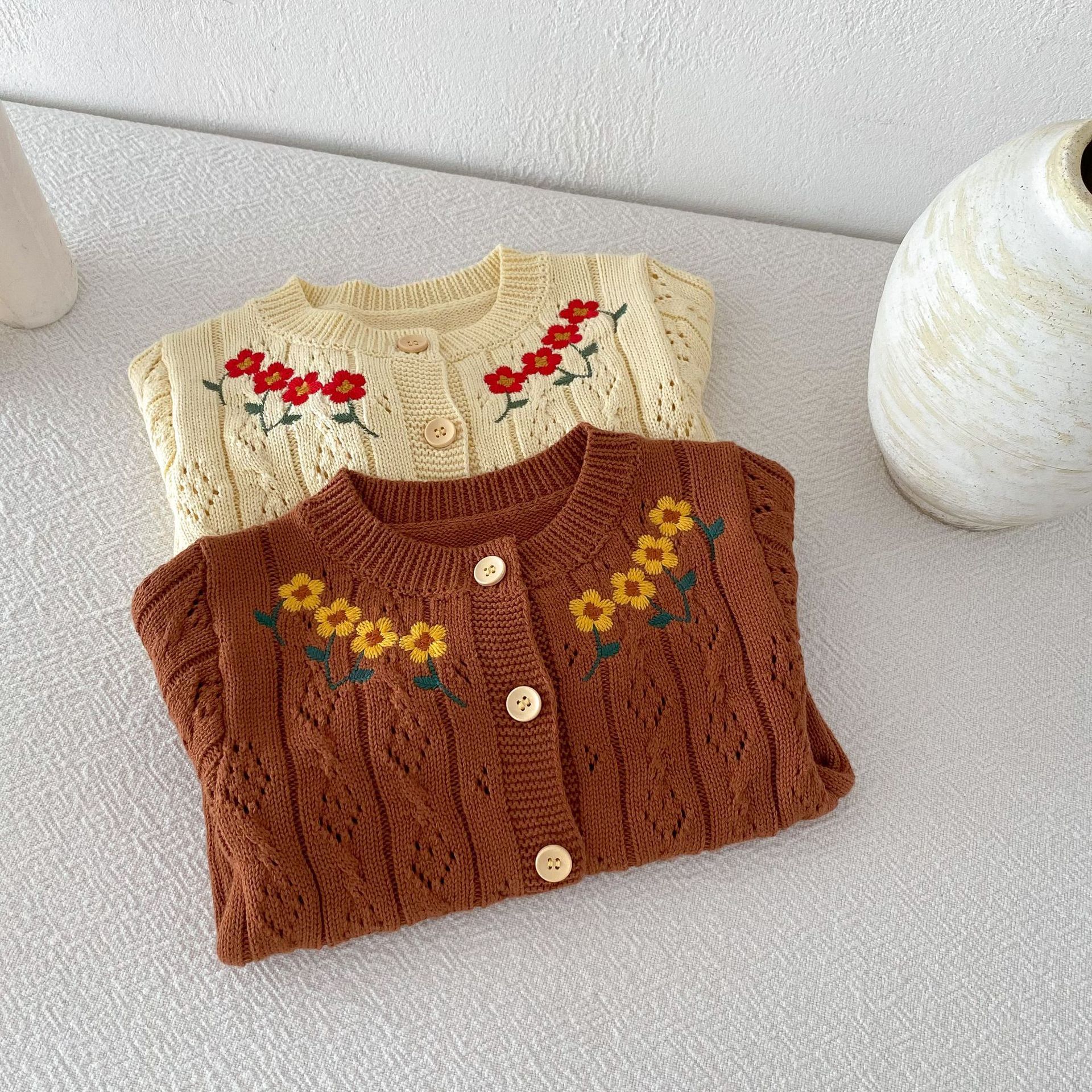 여자 가을 2024 새로운 한국 스웨터 손 자수 꽃 아기 유치원 니트 카디건 재킷스토어 가기