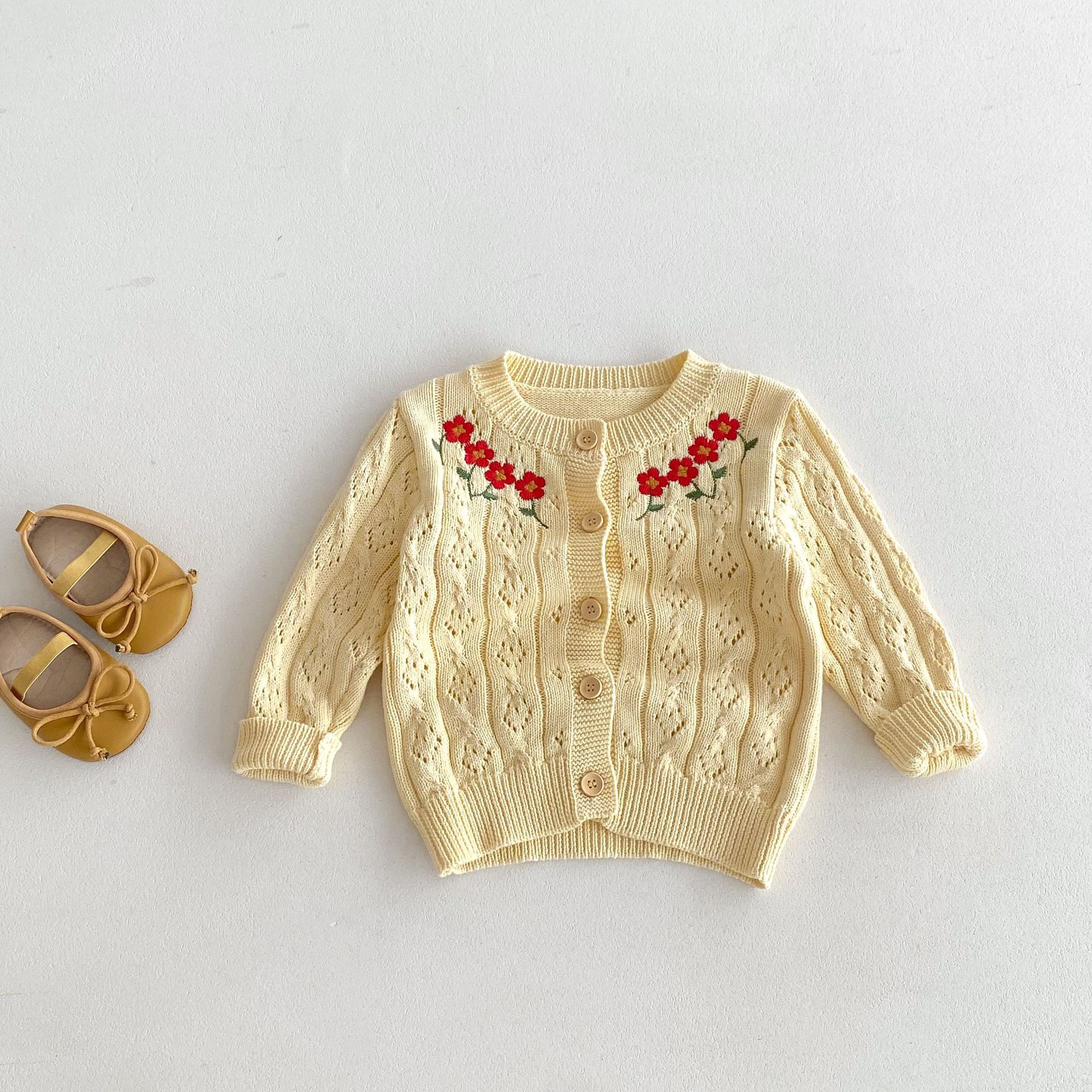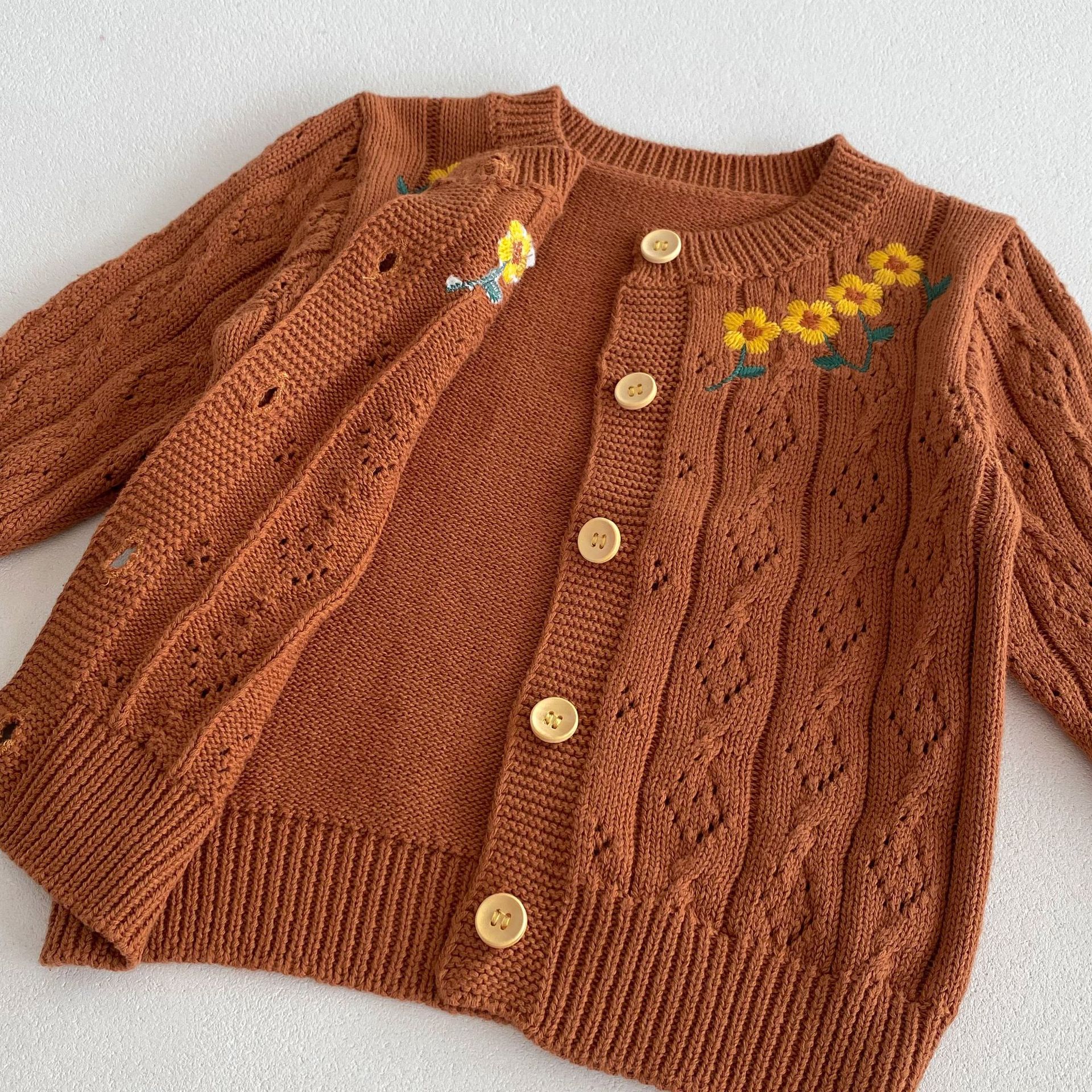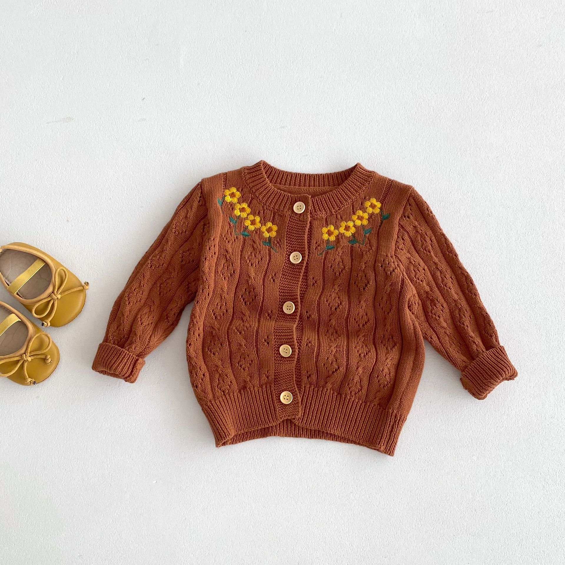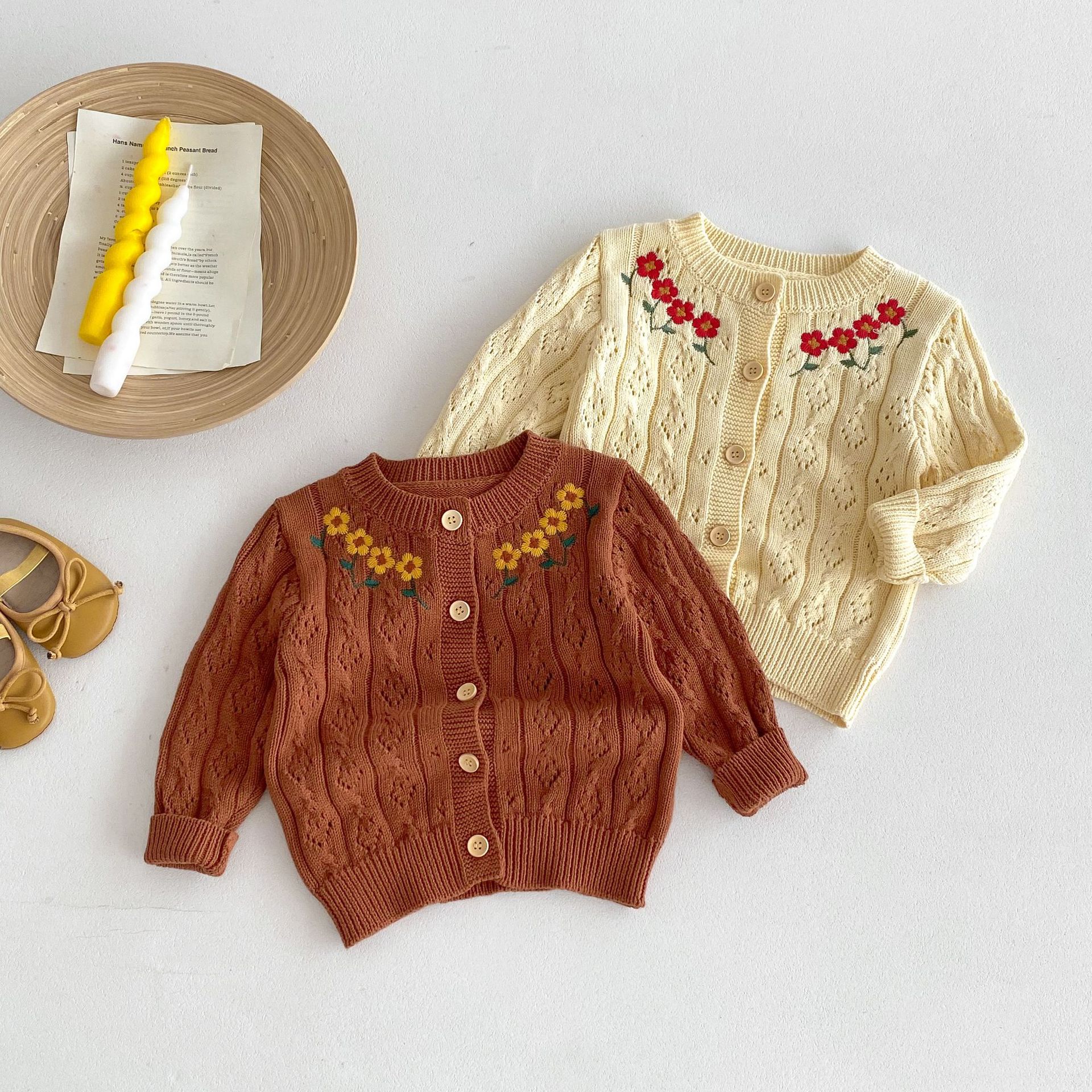 여자 가을 2024 새로운 한국 스웨터 손 자수 꽃 아기 유치원 니트 카디건 재킷스토어 가기