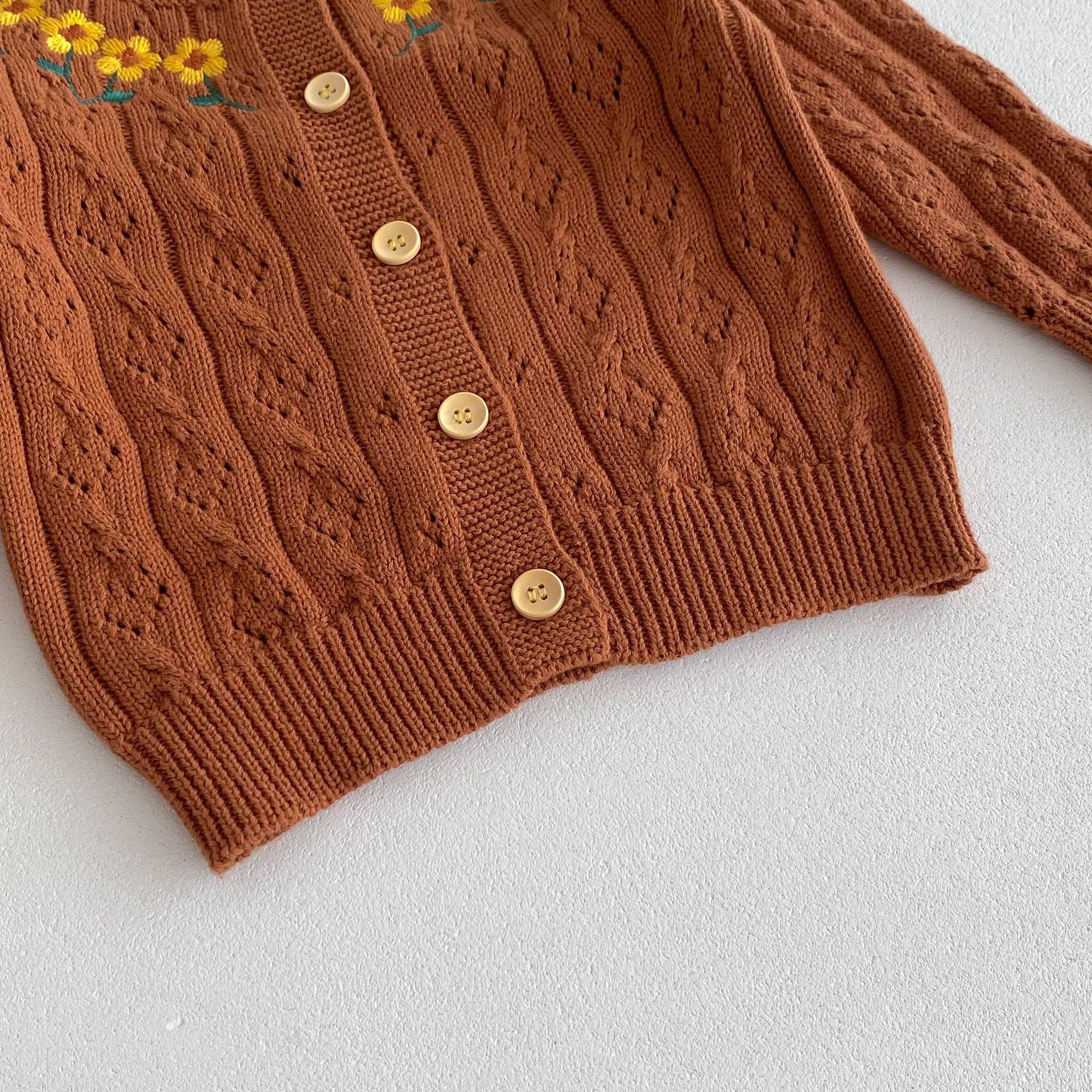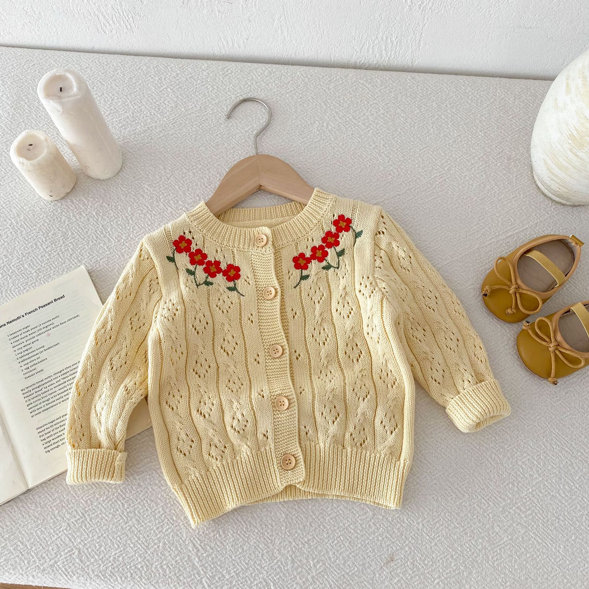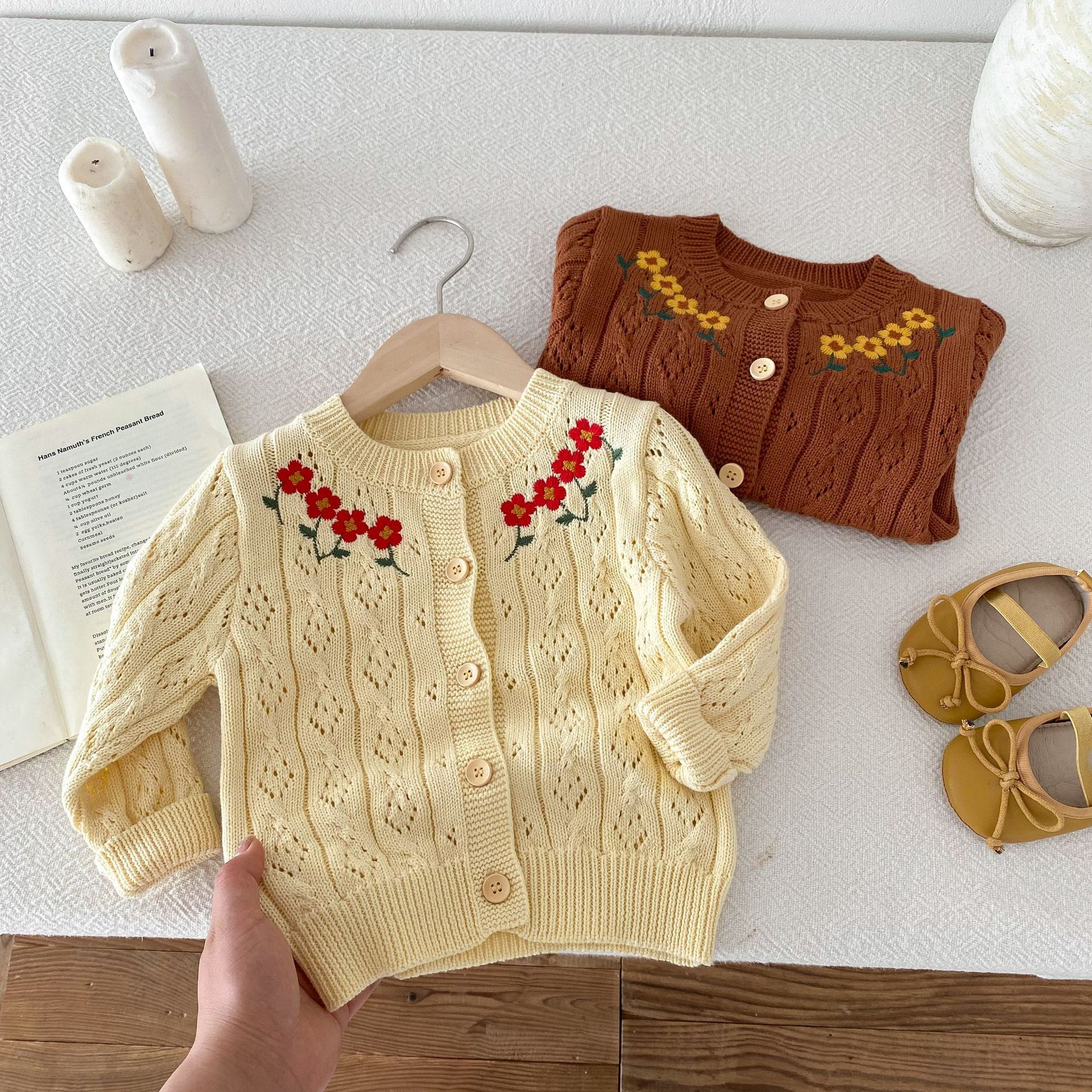 여자 가을 2024 새로운 한국 스웨터 손 자수 꽃 아기 유치원 니트 카디건 재킷