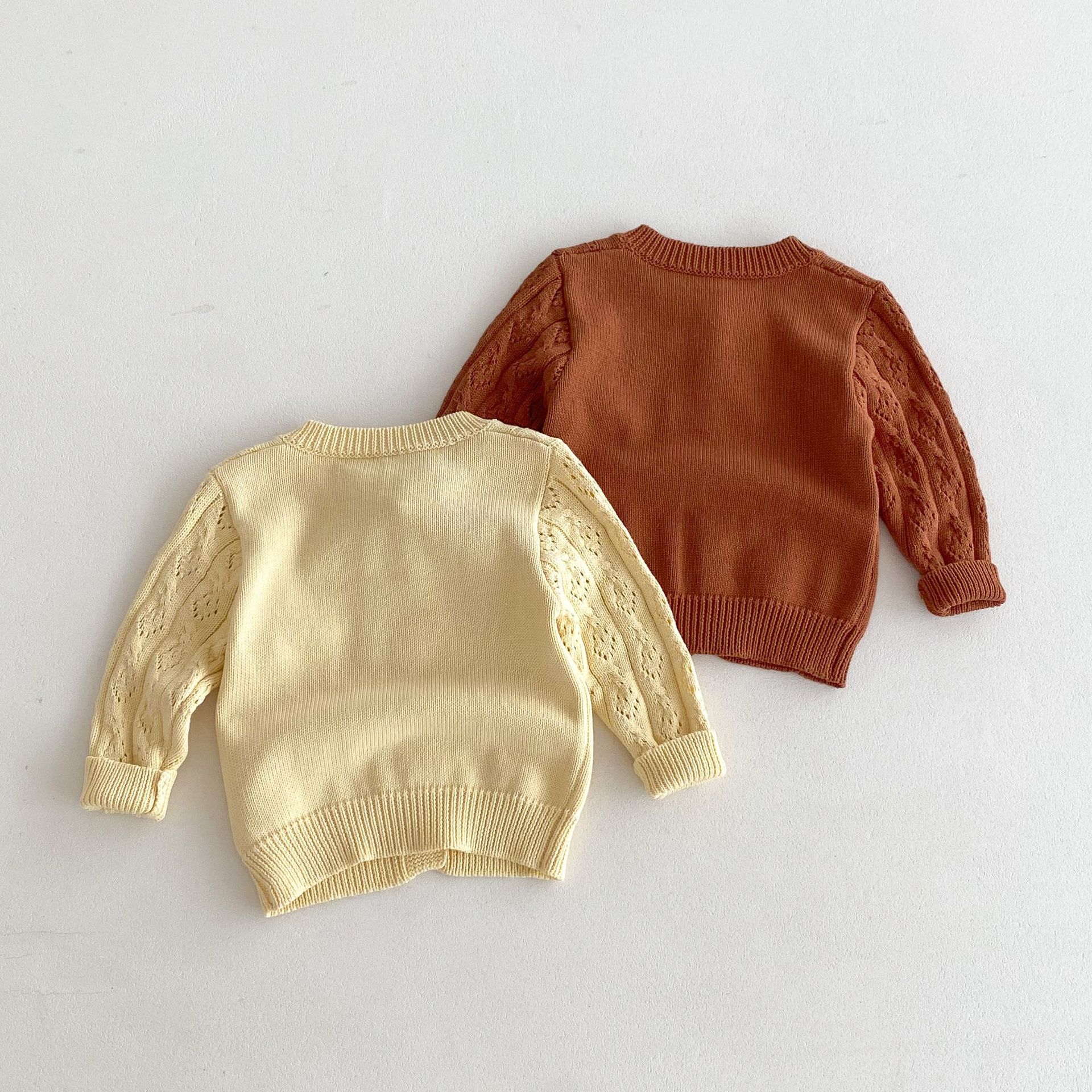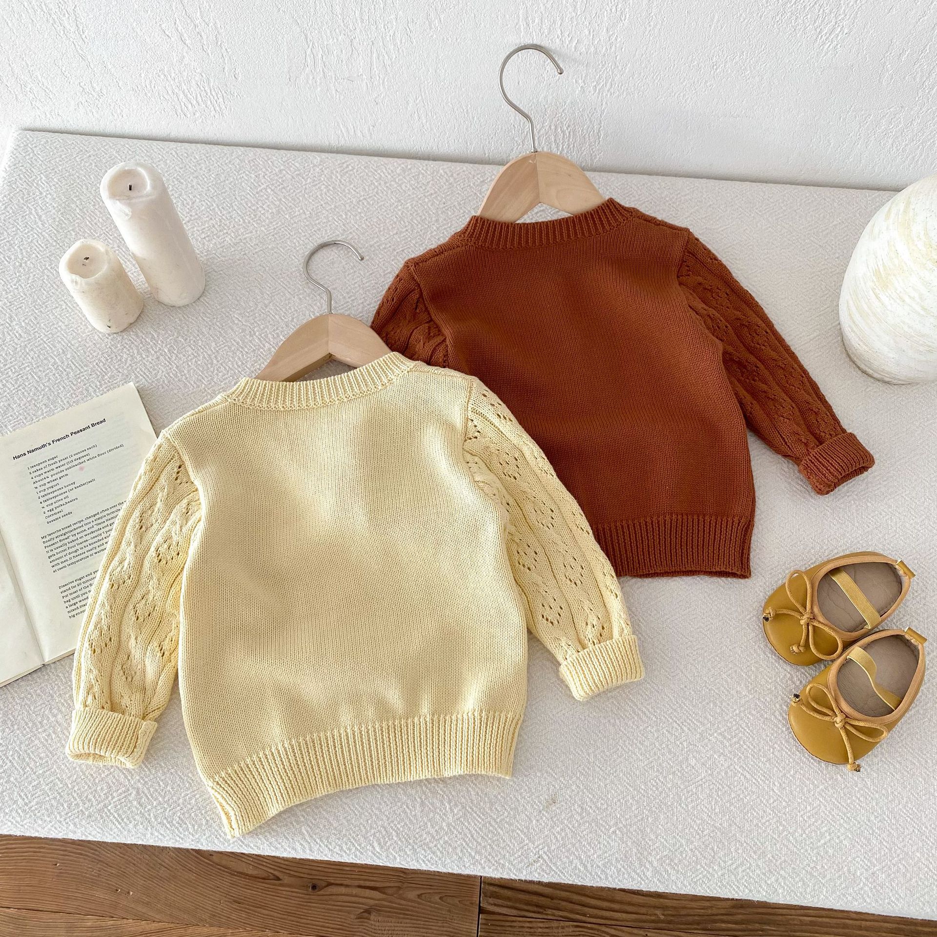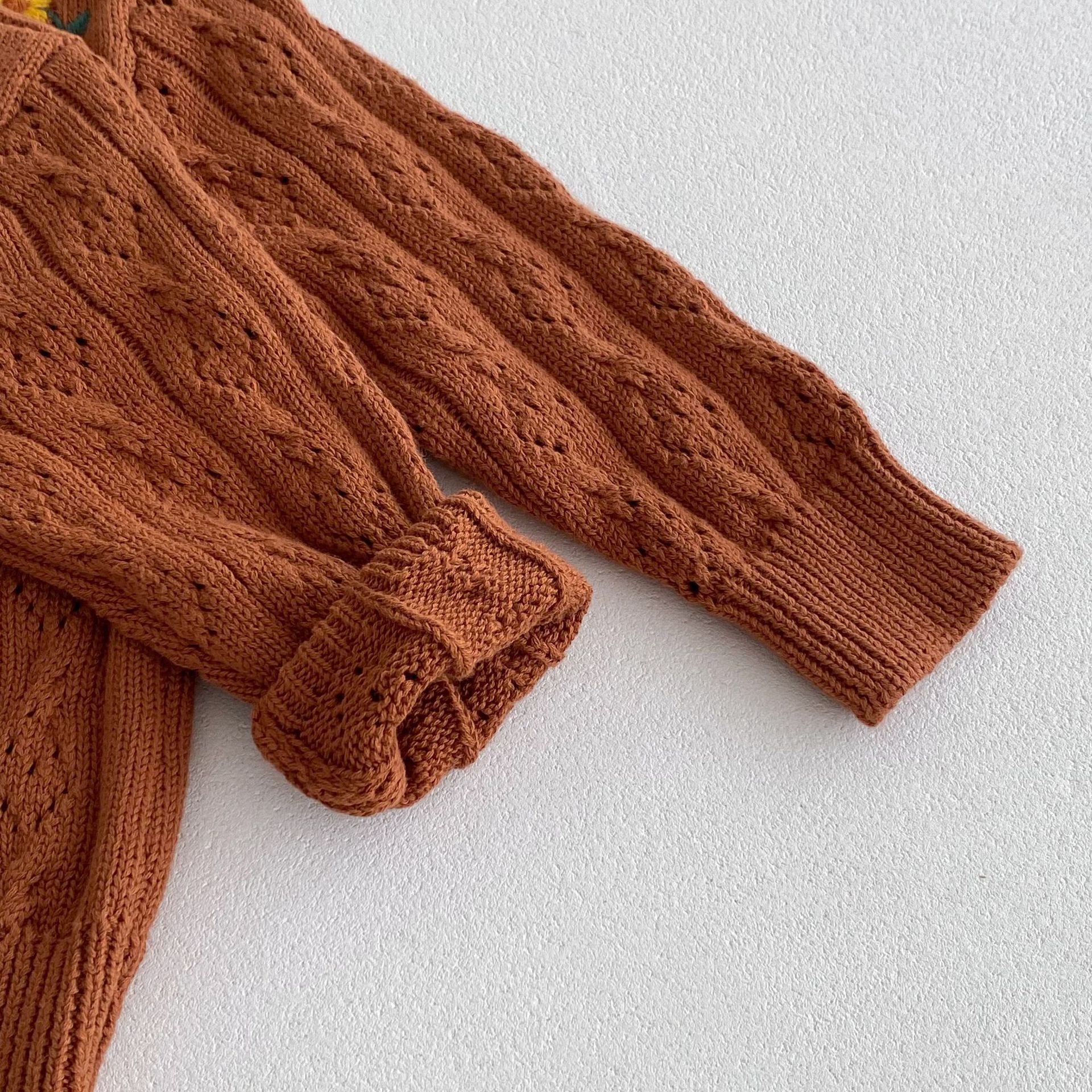 여자 가을 2024 새로운 한국 스웨터 손 자수 꽃 아기 유치원 니트 카디건 재킷