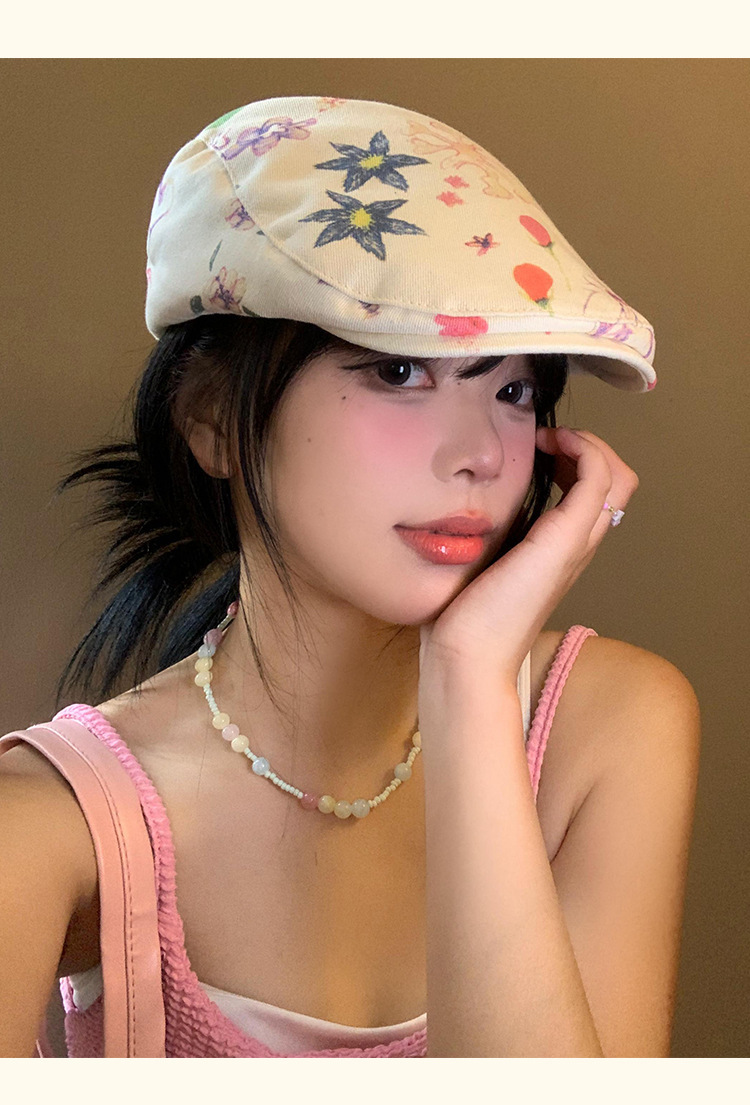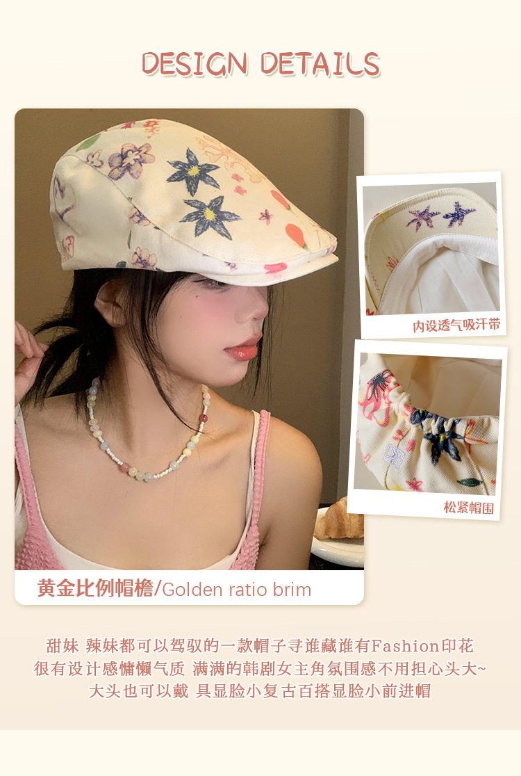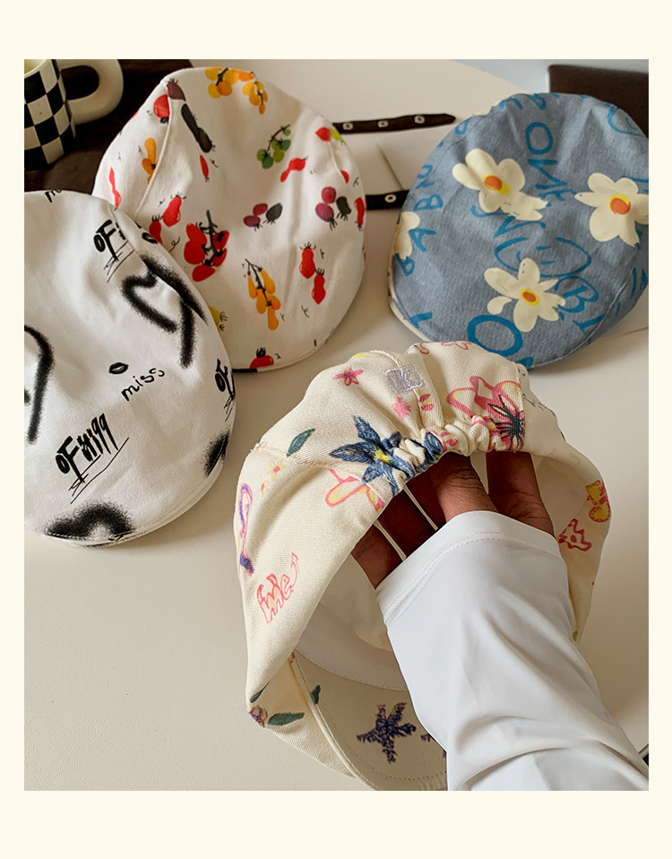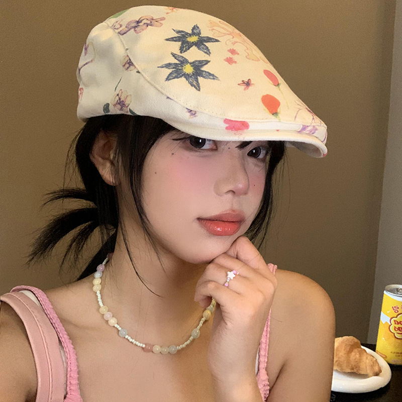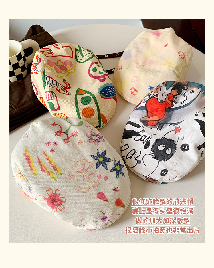 봄과 여름 일본식 낙서 프로그레시브 모자 여성 한국식 올매치 페이스 쇼케이스 작은 베레 얇은 빅 헤드 아티스트 모자스토어 가기