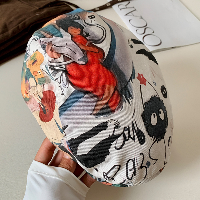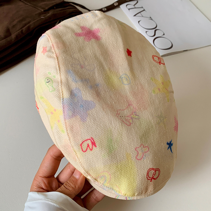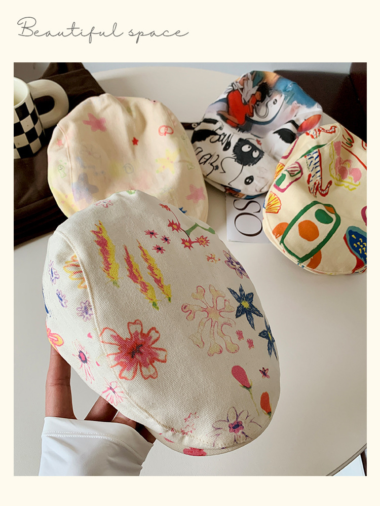 봄과 여름 일본식 낙서 프로그레시브 모자 여성 한국식 올매치 페이스 쇼케이스 작은 베레 얇은 빅 헤드 아티스트 모자