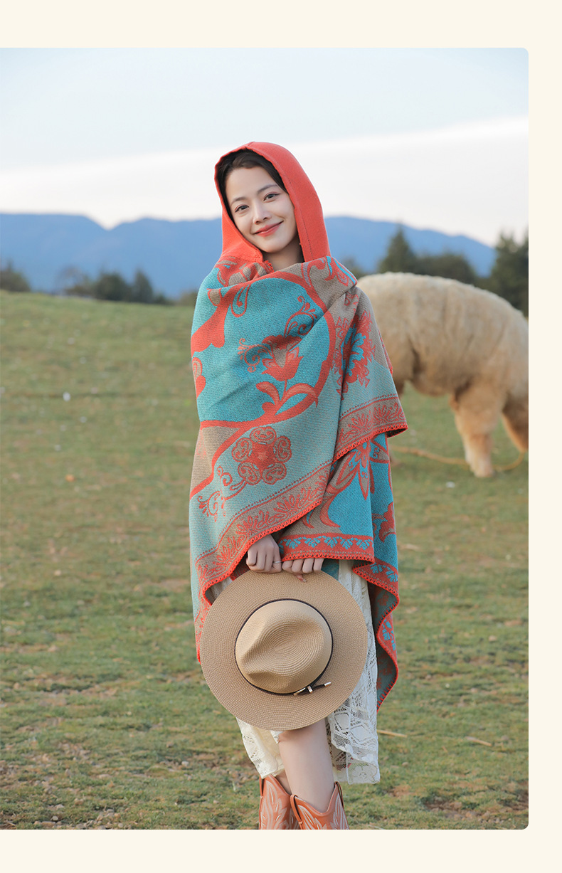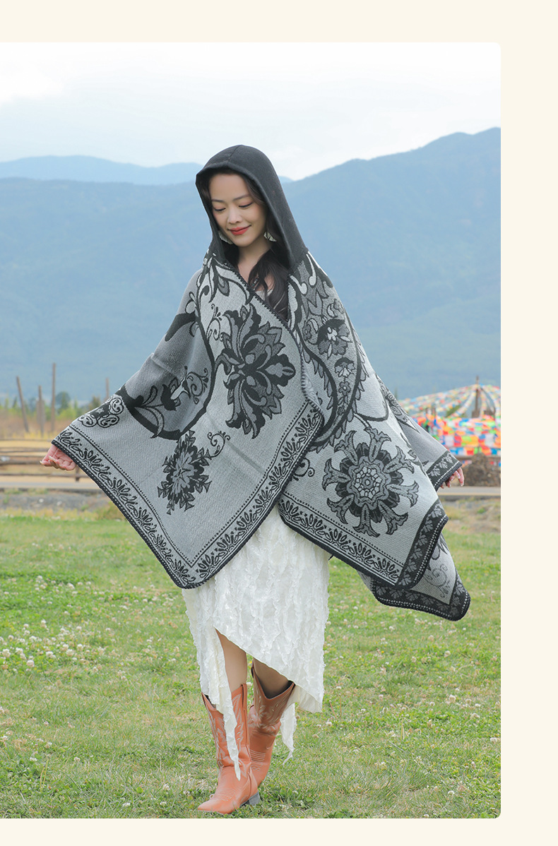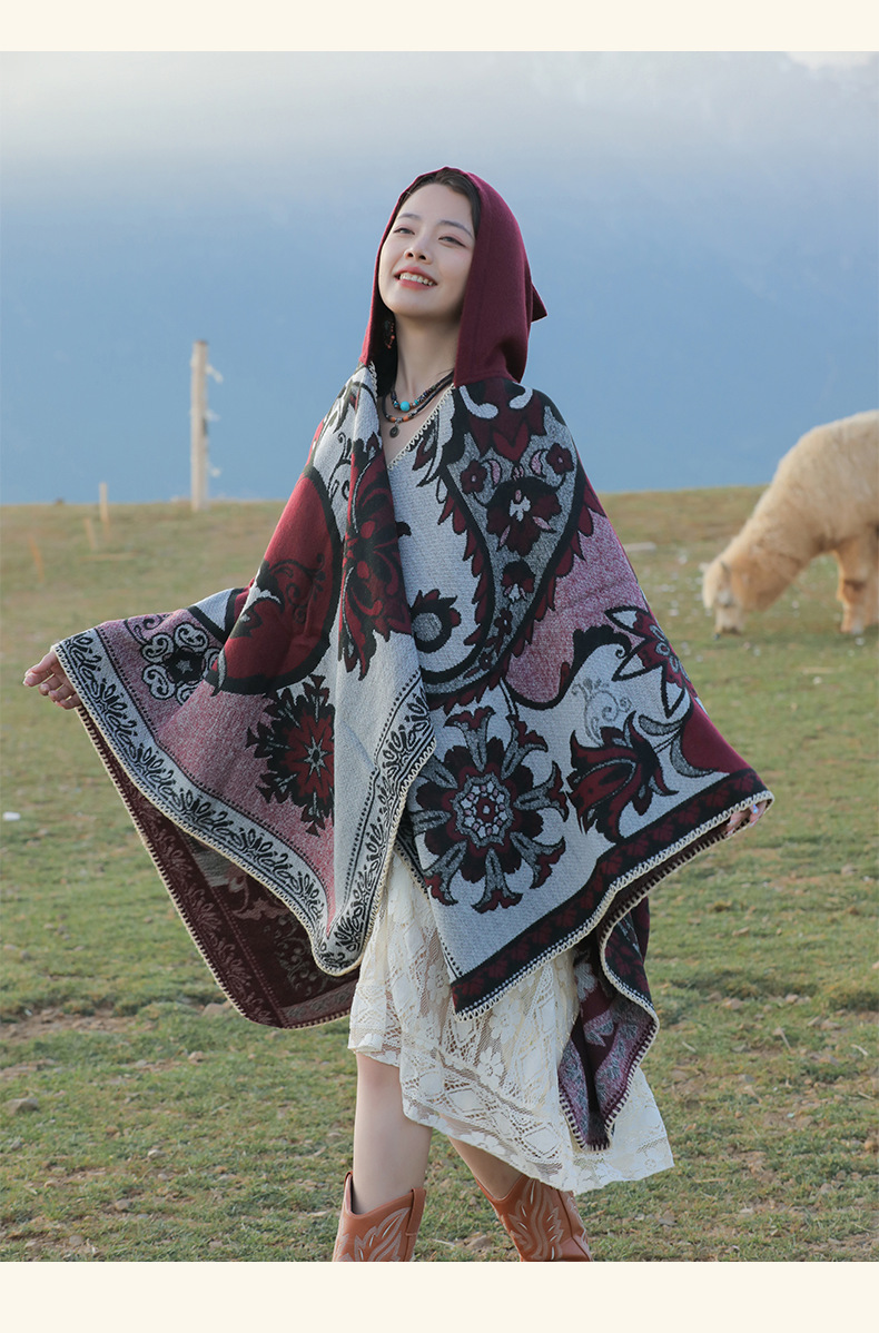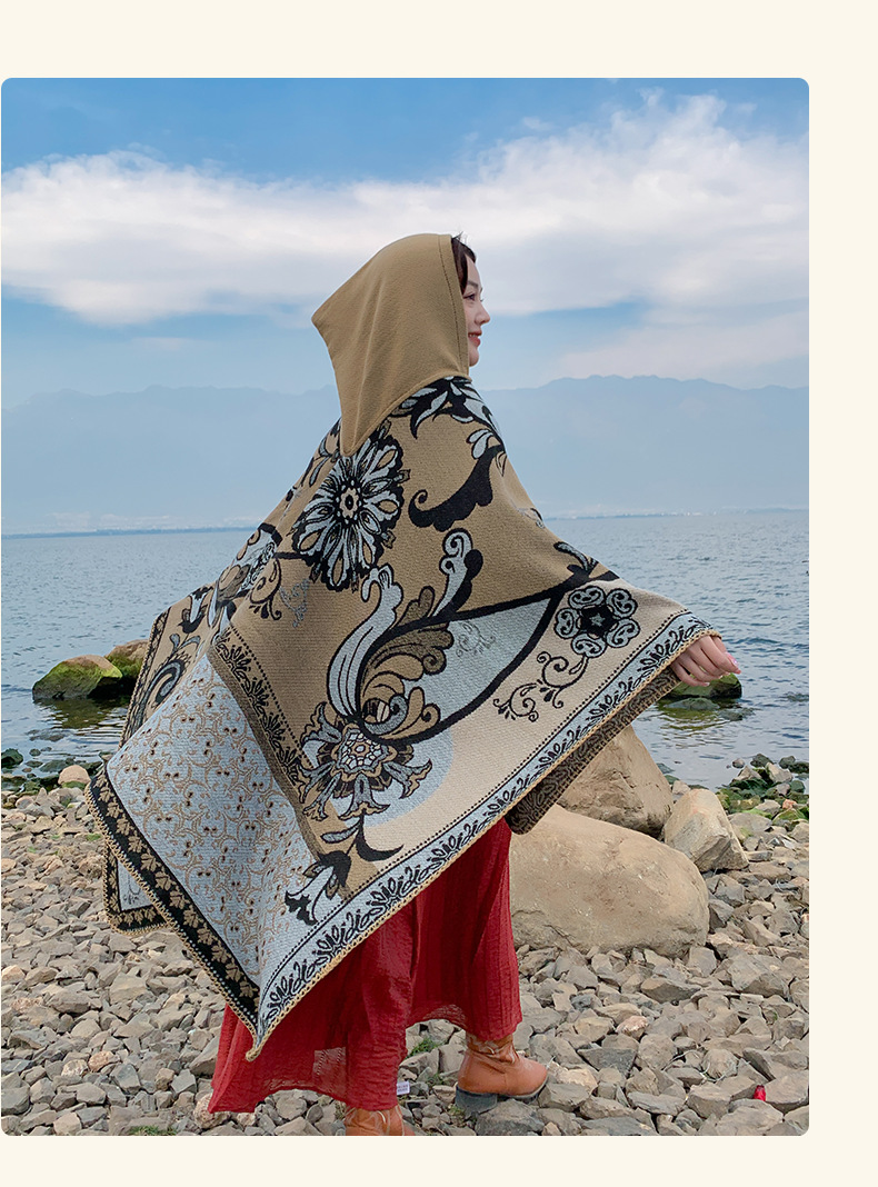 빈티지 후드 내몽골 초원 여행 사진 목도리 여성 민족 스타일 휴가 두꺼운 따뜻한 망토