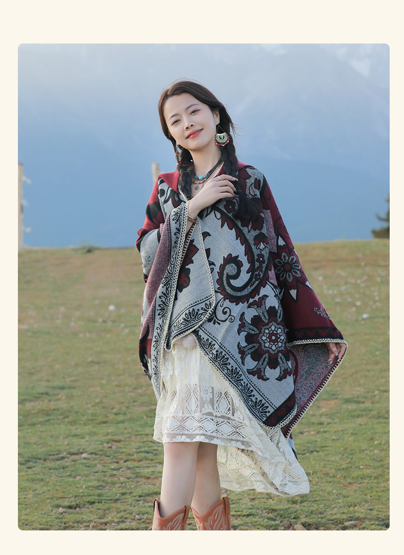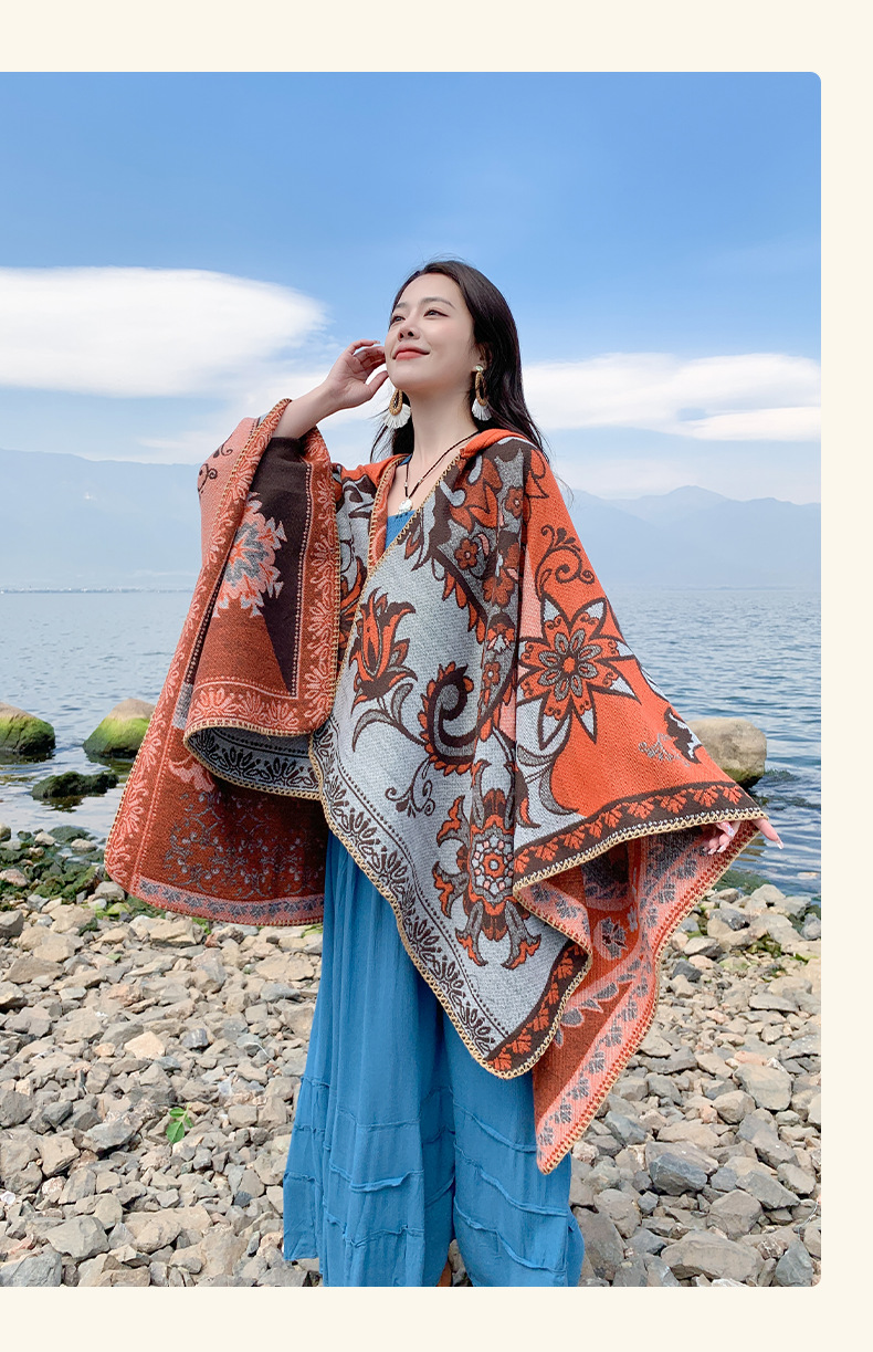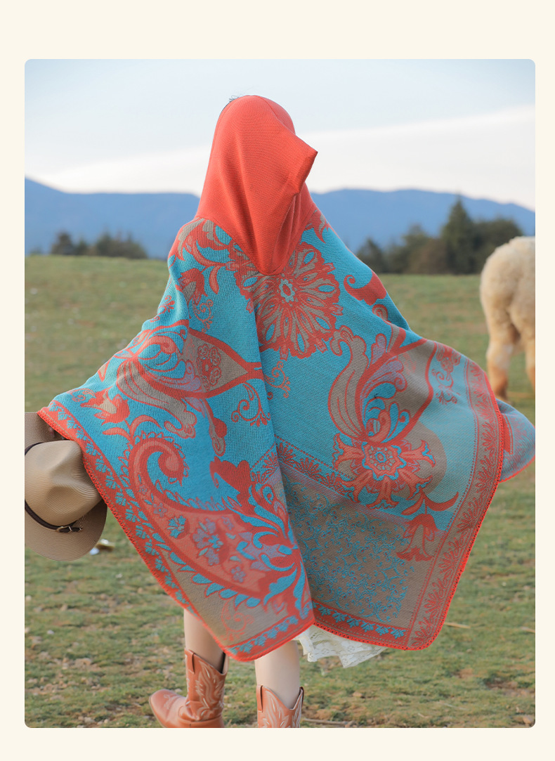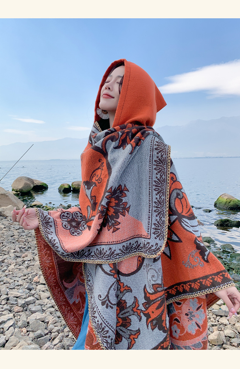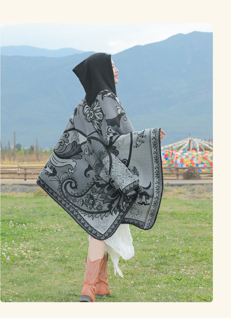 빈티지 후드 내몽골 초원 여행 사진 목도리 여성 민족 스타일 휴가 두꺼운 따뜻한 망토