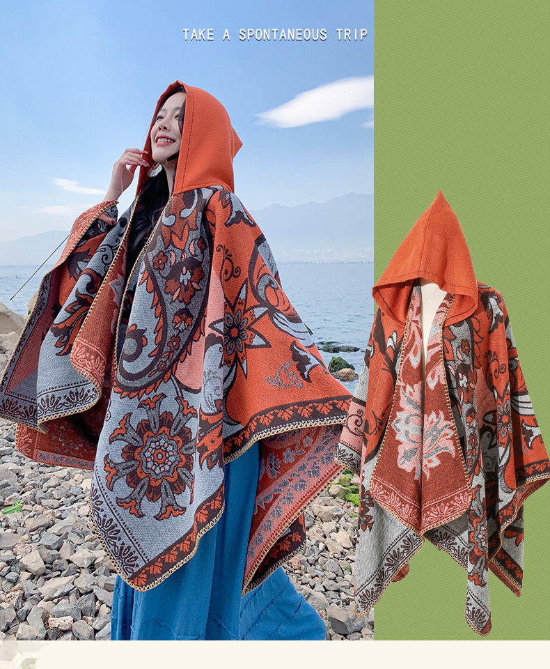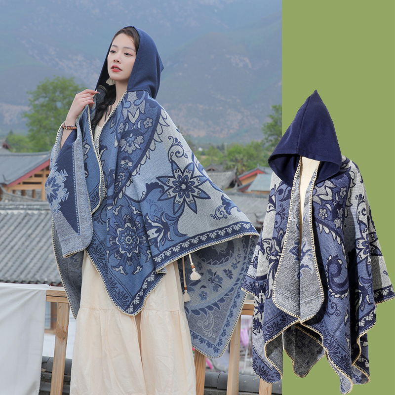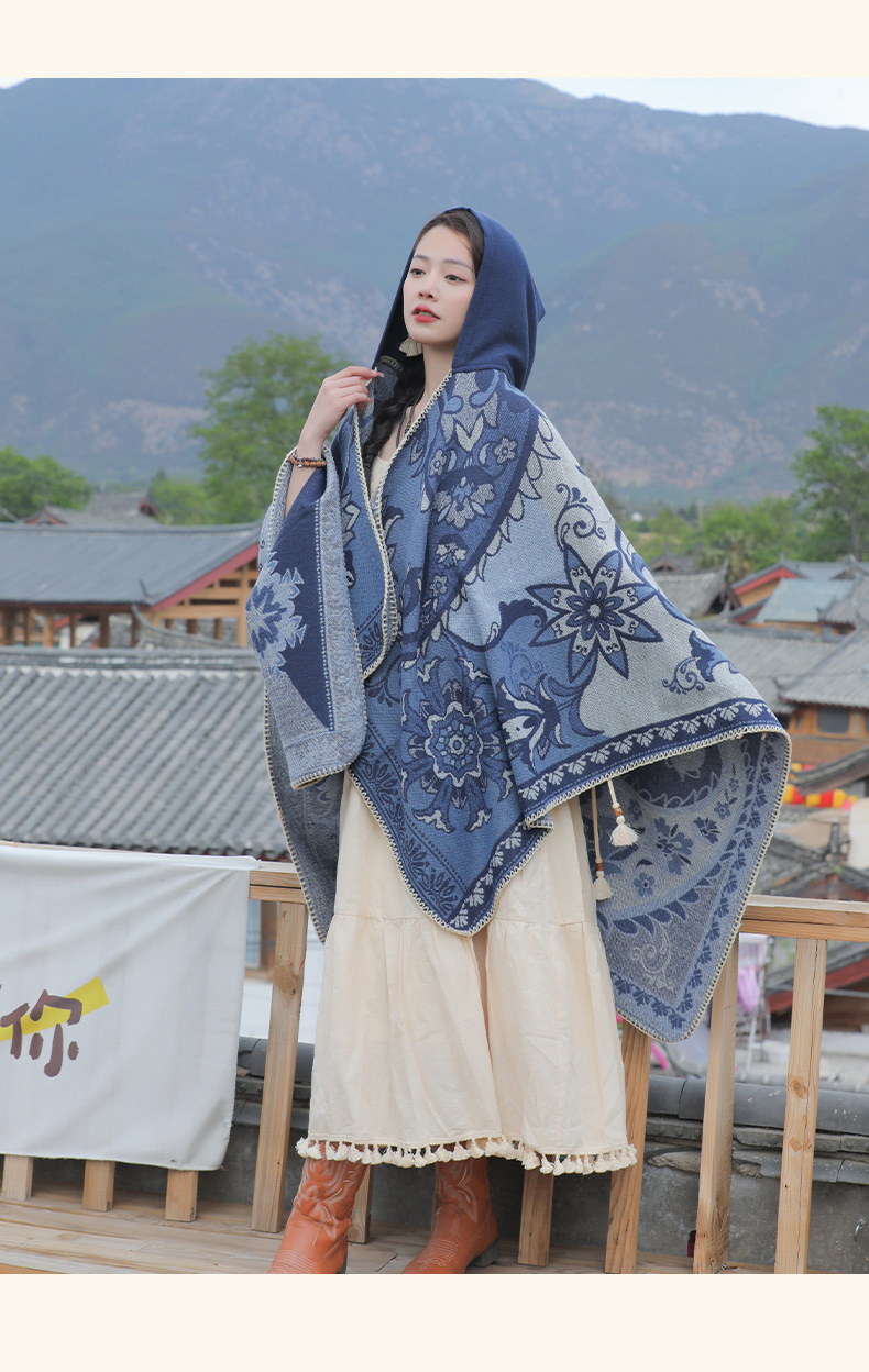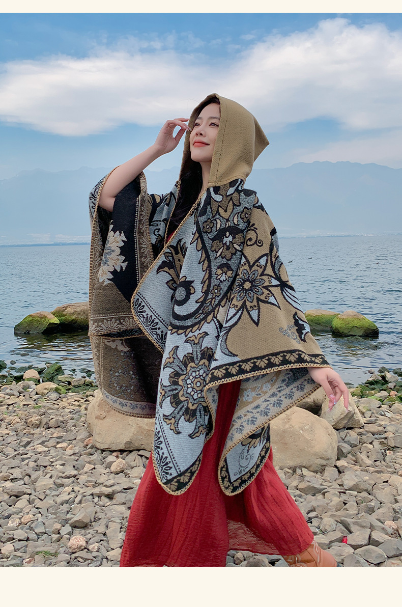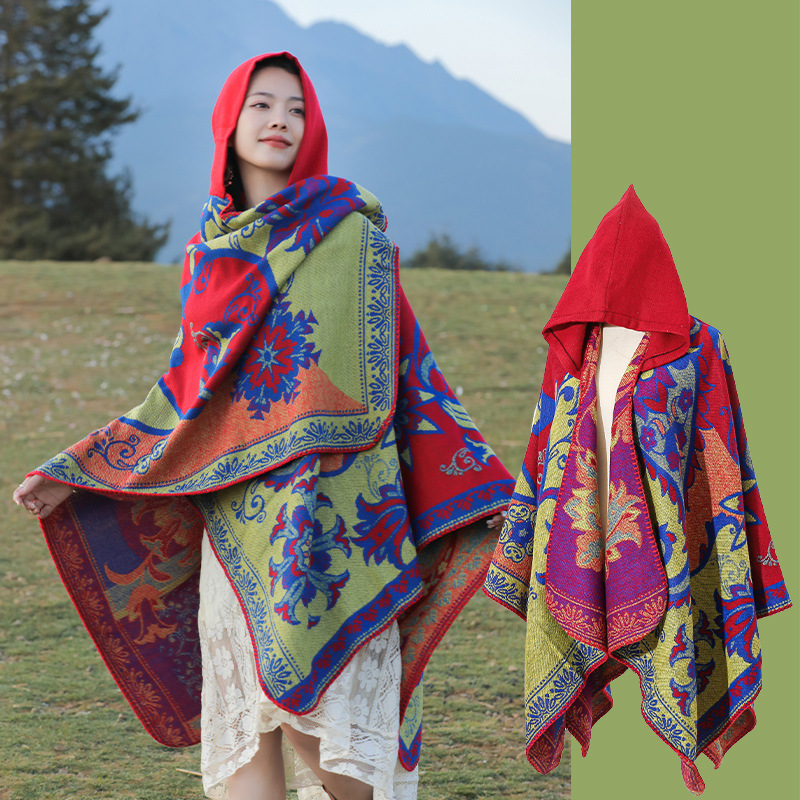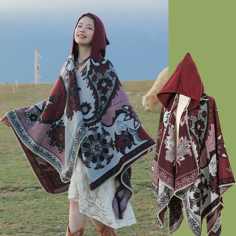 빈티지 후드 내몽골 초원 여행 사진 목도리 여성 민족 스타일 휴가 두꺼운 따뜻한 망토스토어 가기