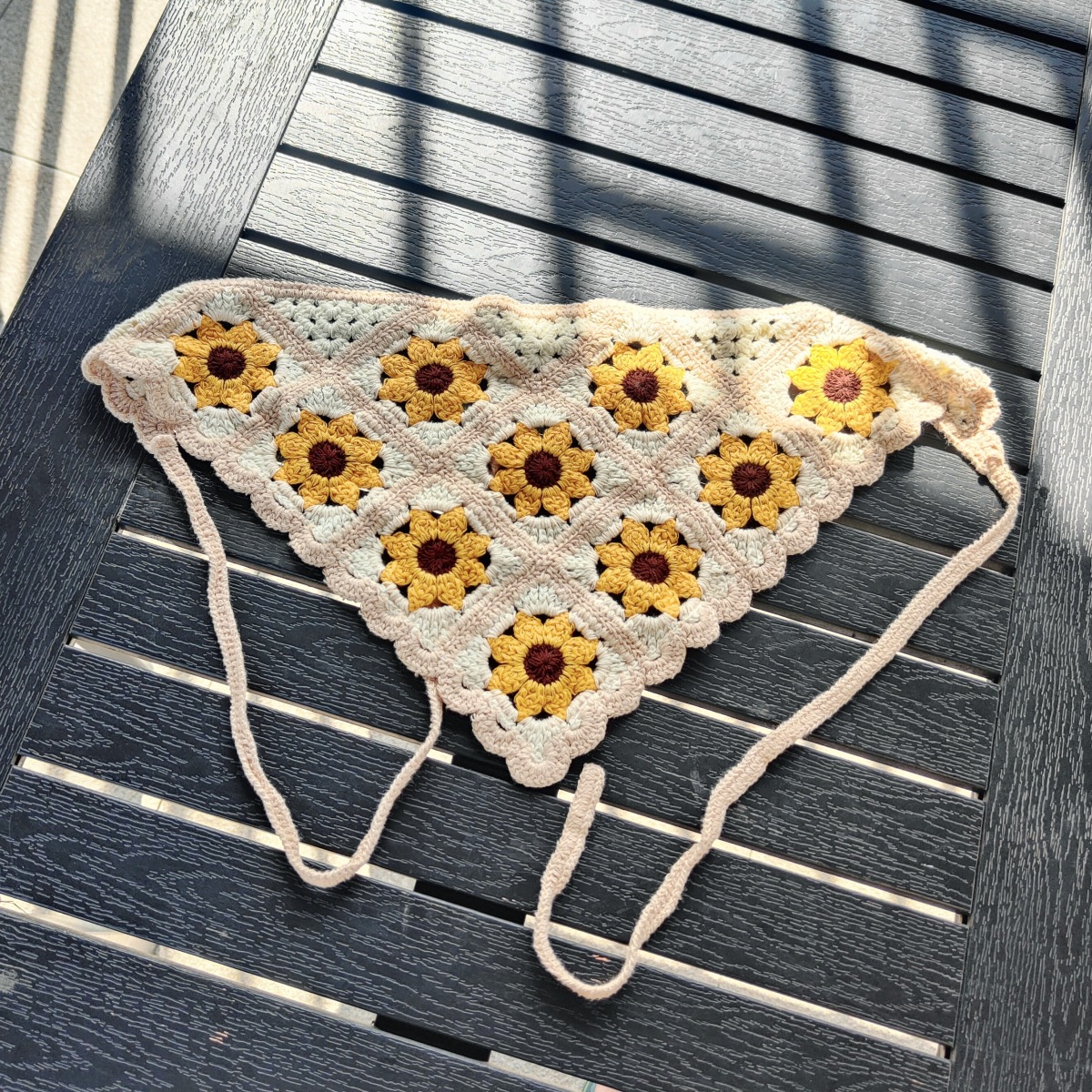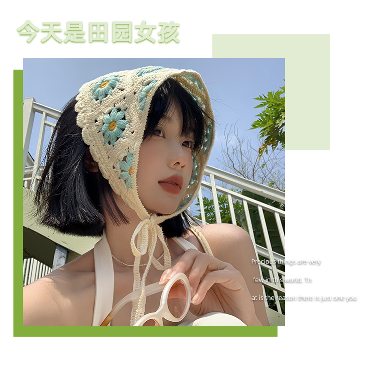 여름 블루 데이지 삼각형 스카프 조수 머리 스카프 머리 벨트 모리 목가적 인 스타일 넥타이 헤어 사진 인터넷 축하 여성을위한 같은 스타일 헤드웨어스토어 가기