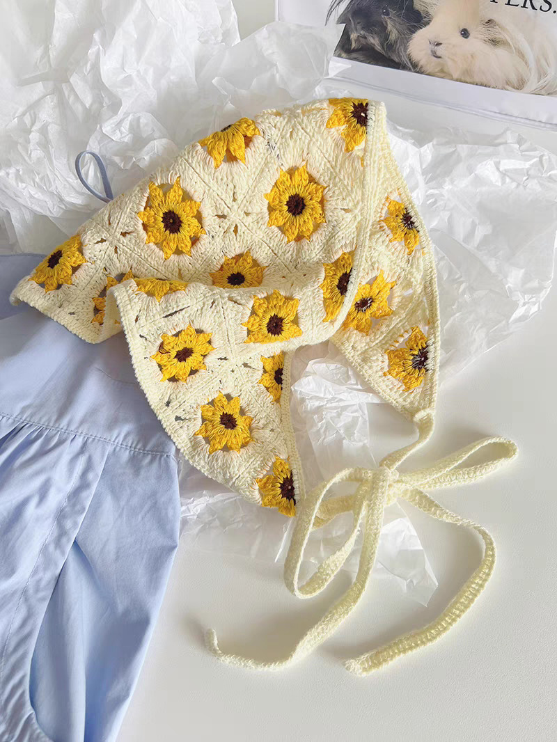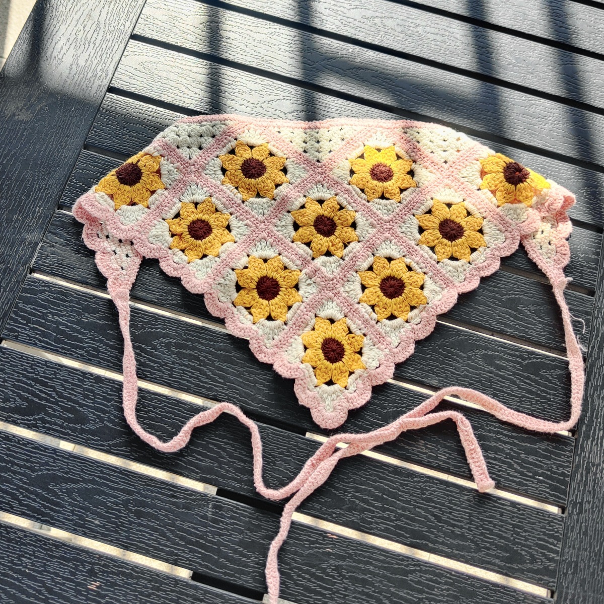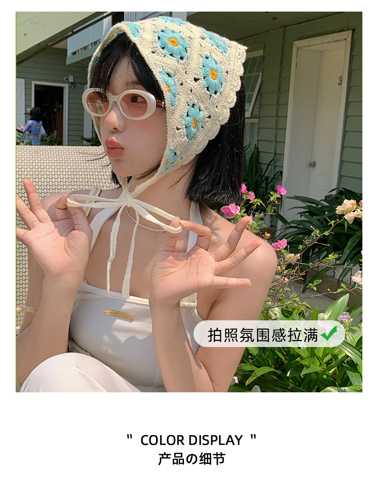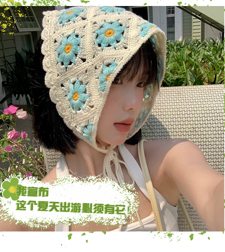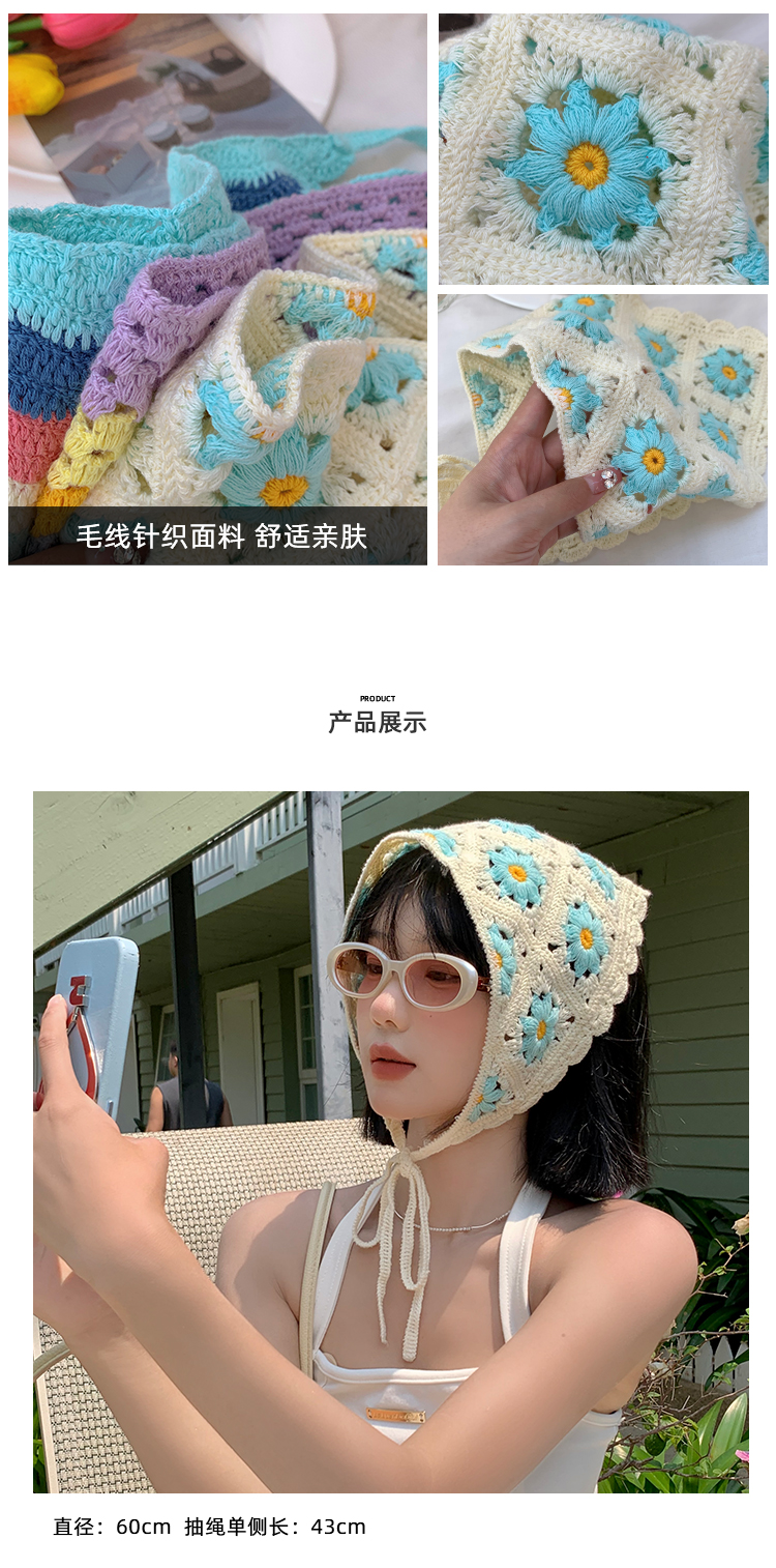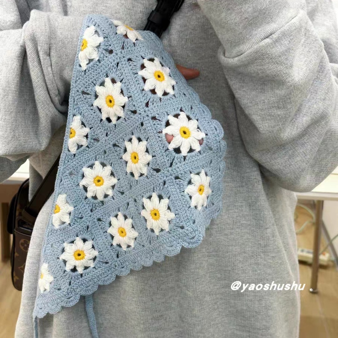 여름 블루 데이지 삼각형 스카프 조수 머리 스카프 머리 벨트 모리 목가적 인 스타일 넥타이 헤어 사진 인터넷 축하 여성을위한 같은 스타일 헤드웨어