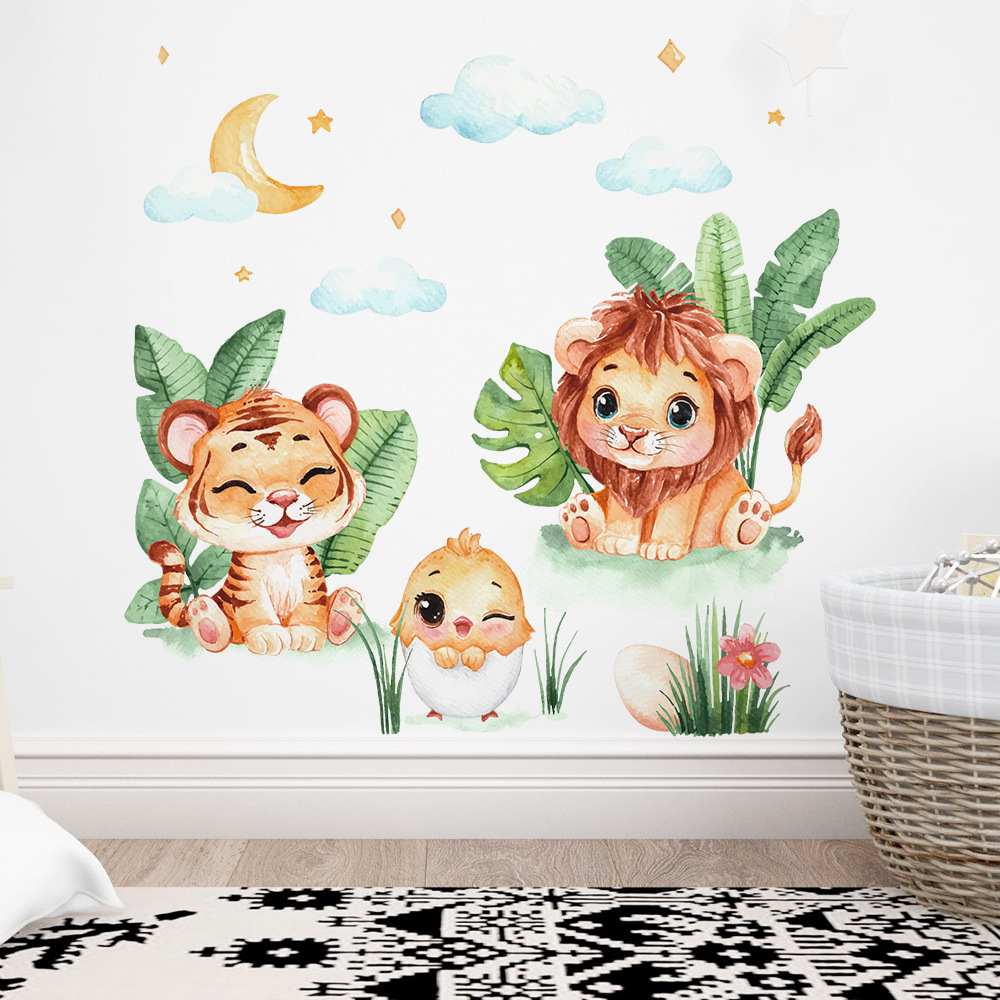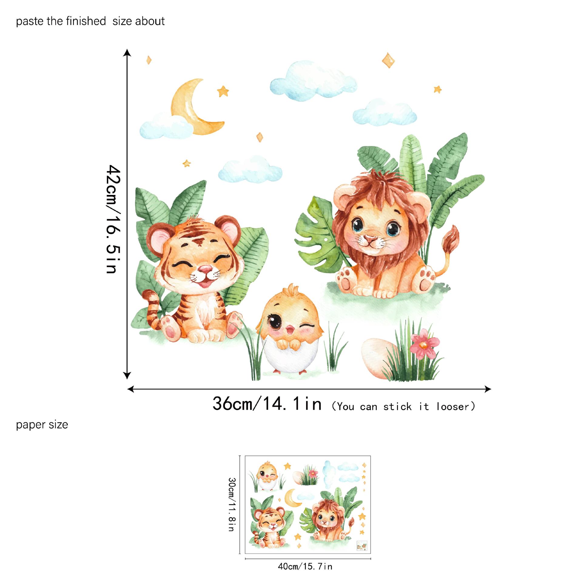 Yiyao DD3458 만화 사자 호랑이 동물 자기 접착 벽 스티커 거실 입구 침실 장식 아름다운 벽지