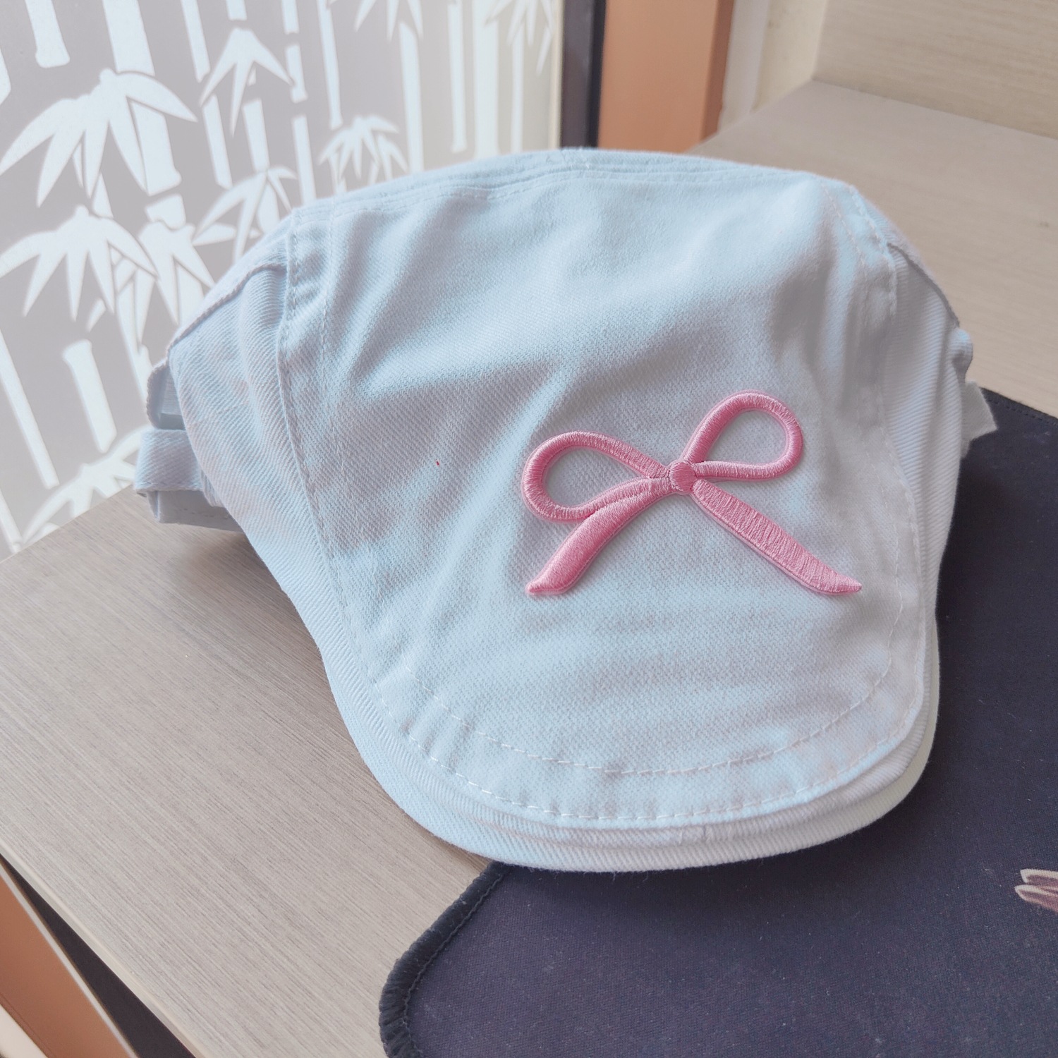 • 흰색 핑크 나비-자수