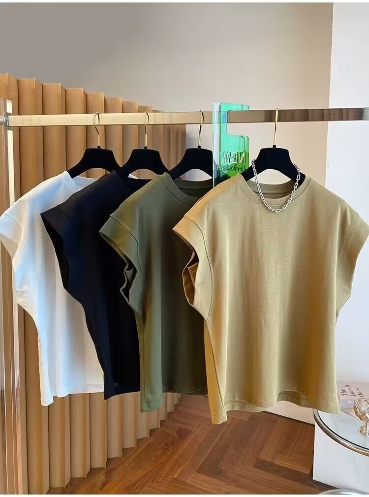 한국 스타일 디자인 센스 니쉬 민소매 티셔츠 반팔 남성 느슨한 소매 티셔츠 어깨 어깨 셔츠 여름 패션 셔츠스토어 가기