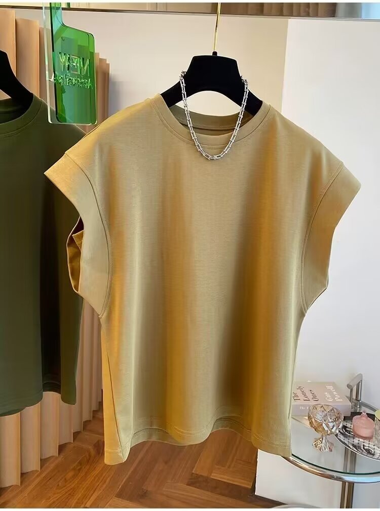 한국 스타일 디자인 센스 니쉬 민소매 티셔츠 반팔 남성 느슨한 소매 티셔츠 어깨 어깨 셔츠 여름 패션 셔츠