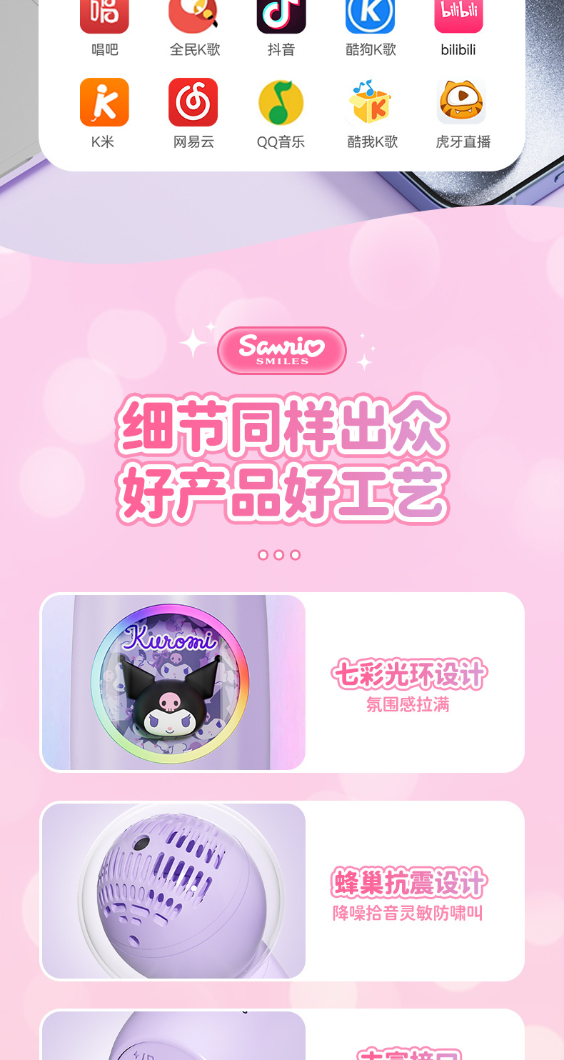산리오 ML03 무선 블루투스 마이크 마이크 오디오 통합 노래방 가족 부모 자식 멀티미디어 노래