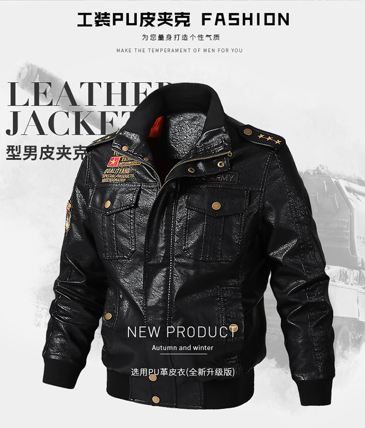 20222022 봄과 가을 느슨한 플러스 사이즈 멀티 포켓 남성용 가죽 캐주얼 세탁기 오토바이 pu 가죽 자켓